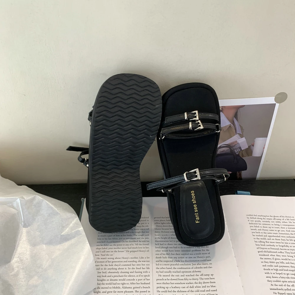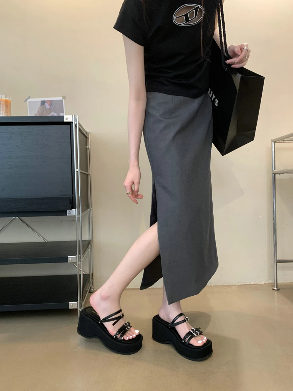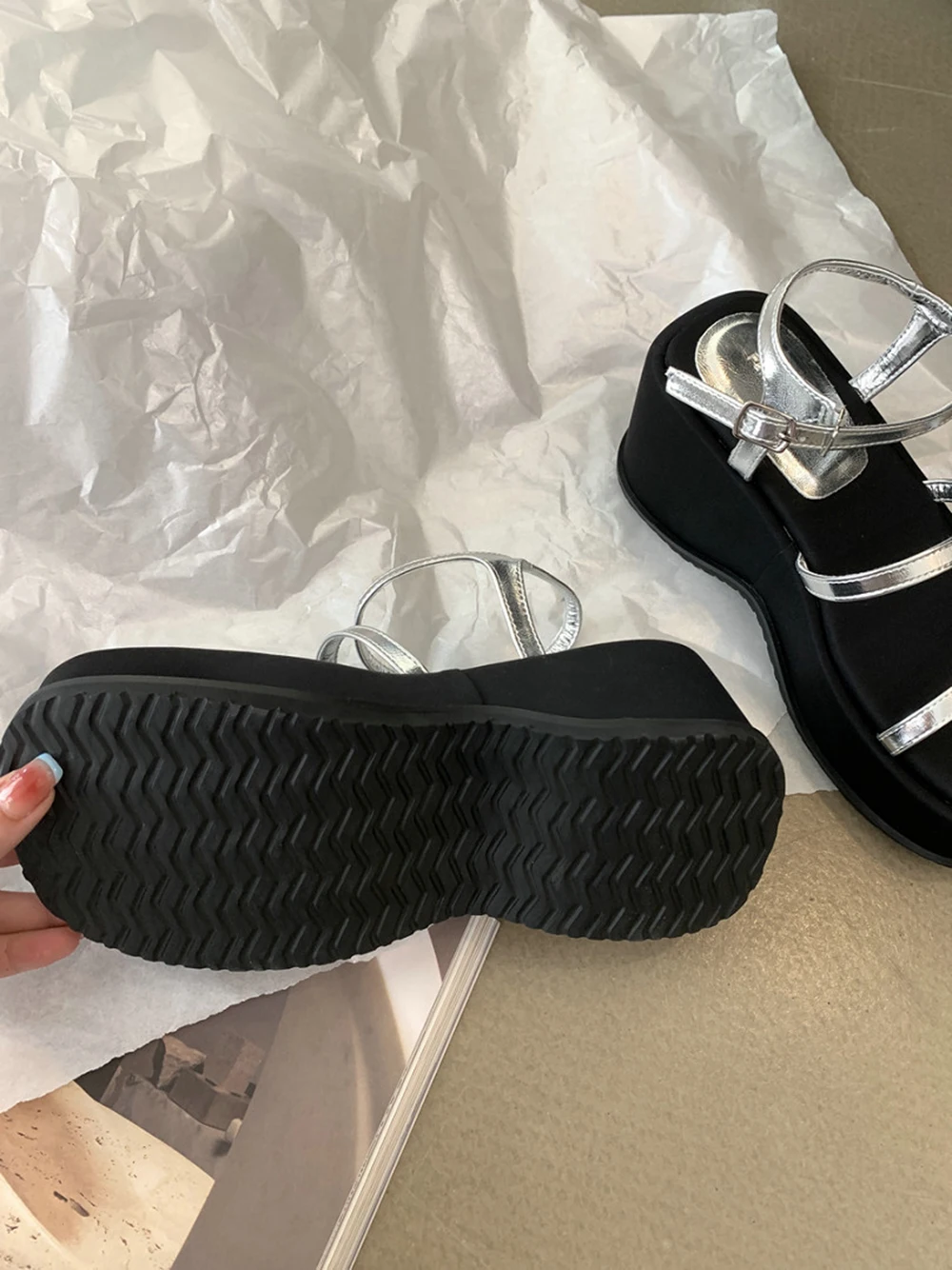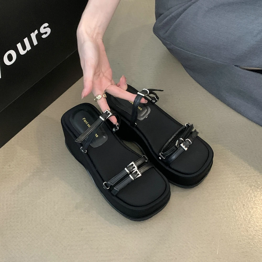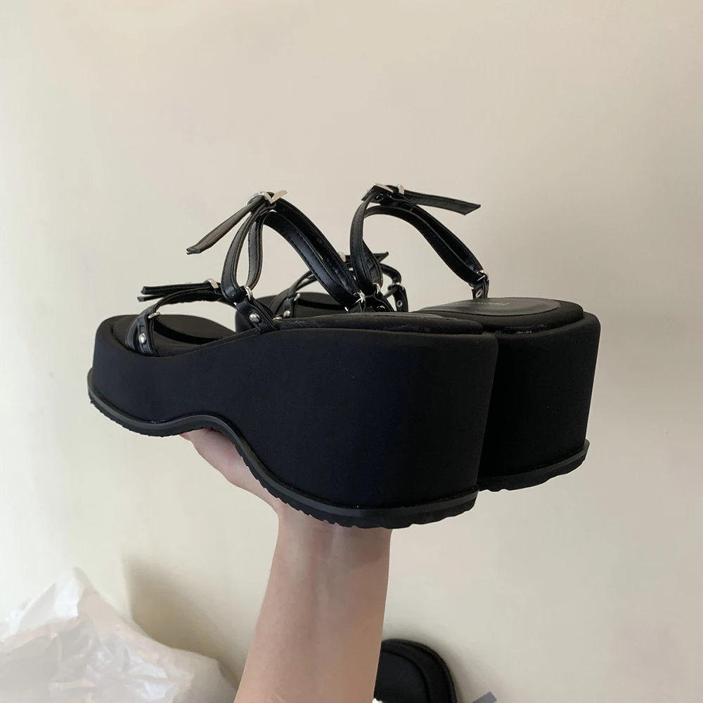 LBSFY - Narrow Band Women Slippers Wedge High Heels Platform Shoes Black White Summer Outside Slides Fashion Dress Shoes Party Pumps 39