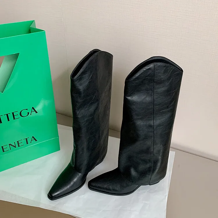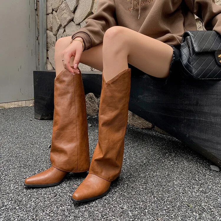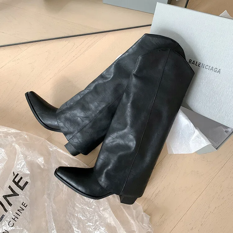 LBSFY - NEW Autumn Women Boots Split Leather Shoes for Women Pointed Toe Chunky Heel Shoes Casual Knee-high Boots V Fashion Pants Boots