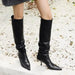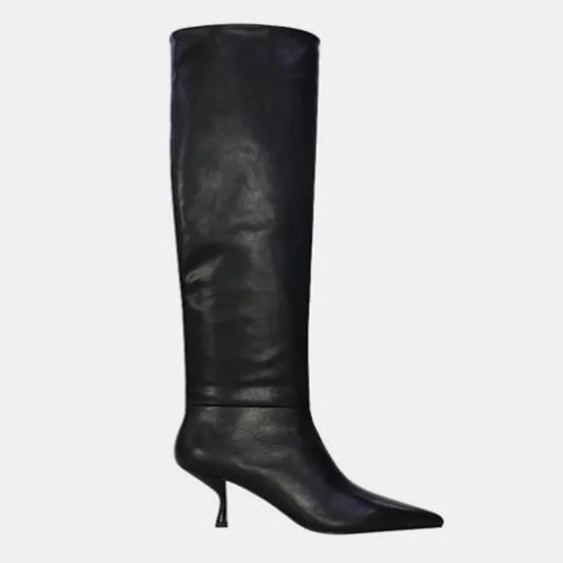 LBSFY - New Black White Solid Leather Strange Heels Tube Slip On Knee High Boots Women Fashion Pointed Toe Long Botas Shoes Size 45