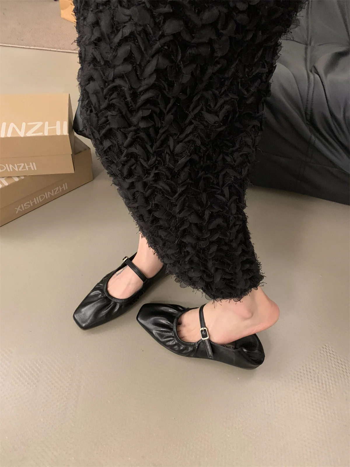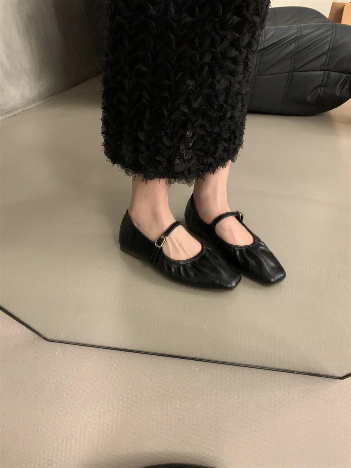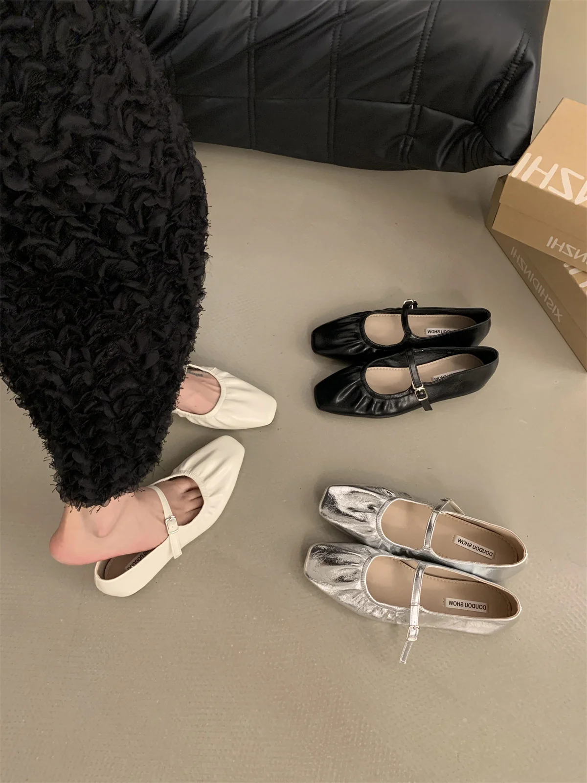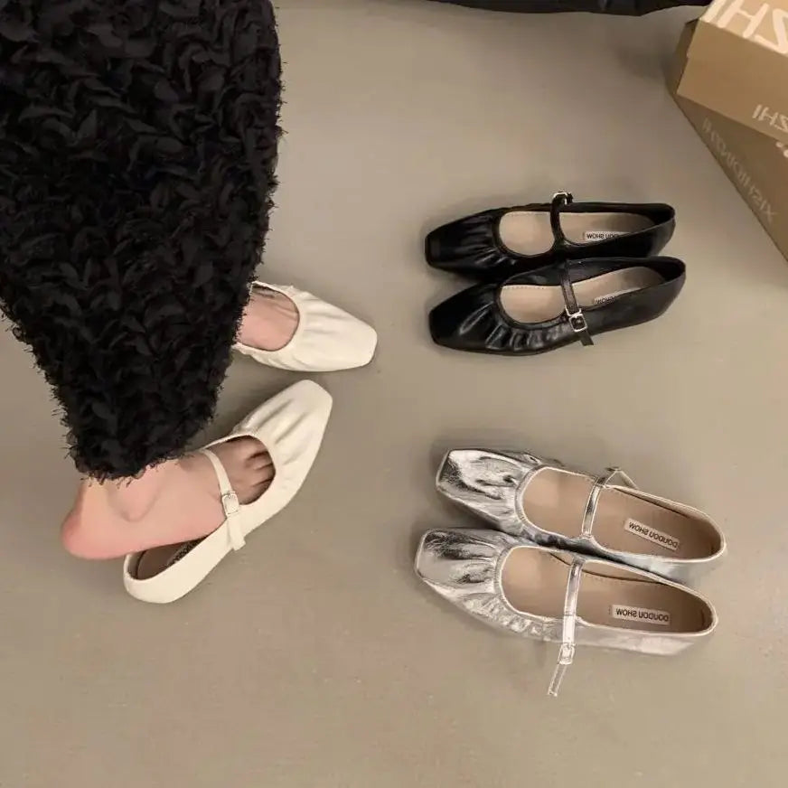 LBSFY -New Brand Women Flats Fashion Square Toe Shallow Mary Jane Shoes Soft Casual Ballet Shoes Slingback Shoes Mujer