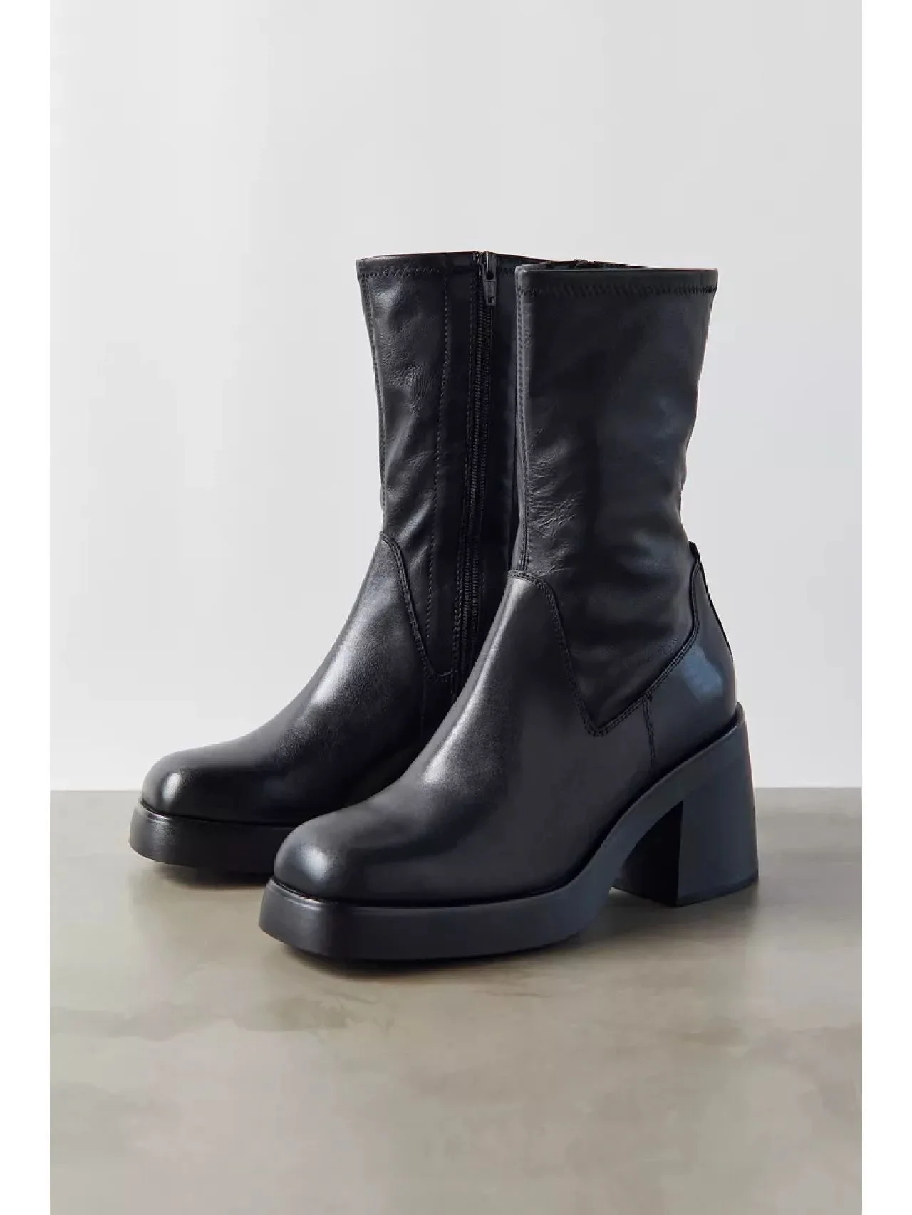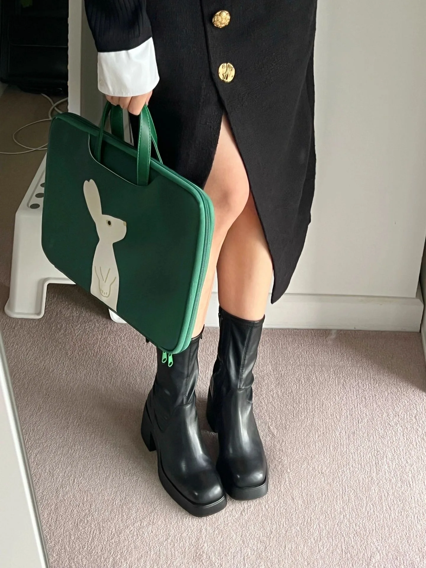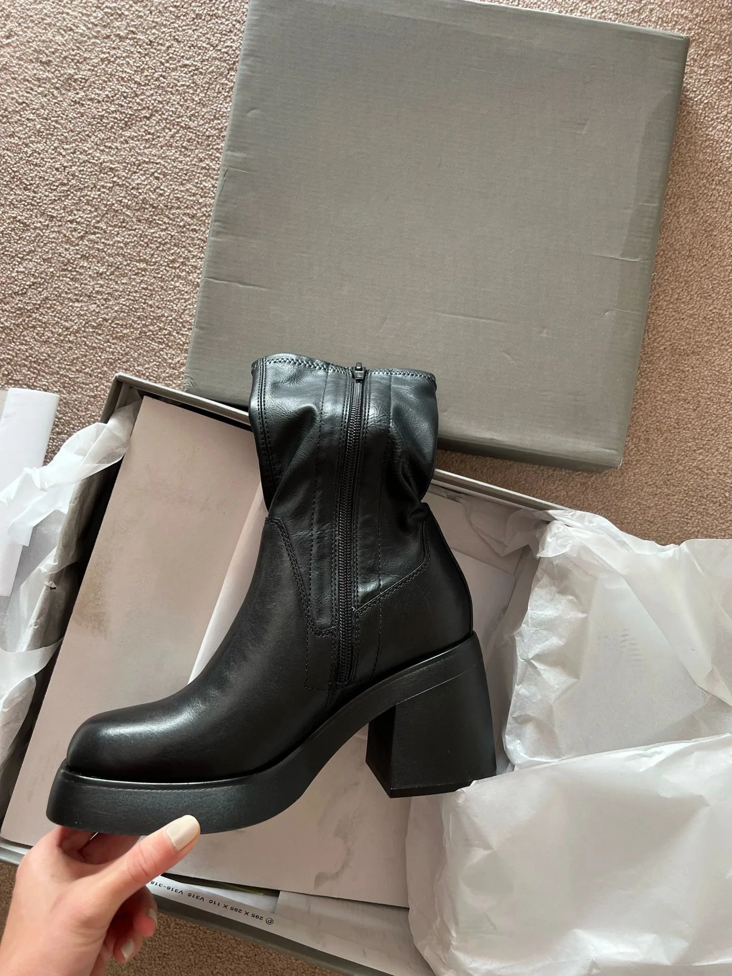 LBSFY - New Genuine Leather High-Heeled Knight Midsole Boots for Women, Thick Heels, Thick Soles, Martin Boots, Pile Boots, Skinny Boots