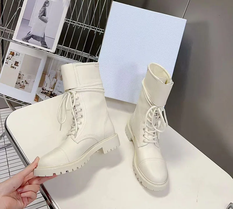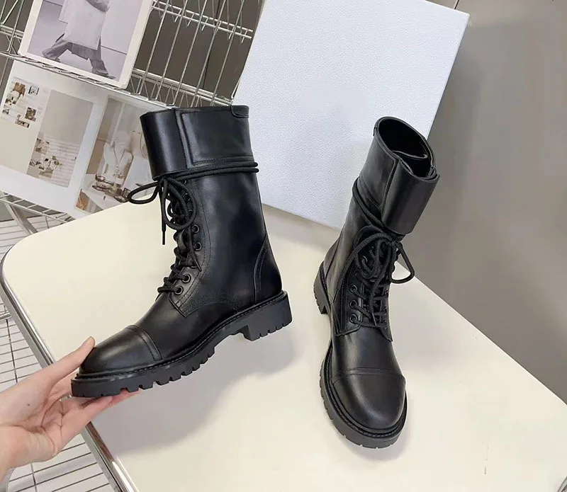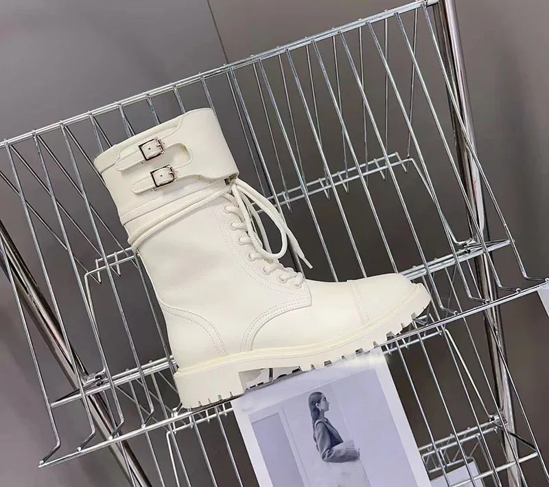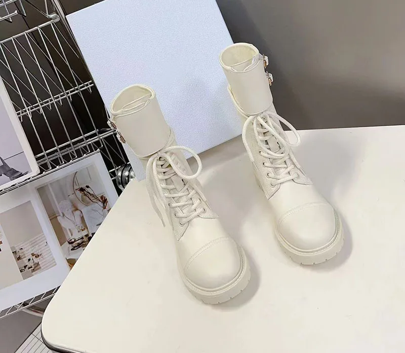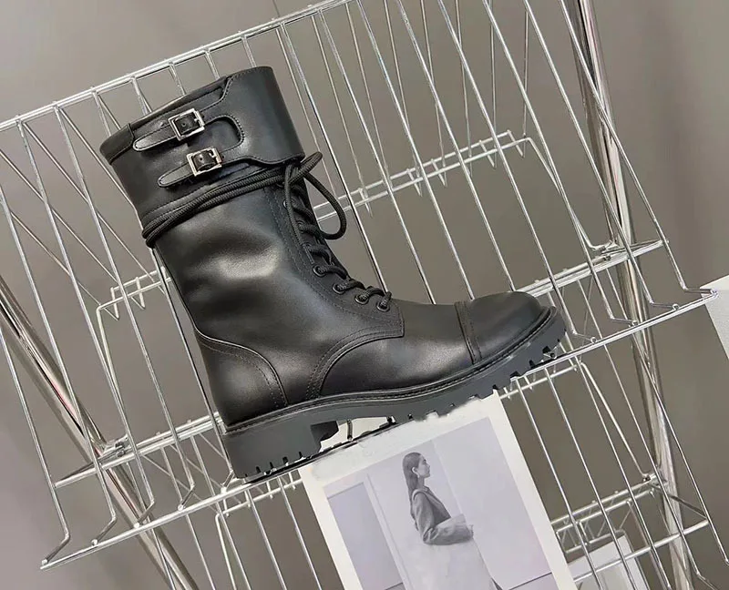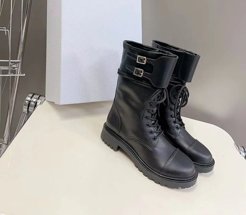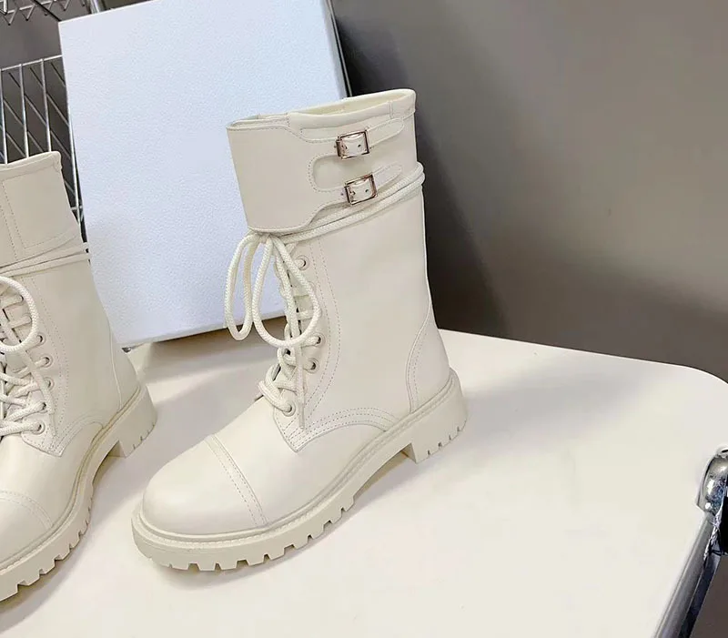 LBSFY - New Lace Up Leather Buckle Short Boots with Round Toe, Thick Sole, Cowhide Midsole, Women's Short Boots