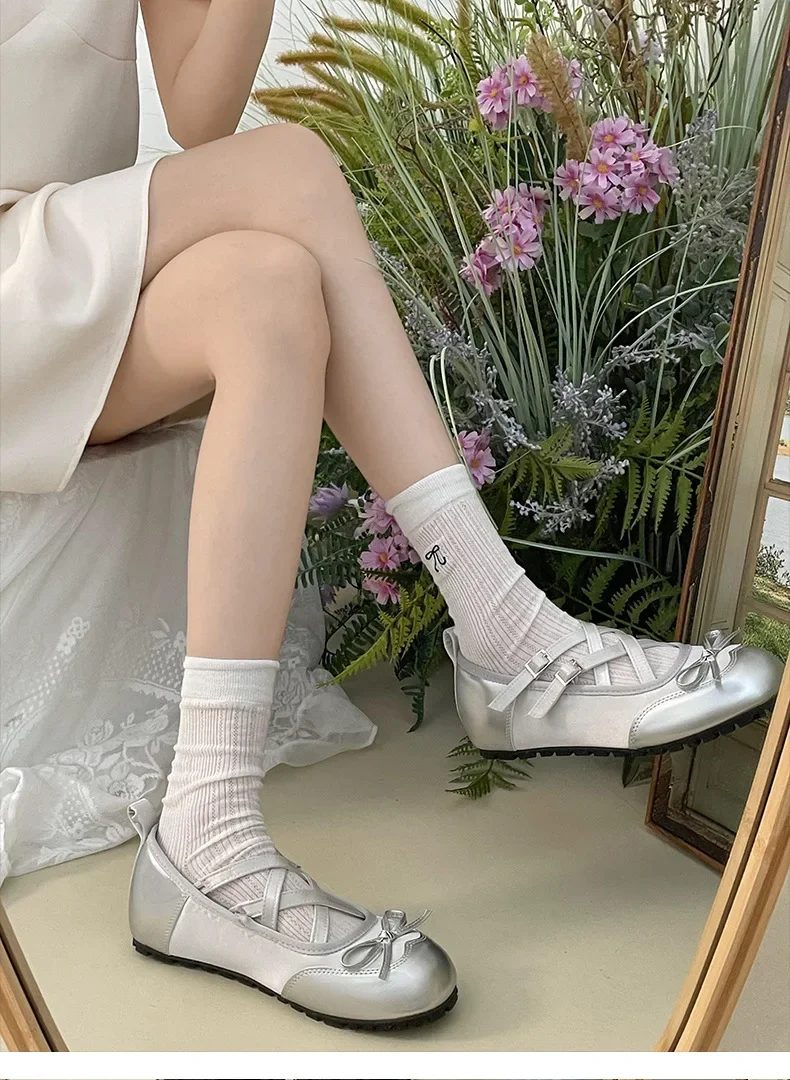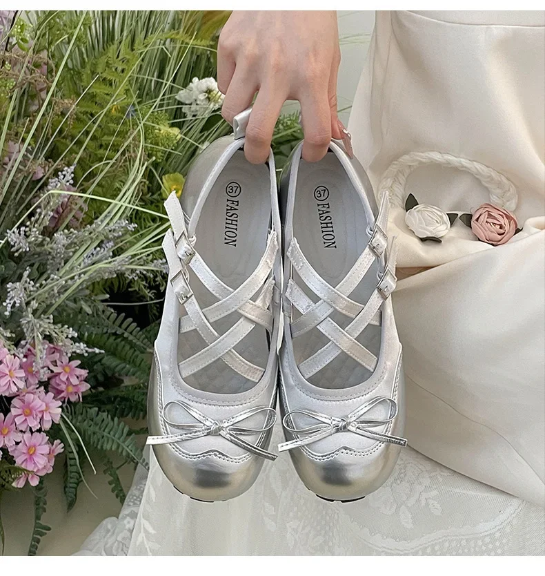 LBSFY - New Round Head Buckle Flat Women's Mary Jane Shoes Fashion Soft Sole Bow Decorated Woman Ballet Shoes Casual Walking Woman Shoes