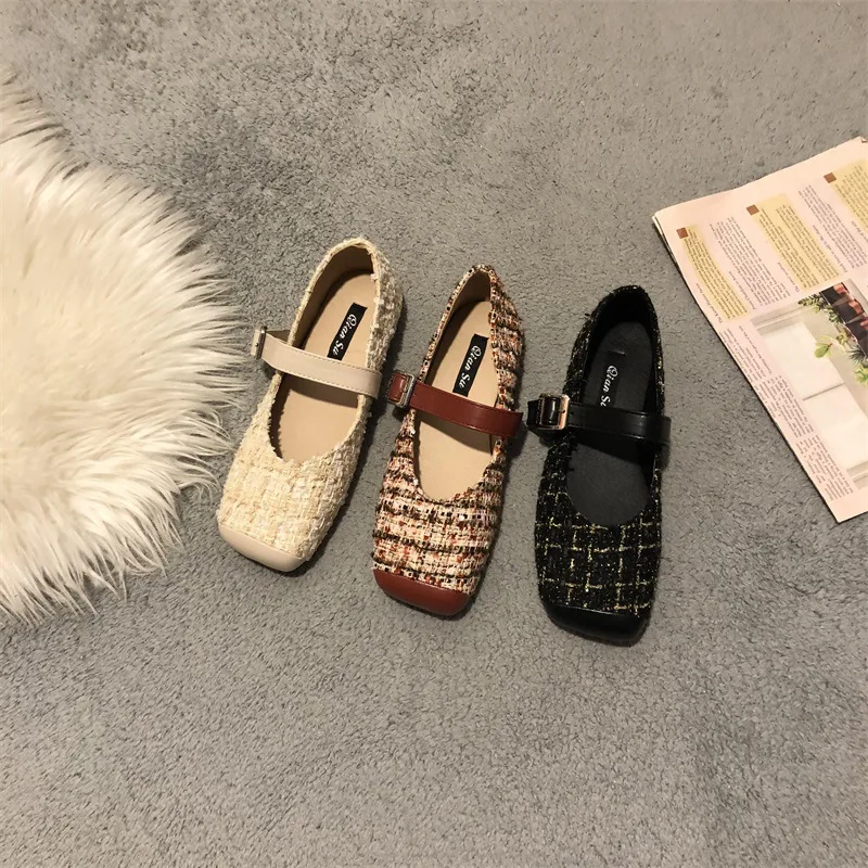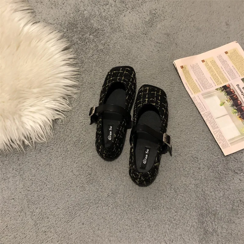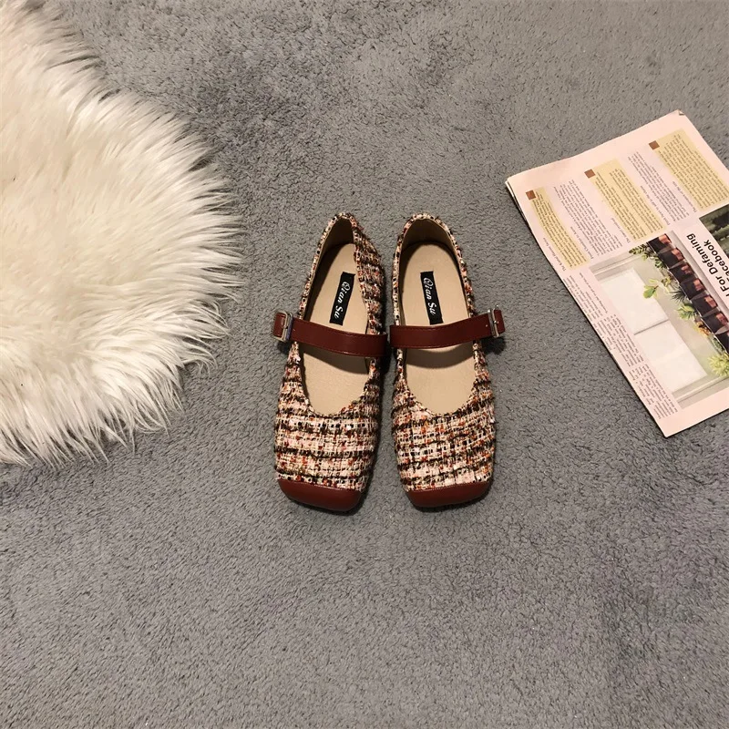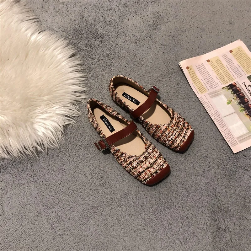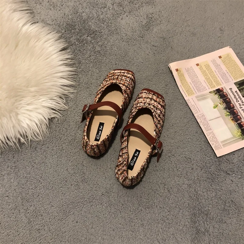 LBSFY  -  New Spring Suqare Toe Flat Shoes Women Mary Jane Fashion Plaid Fabric Ladies Soft Casual Shoes Dress Flat Ballet Girl Zapatillas