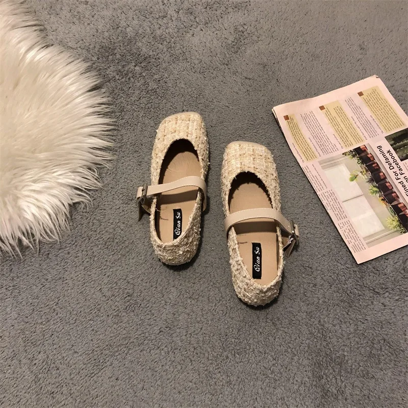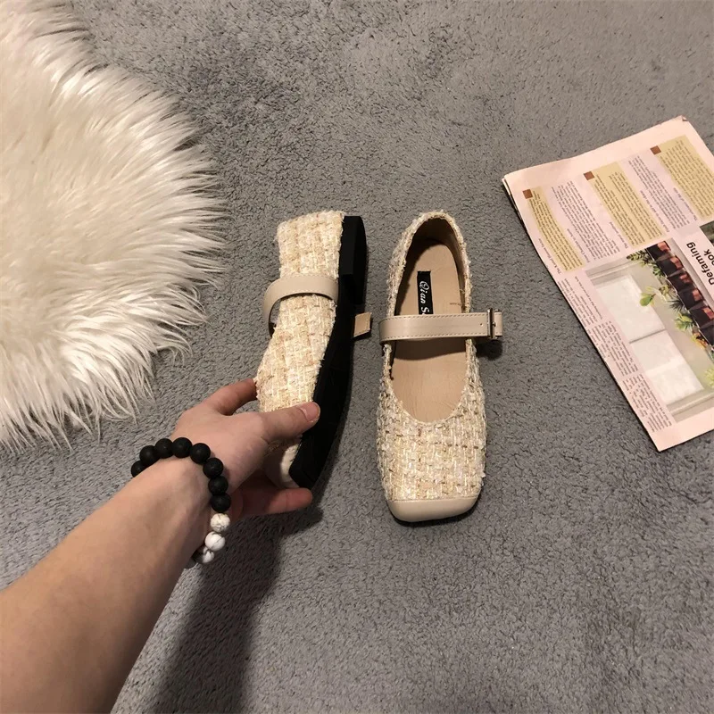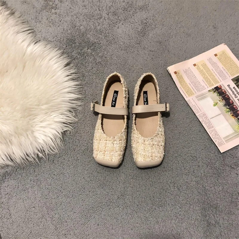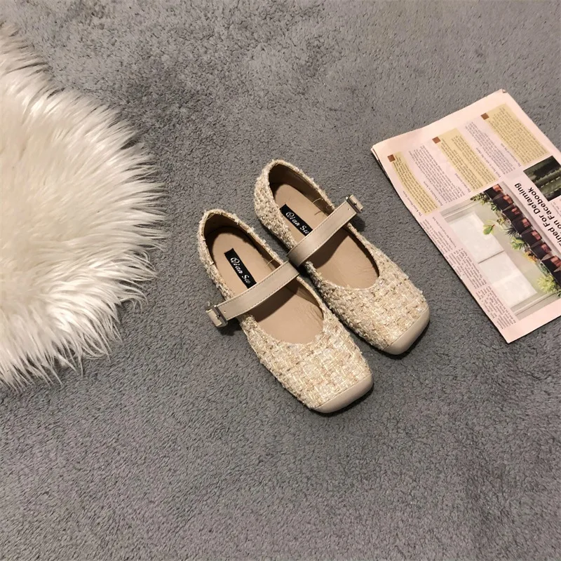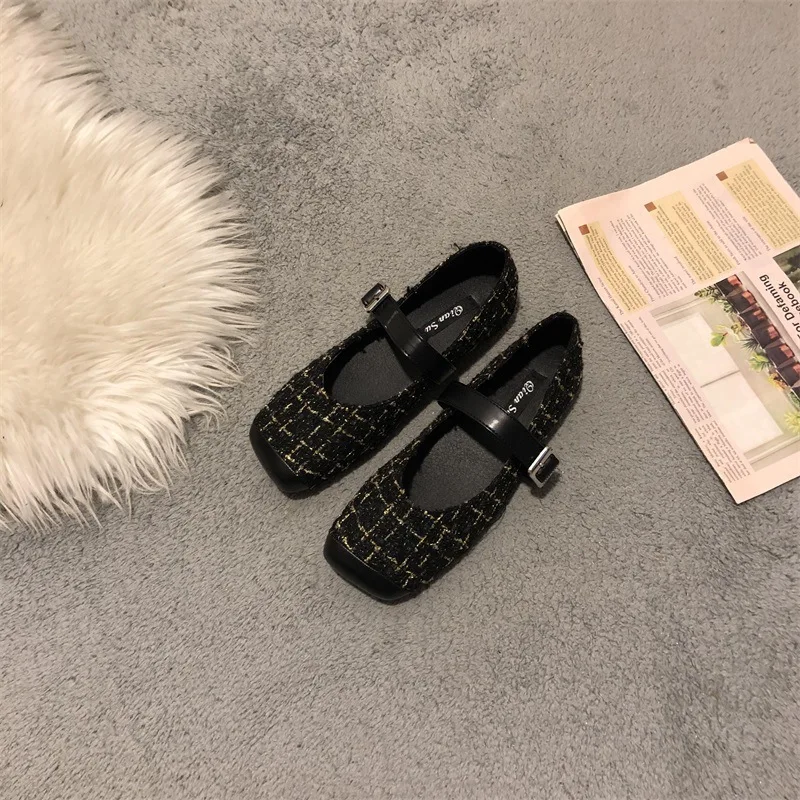 LBSFY  -  New Spring Suqare Toe Flat Shoes Women Mary Jane Fashion Plaid Fabric Ladies Soft Casual Shoes Dress Flat Ballet Girl Zapatillas