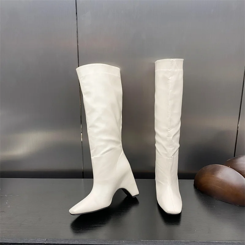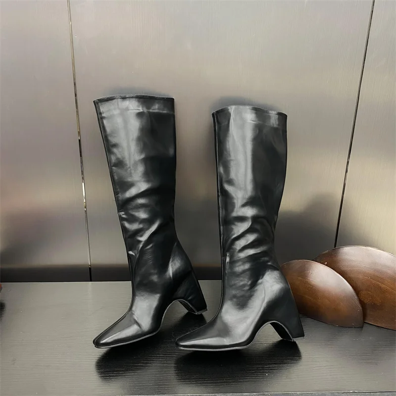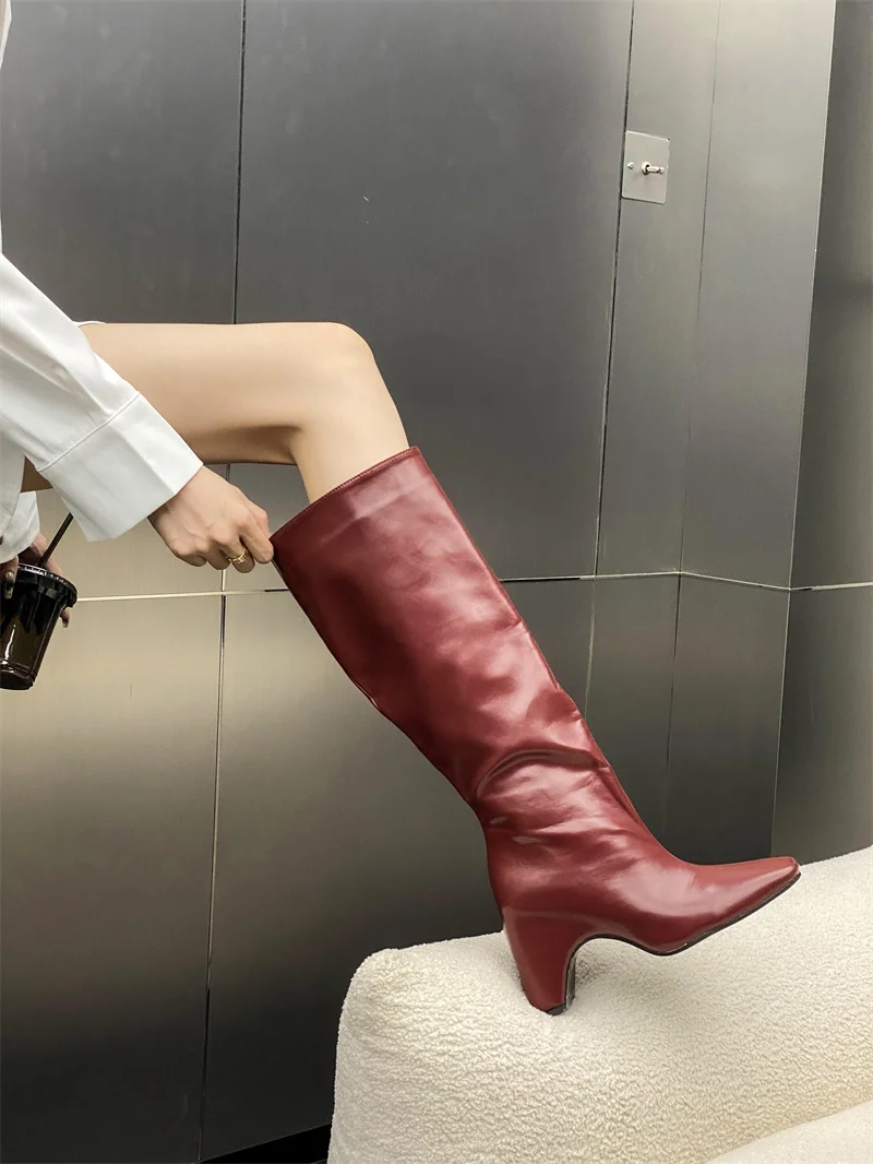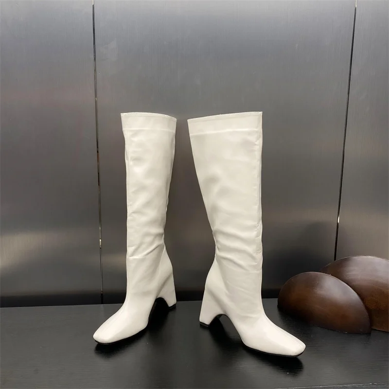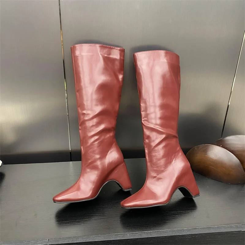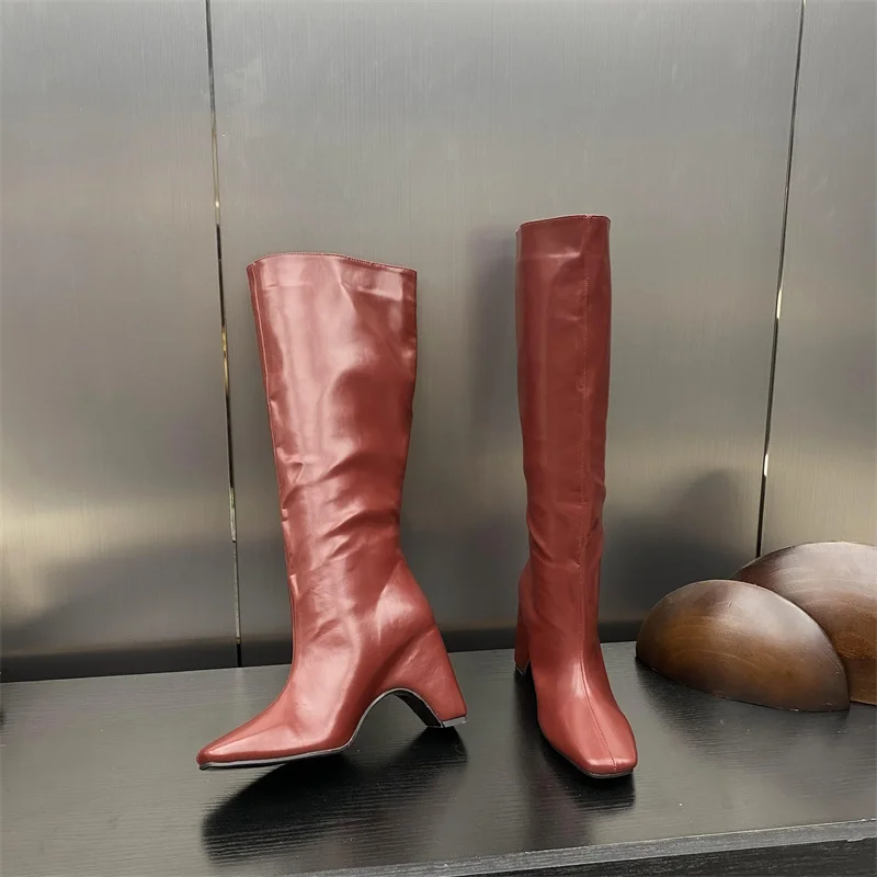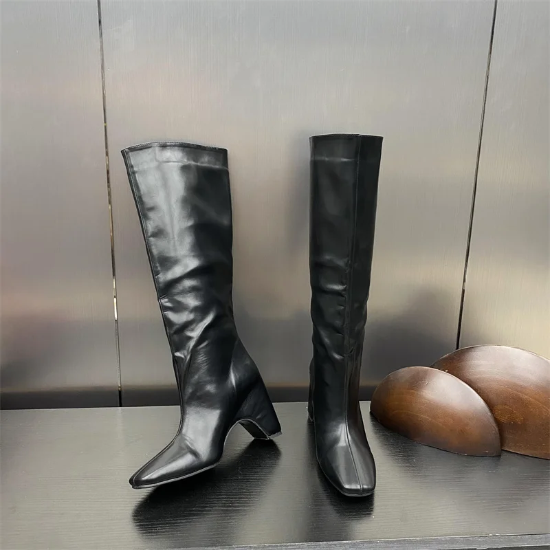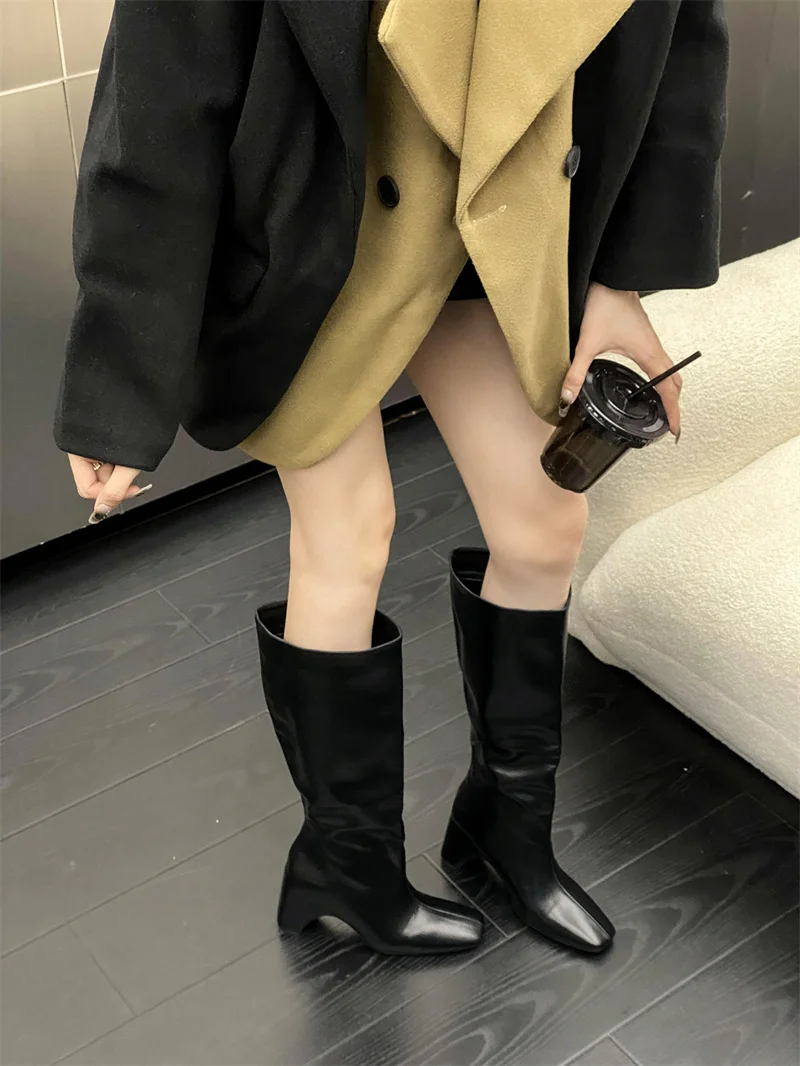 LBSFY - New Style Low Thick Heels Knee High Boots Women Cozy PU Leather Motorcycle Long Shoes Autumn Winter Square Toe Botas Mujer