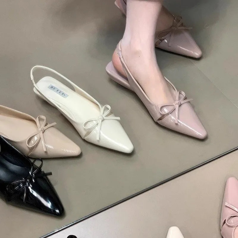LBSFY -New Style Women's Sandals with Anti Slip Slim Heel Close Toes Elastic Band Bow Outdoor Black/White Fashion Sandals Zapatos Mujer