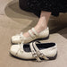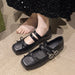 LBSFY -New Style Women's Square Toe Shoes Luxury Bow Flats Ladies Ballet Silver Belt Buckle Footwear Elegant Fashion Mary Jane Shoes