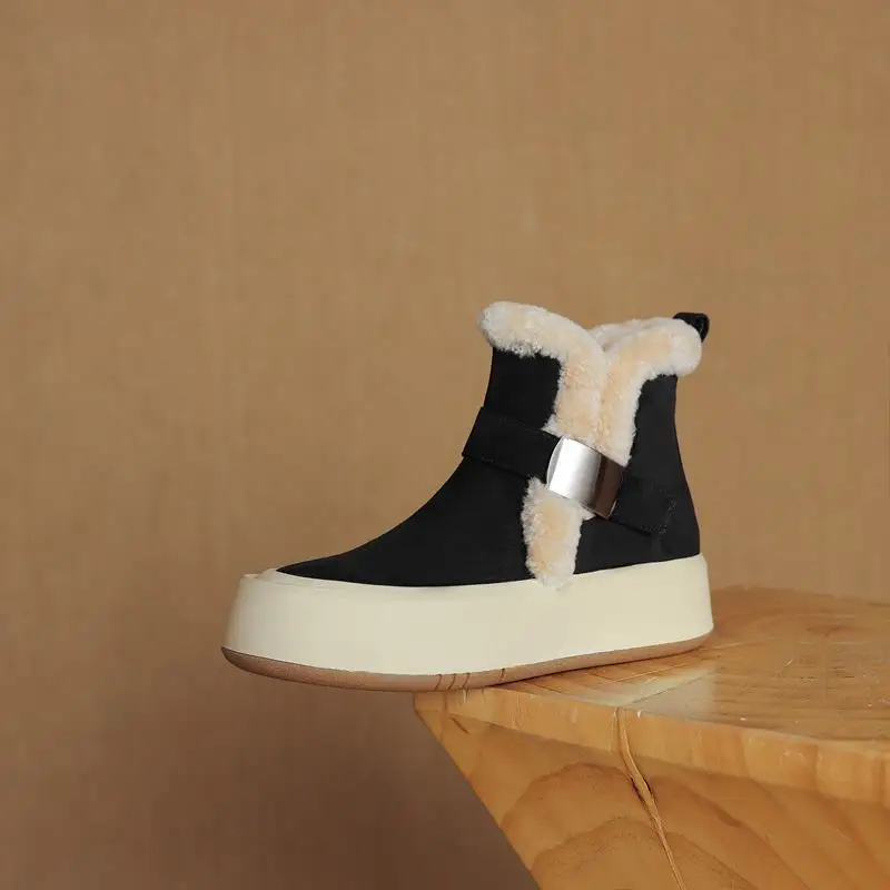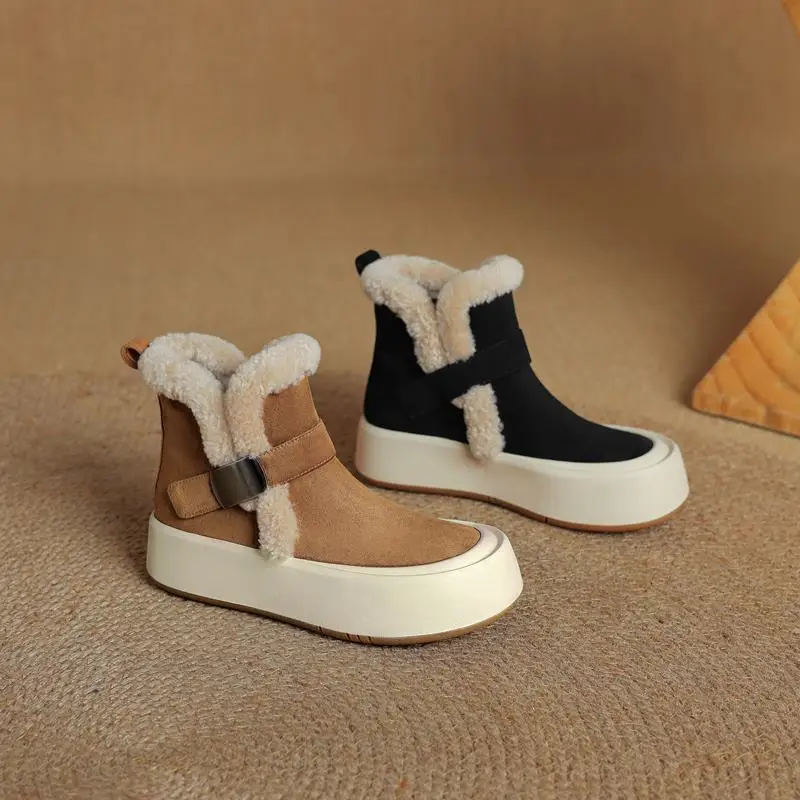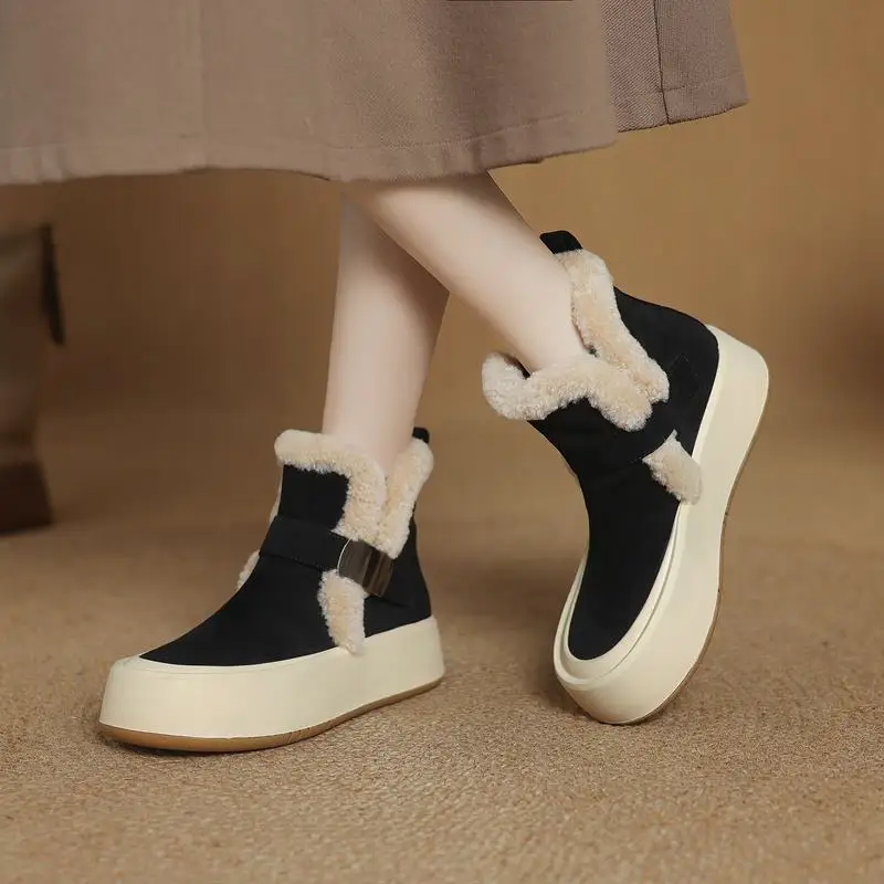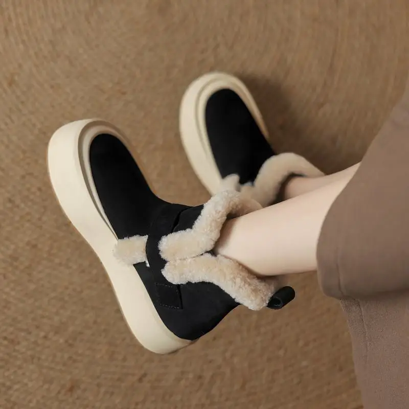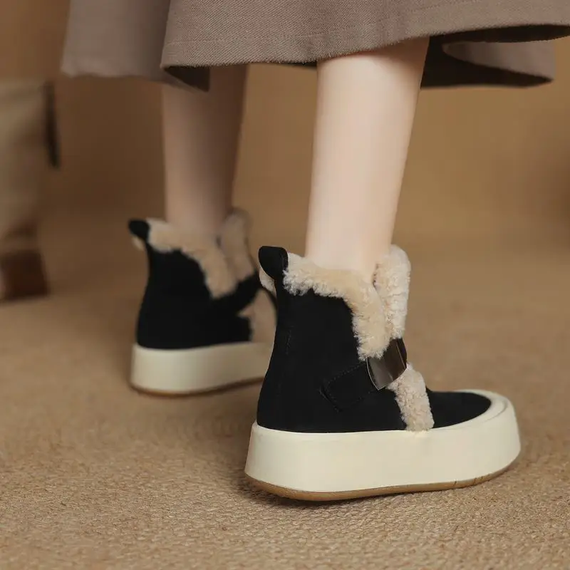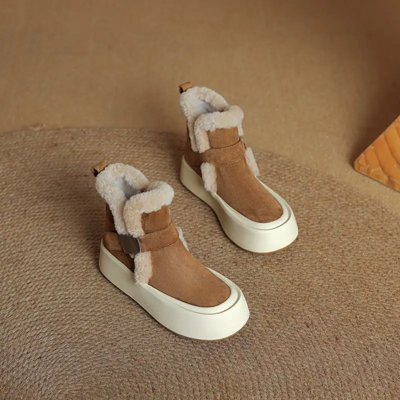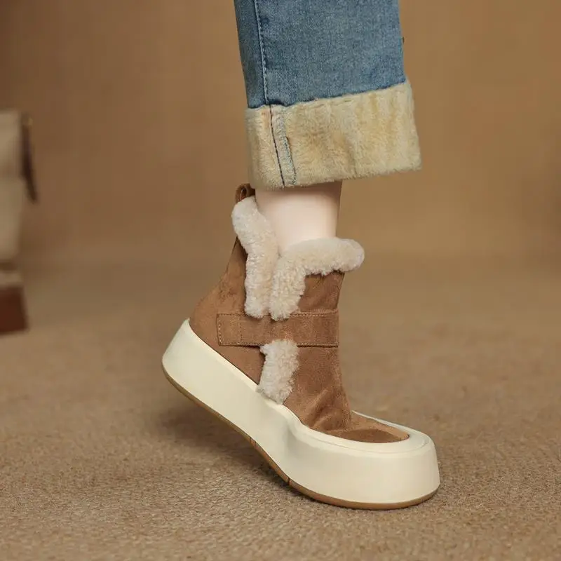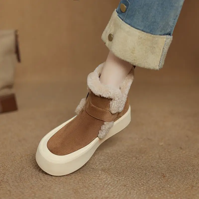 LBSFY - New Suede Wool Snow Boots Round Toe Platform Flat Winter Boots Women Thick Fur Warm Ankle Boots For Female Shoes