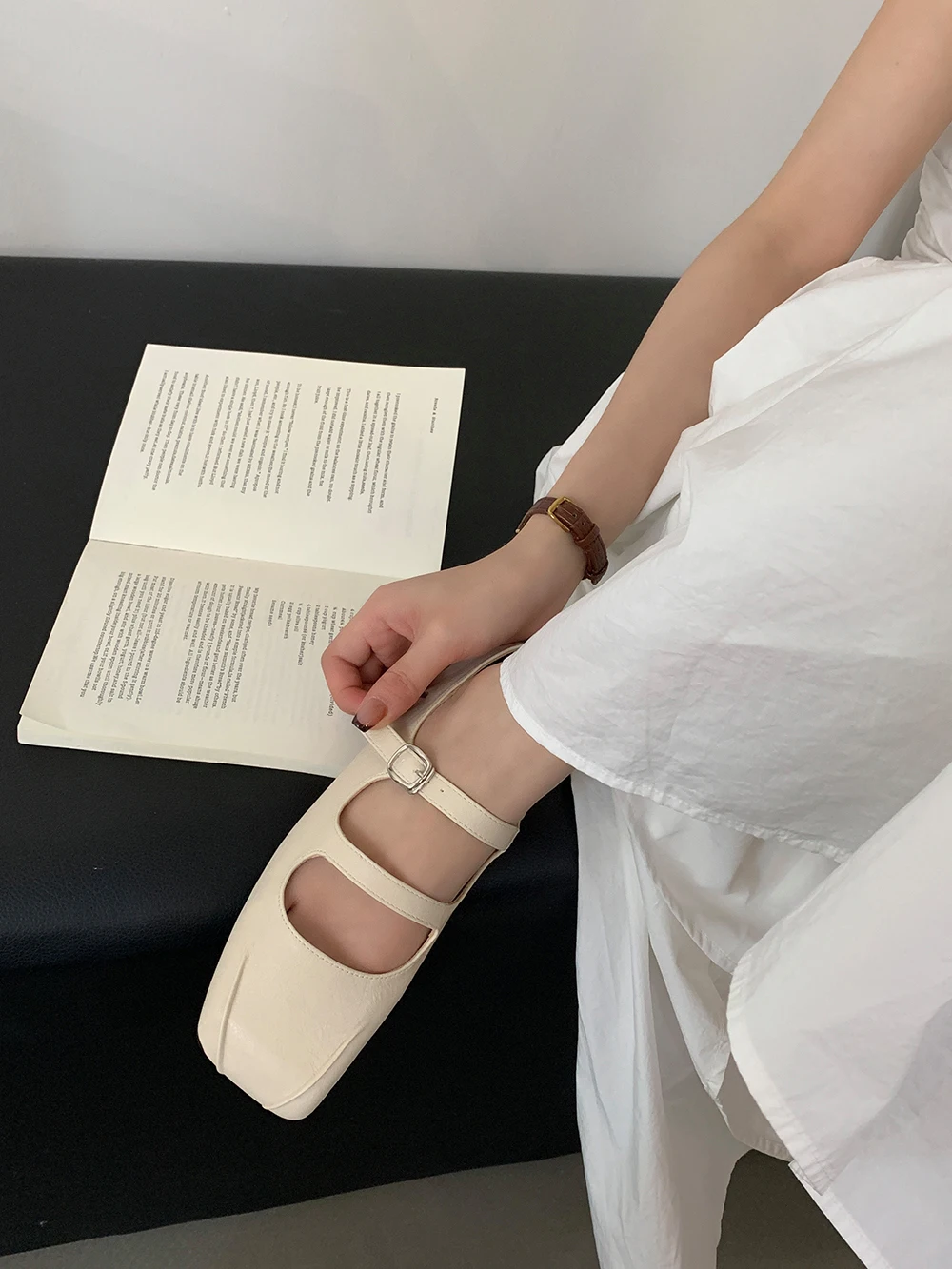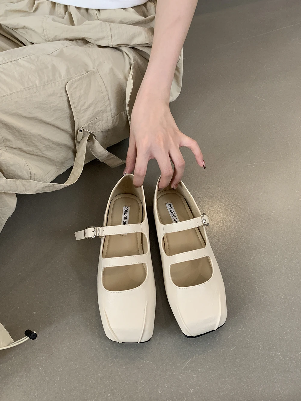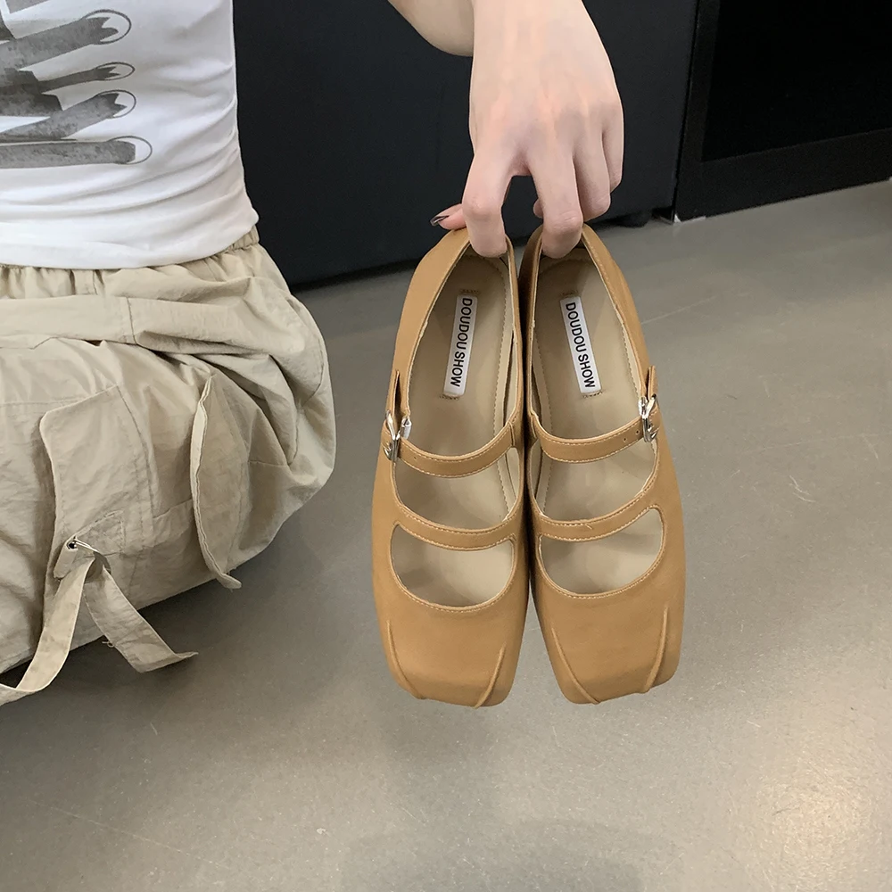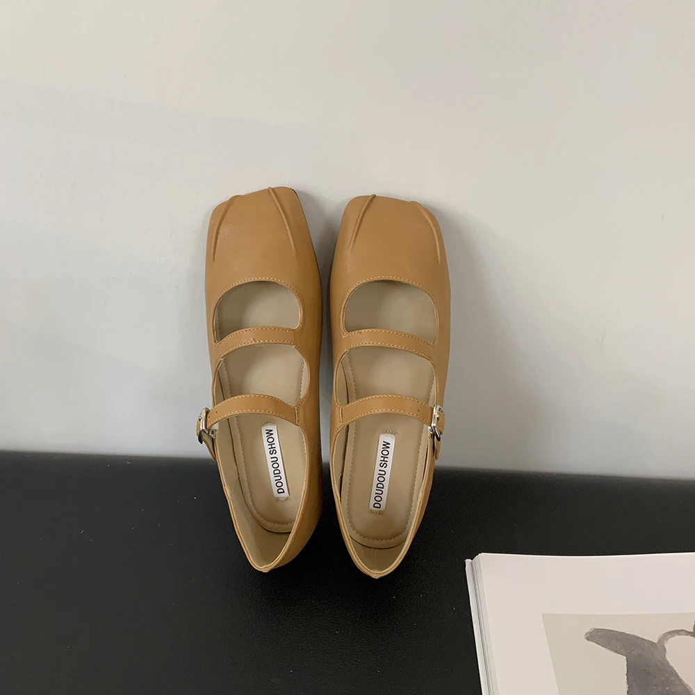 LBSFY -New Women Flat Shoes Fashion Square Toe Shallow Ladies Mary Jane Ballerinas Flat Heel Casual Ballet Shoes
