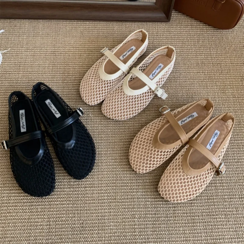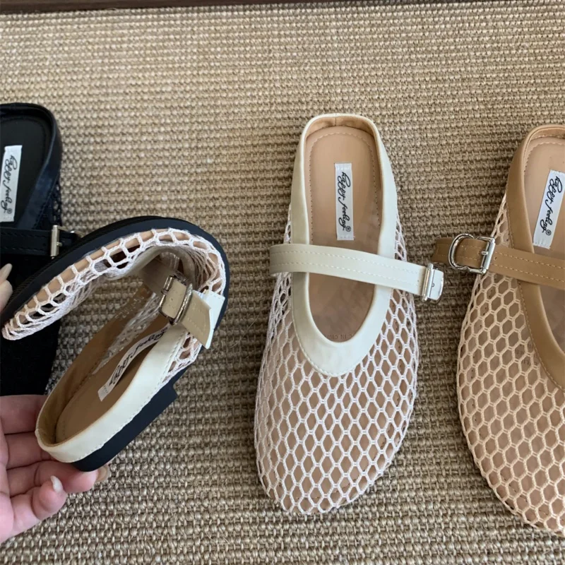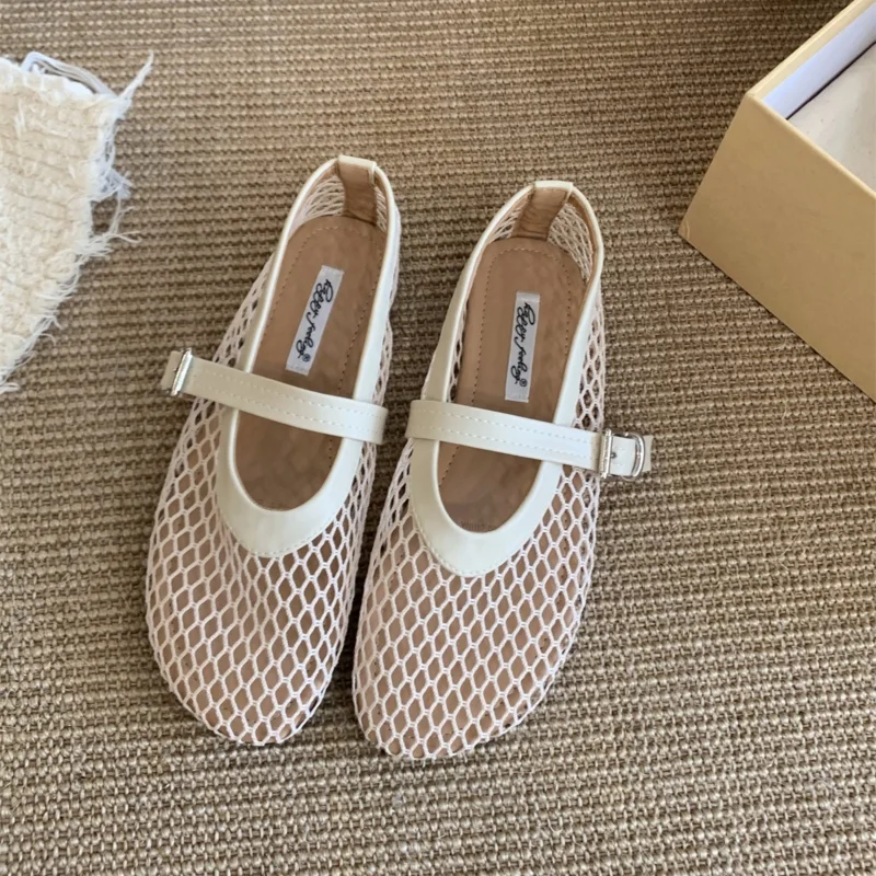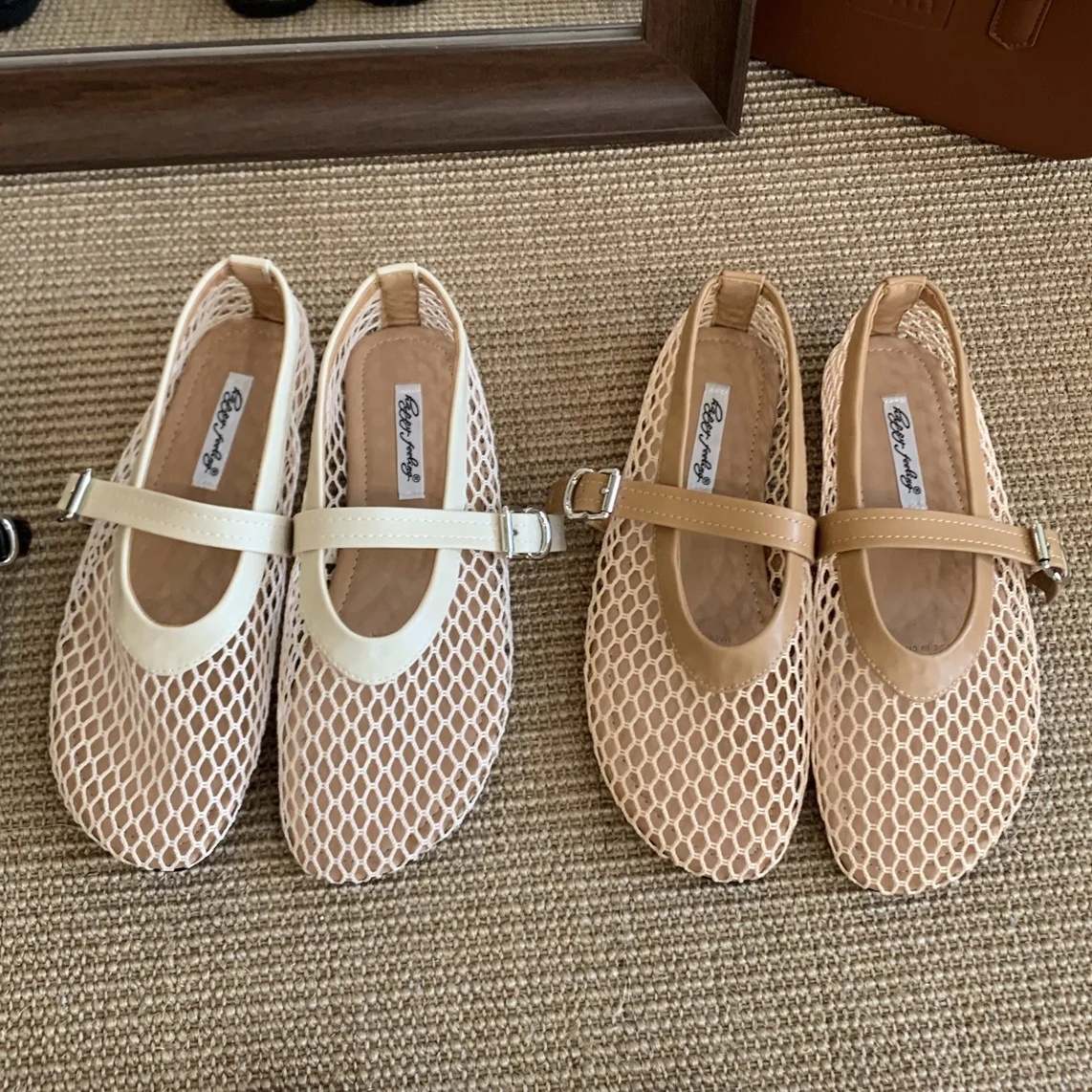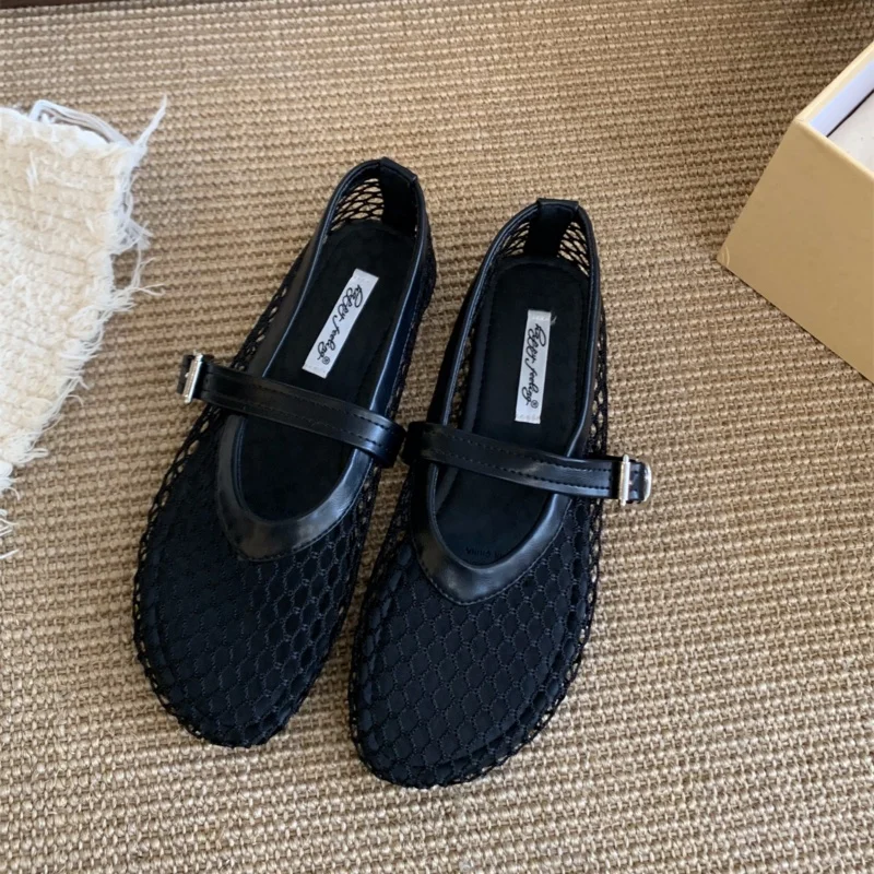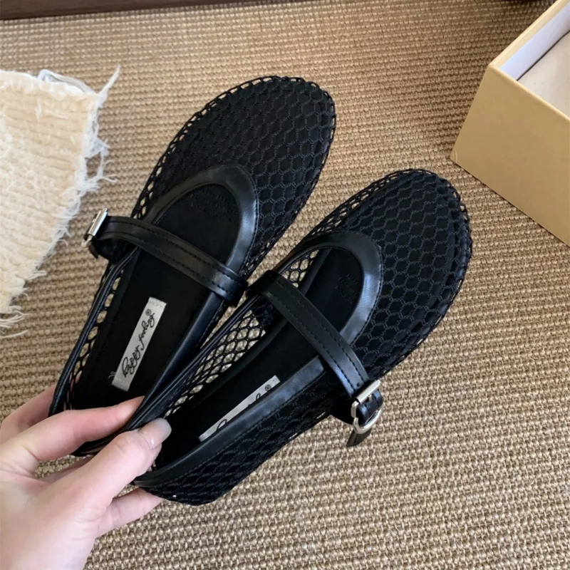 LBSFY -New Women Flats Summer Wear Round Toe Straight Buckles Casual and Comfortable Flats Cut-out Mary Jane Single Shoes
