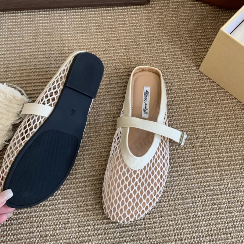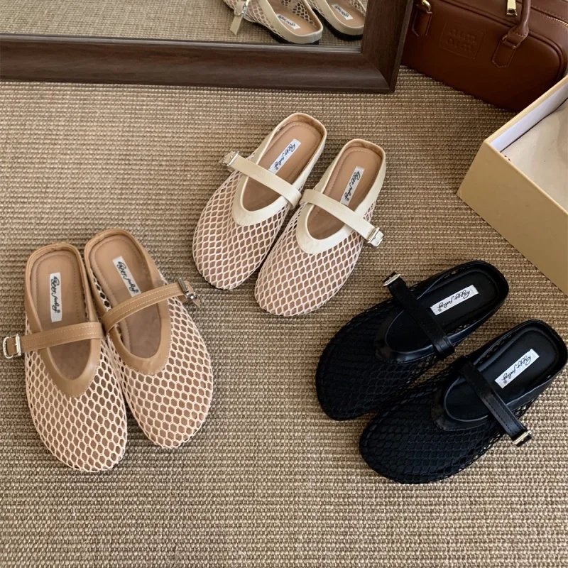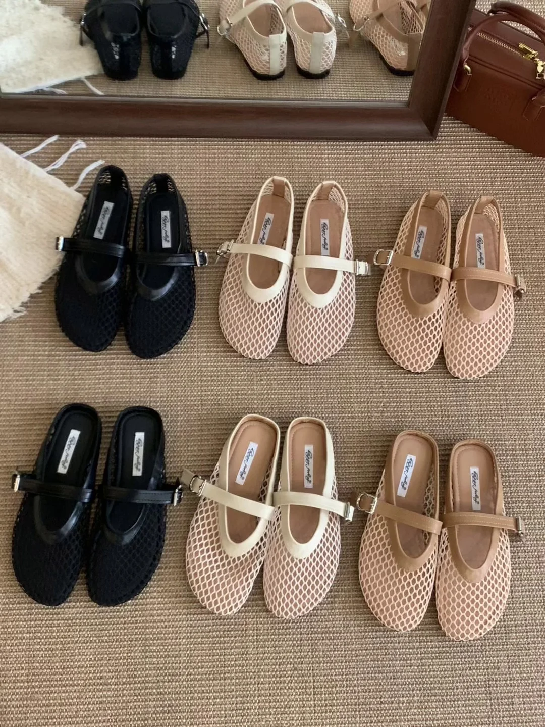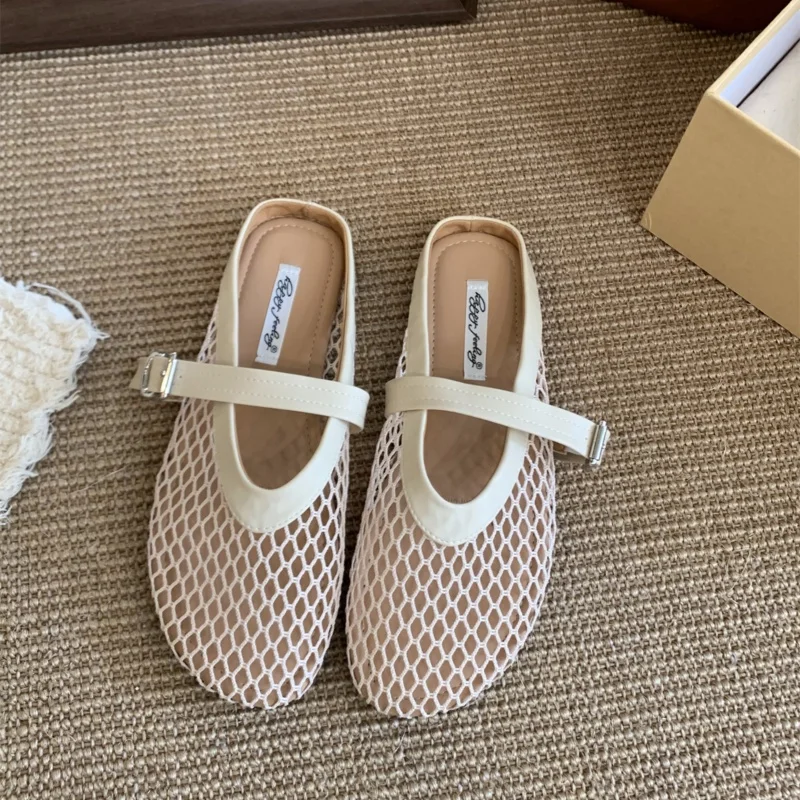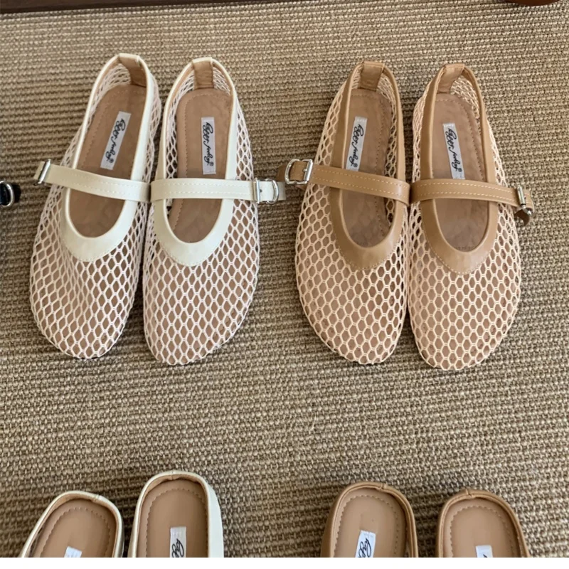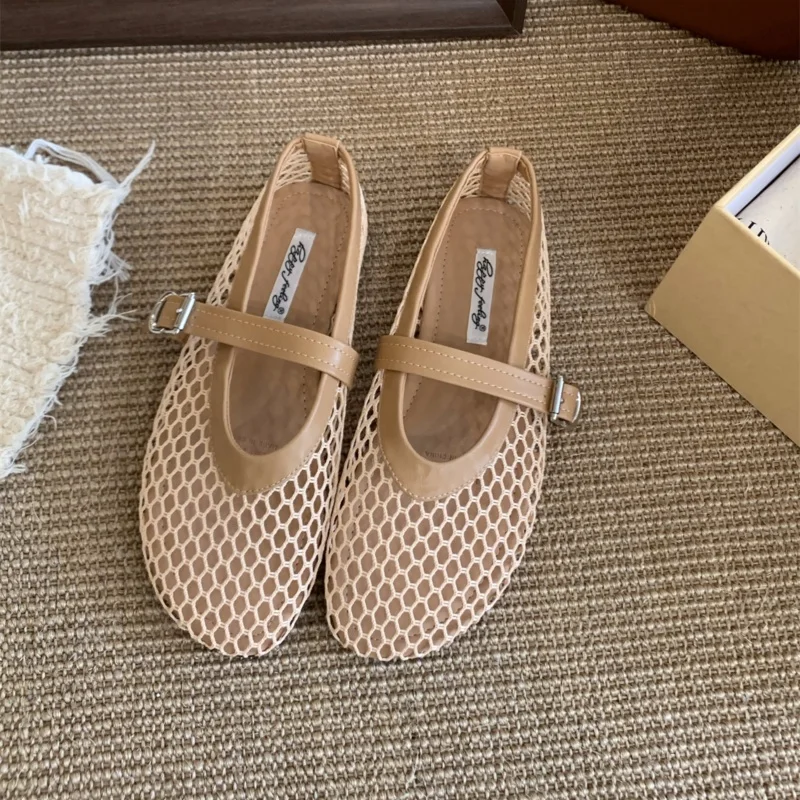 LBSFY -New Women Flats Summer Wear Round Toe Straight Buckles Casual and Comfortable Flats Cut-out Mary Jane Single Shoes