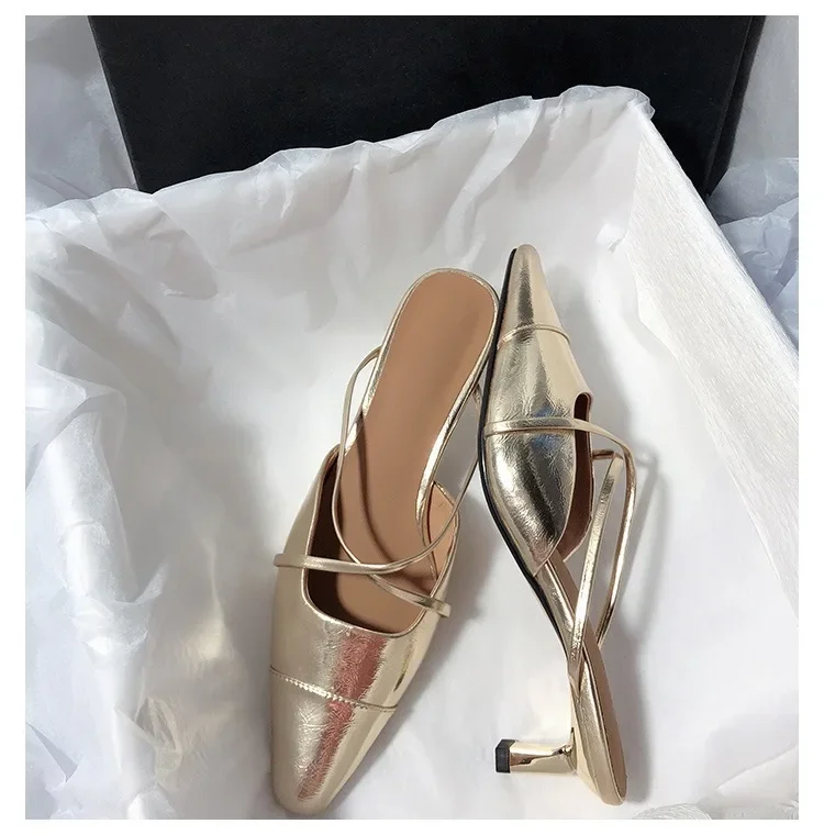 LBSFY - New Women Slippers Fashion Silver Mules Shoes Summer 2024 Sandals Pumps Mid Heels Slides Stilettos Mujer Party Zapatos Slingback