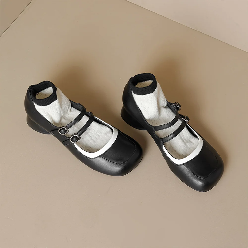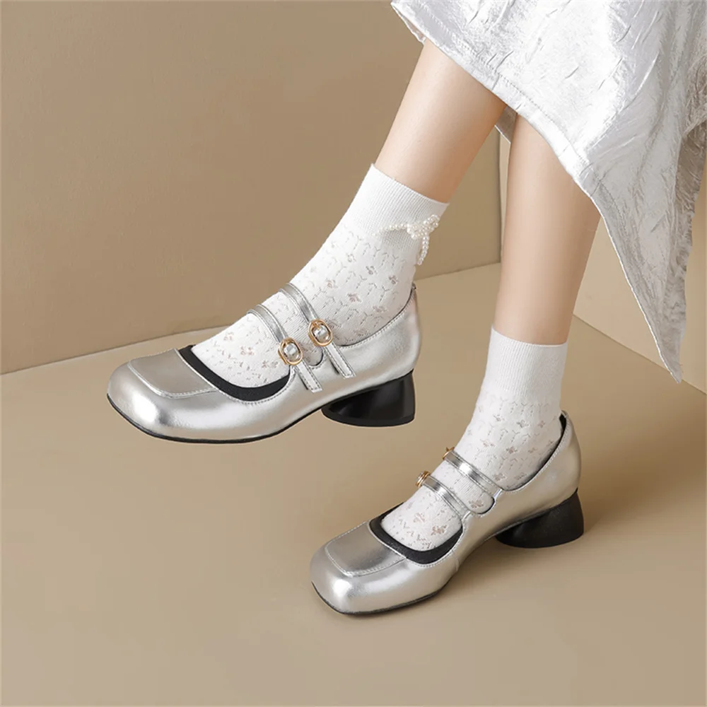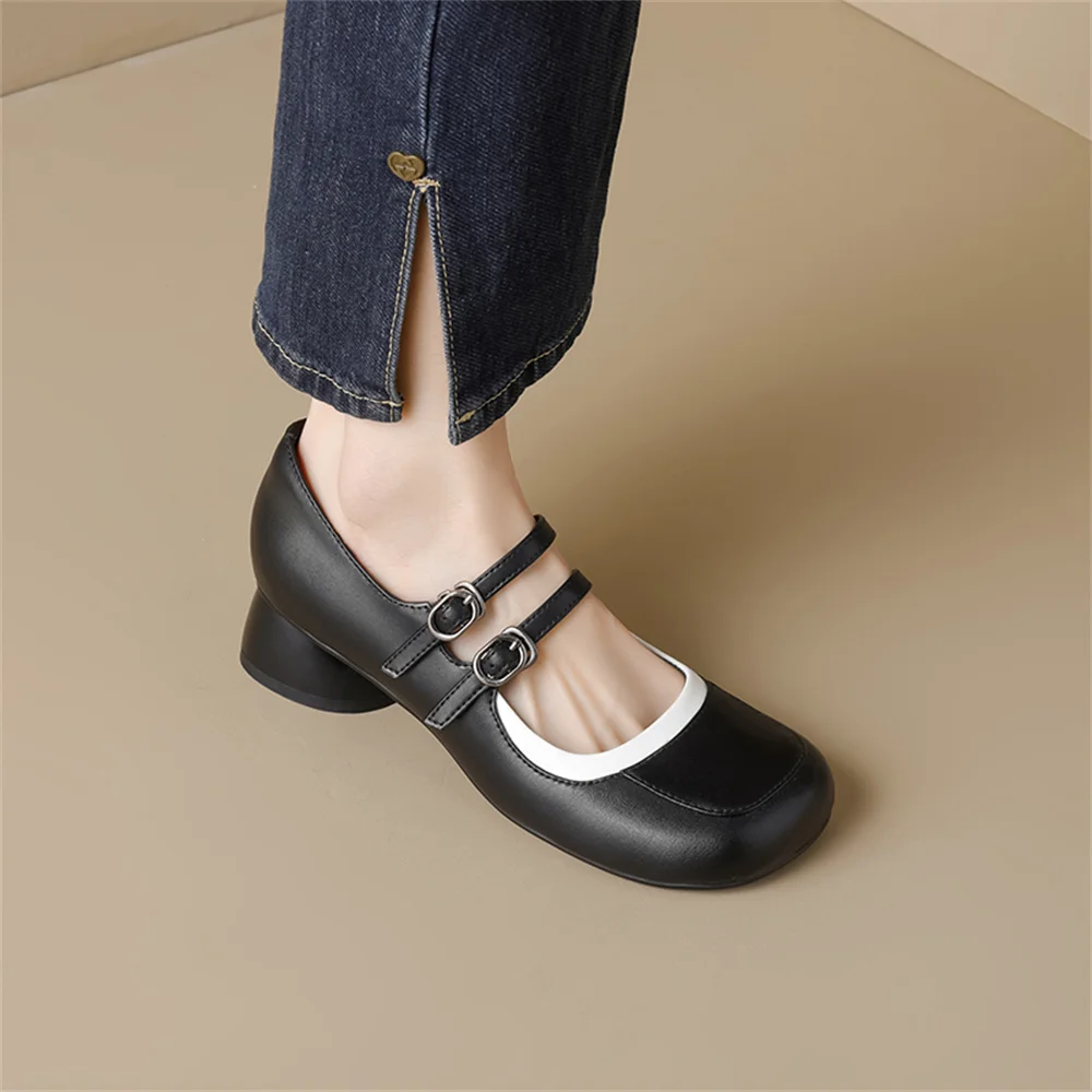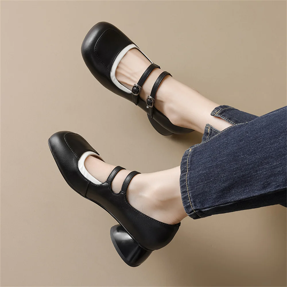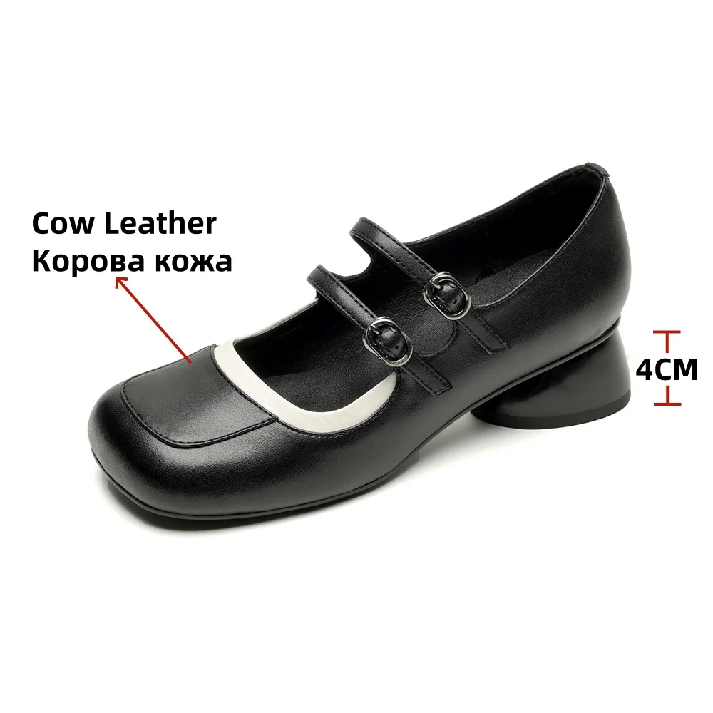 LBSFY - New Women's Mary Janes Shoes High Quality Genuine Leather High Heels Dress Shoes Buckle Strap Women's Party Shoes