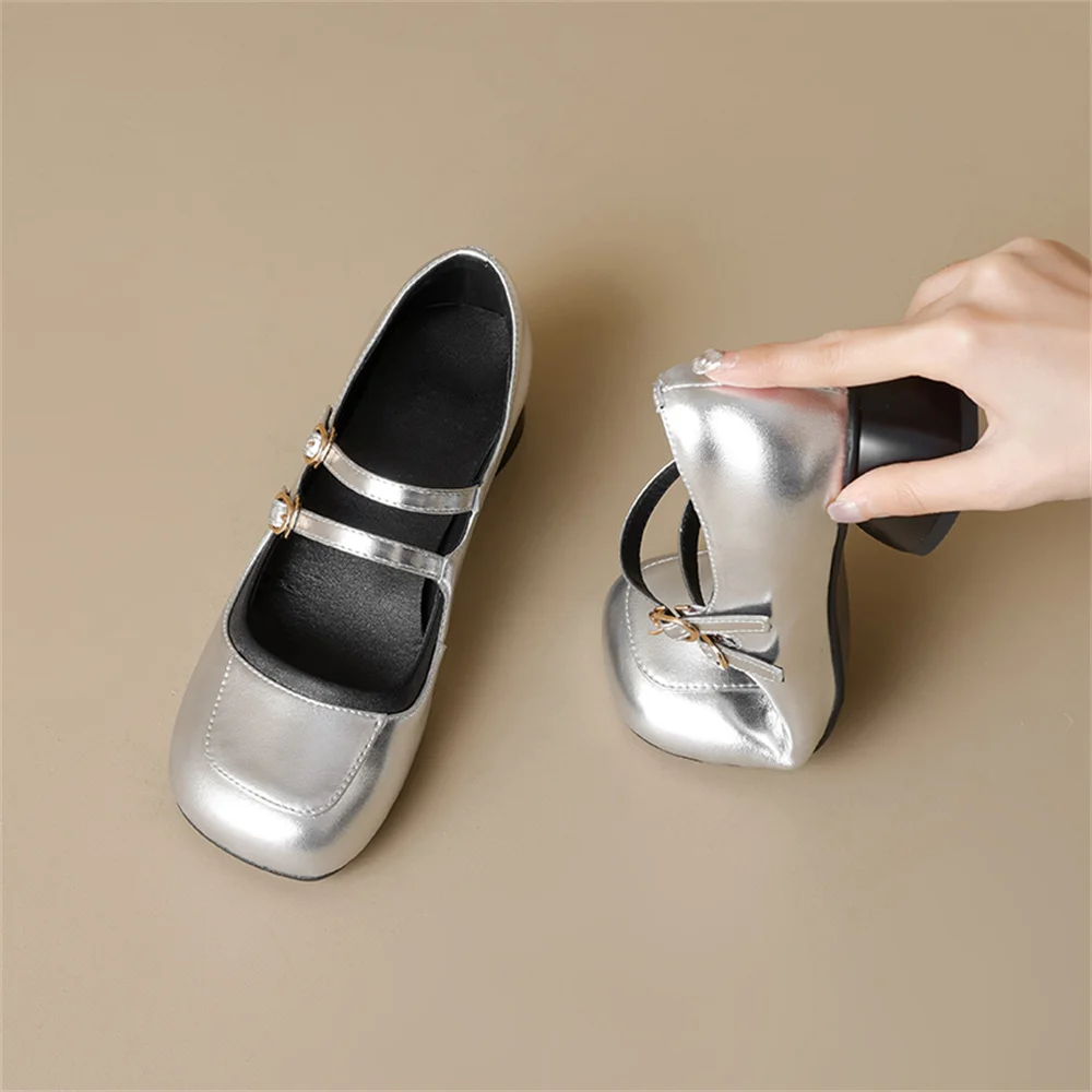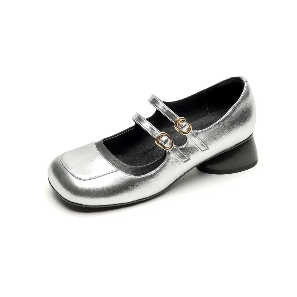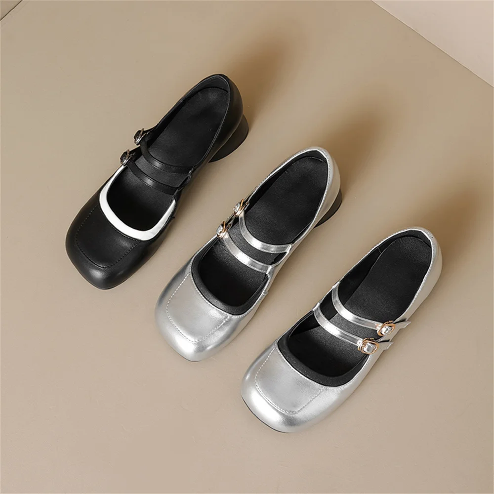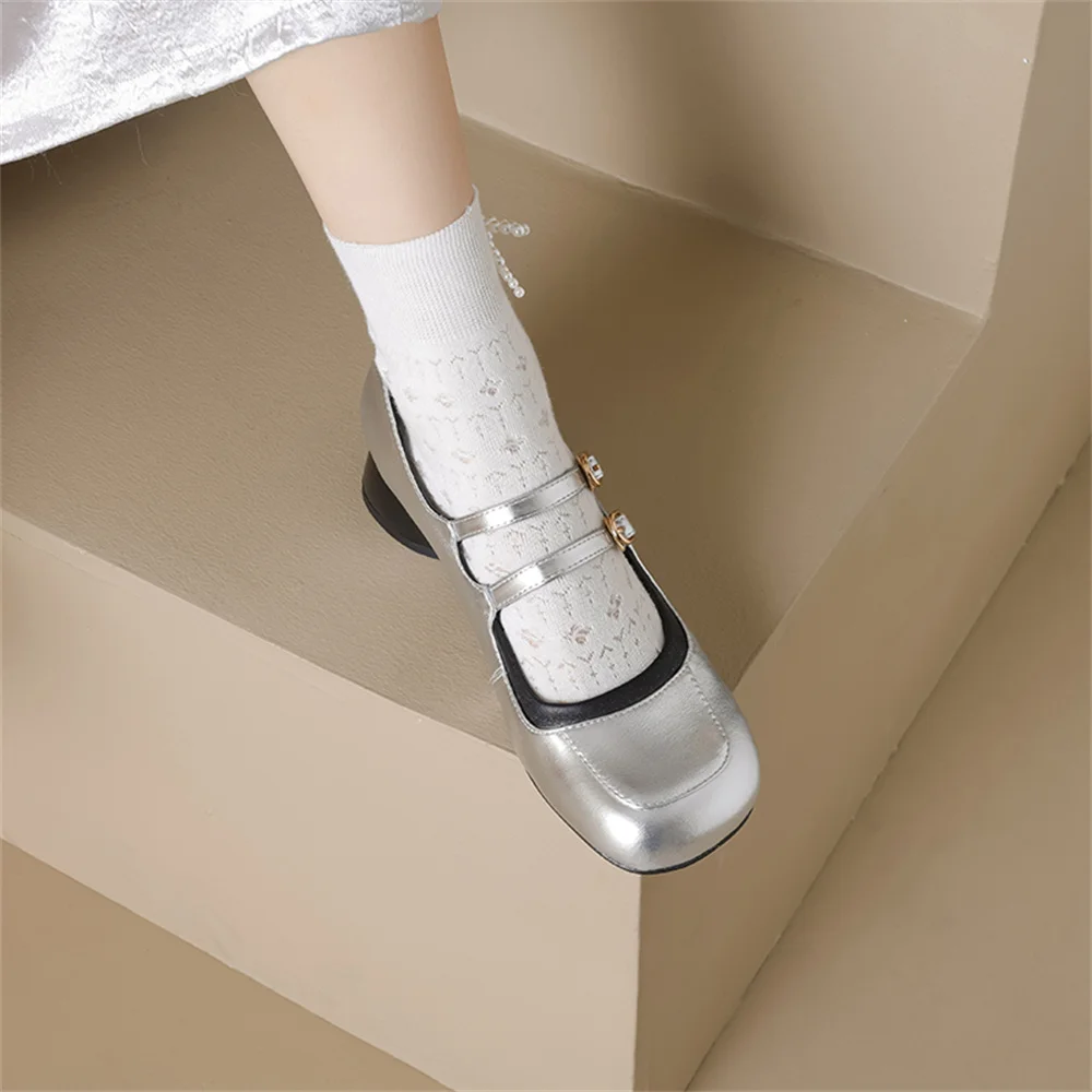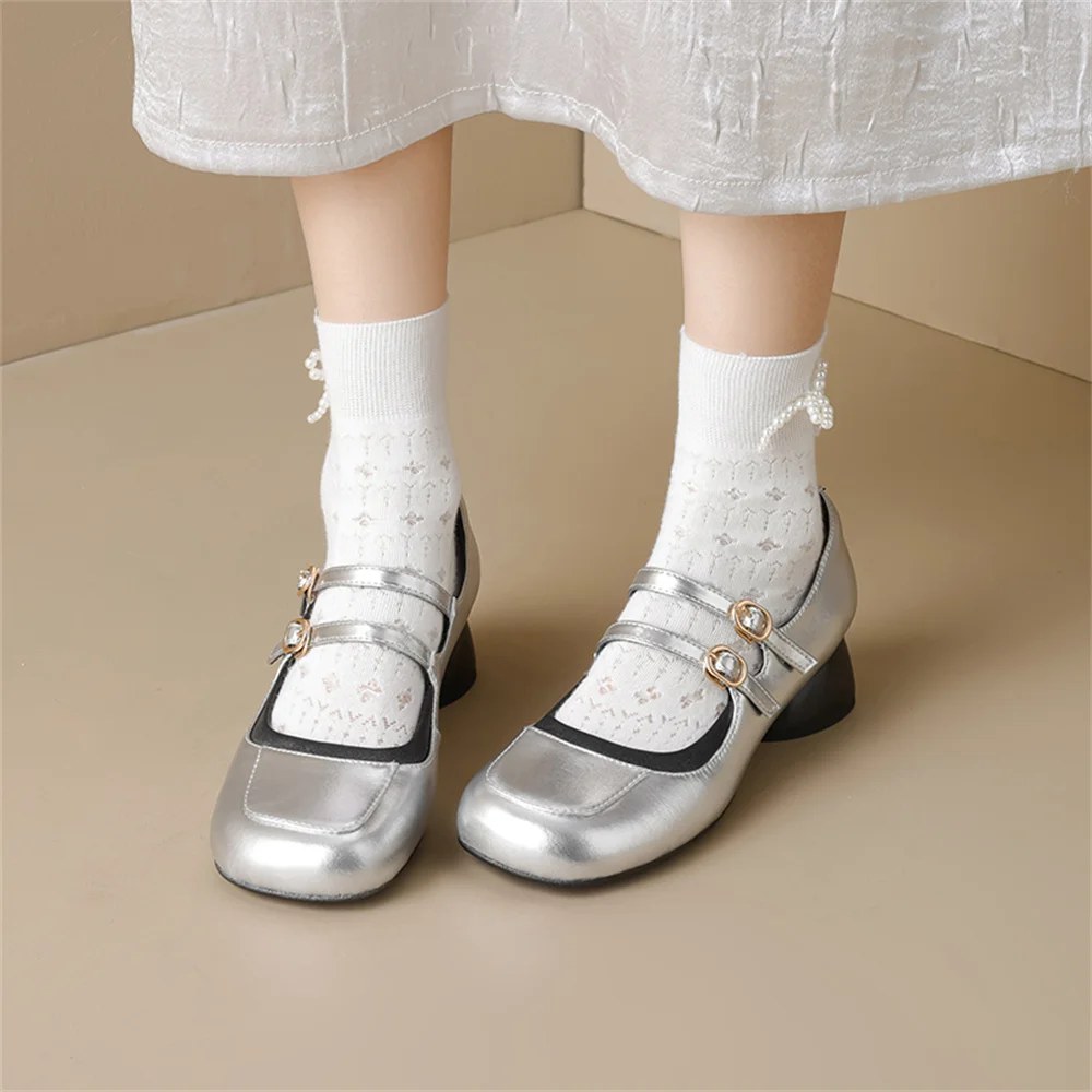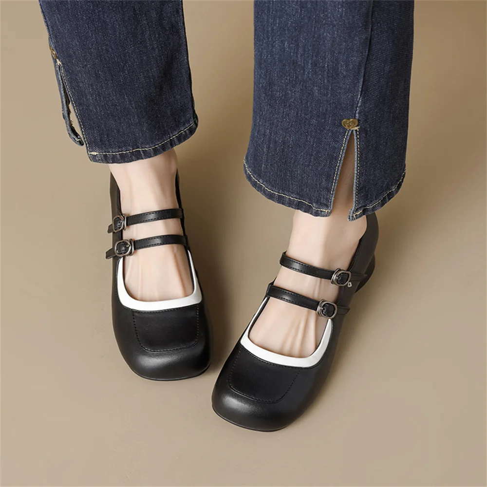 LBSFY - New Women's Mary Janes Shoes High Quality Genuine Leather High Heels Dress Shoes Buckle Strap Women's Party Shoes