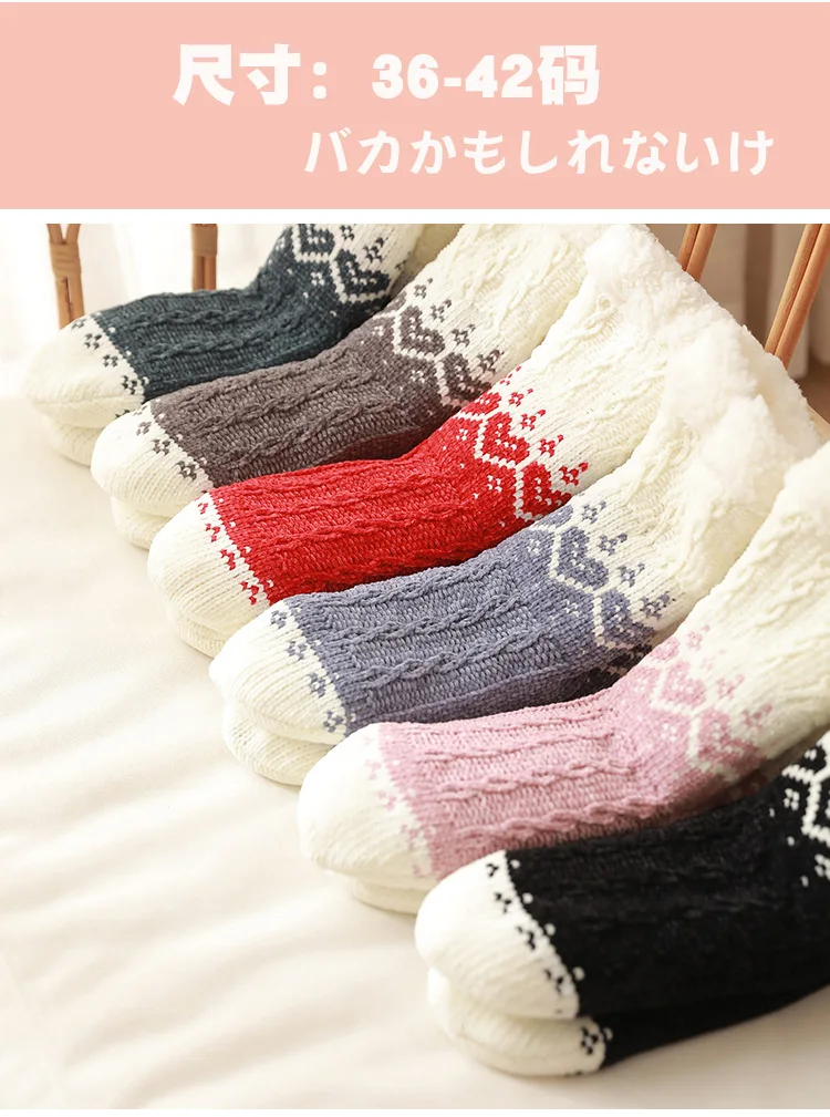 Lbsfy New Women's Winter Thickened Floor Socks Woven Thermal Cashmere Socks Love Heart Carpet Home Plus Socks Velvet Sleep Socks
