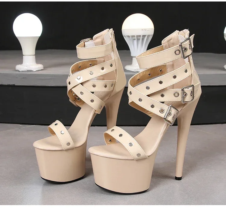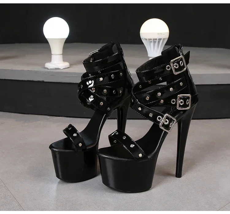 Lbsfy Nightclub Pole Dancing Platform Shoes Women 16.5CM Open Toe Belt Buckle Sandals Rivet Ankle Strap Party High Heels Female
