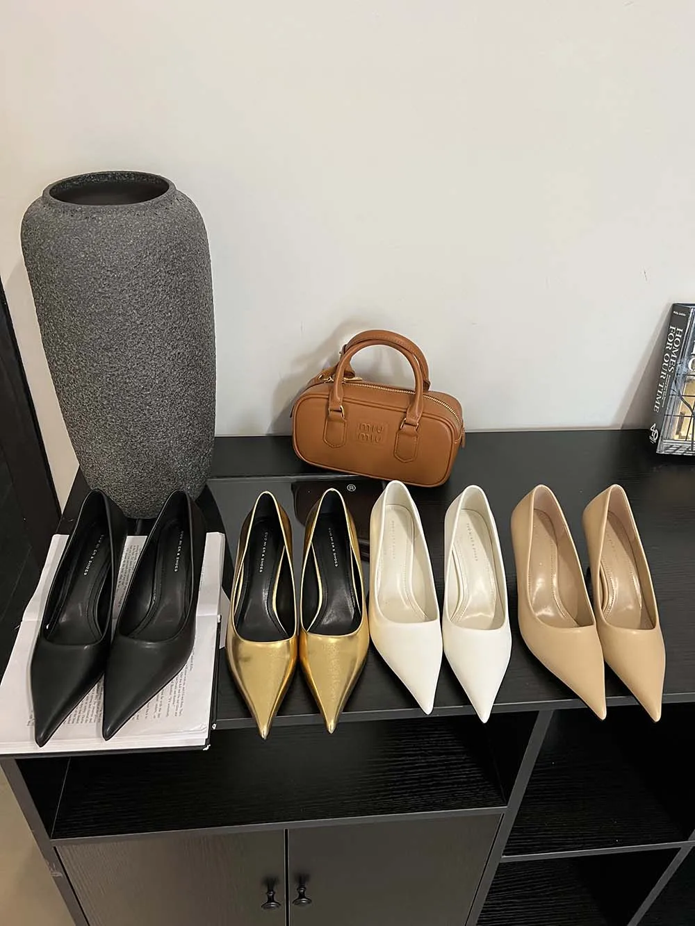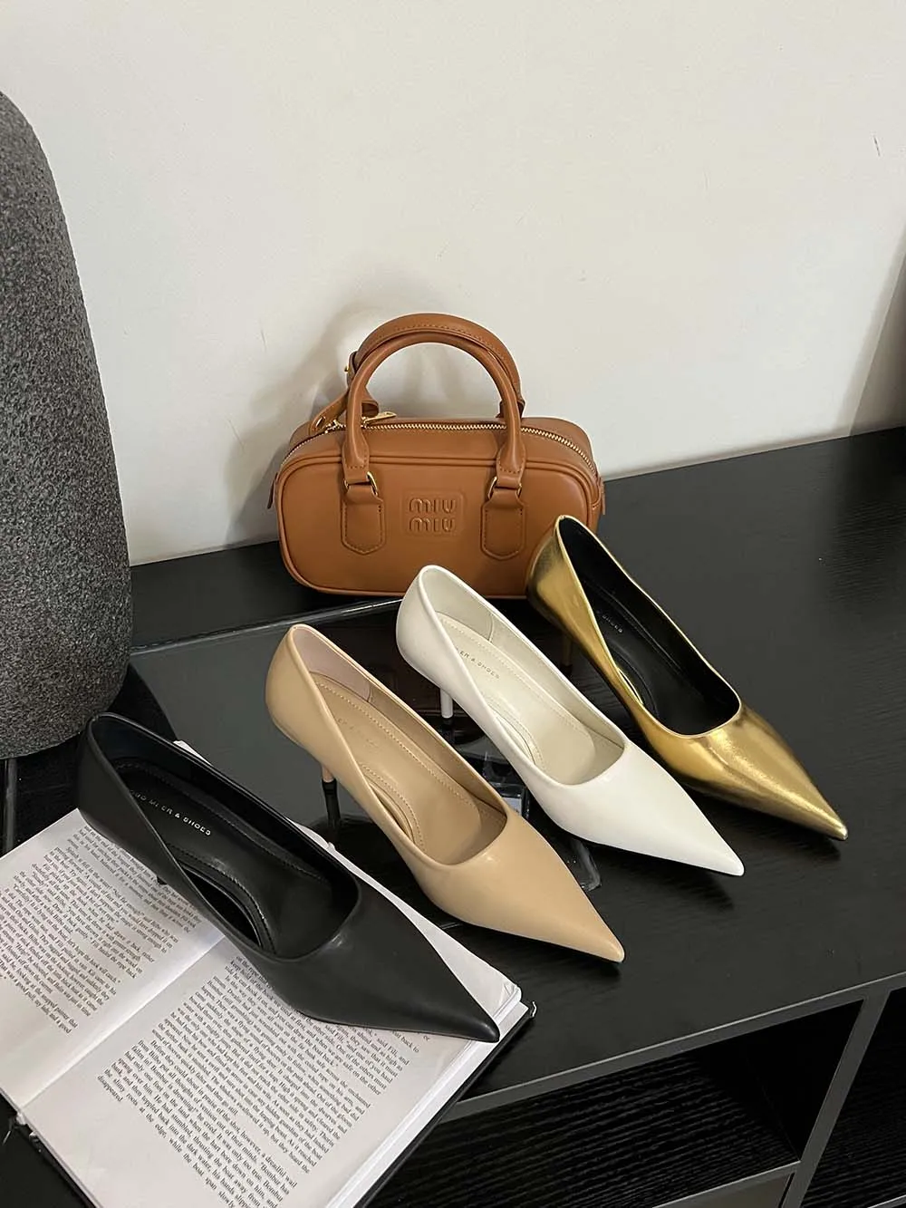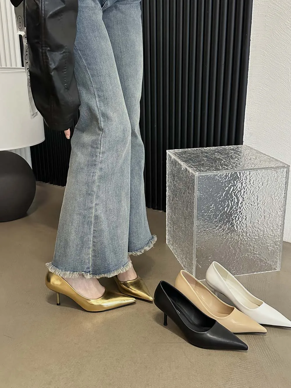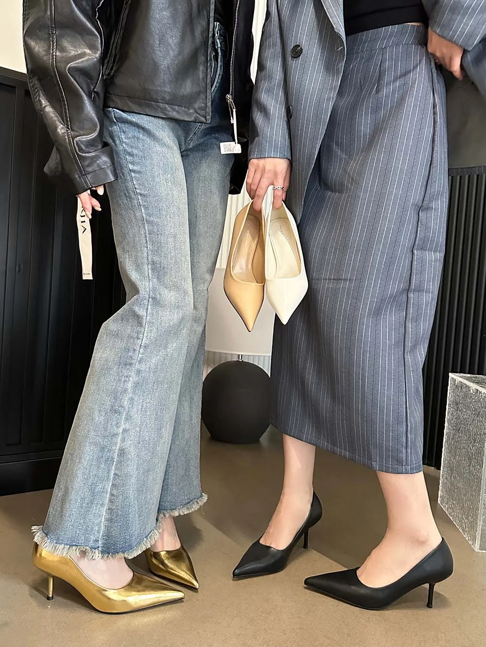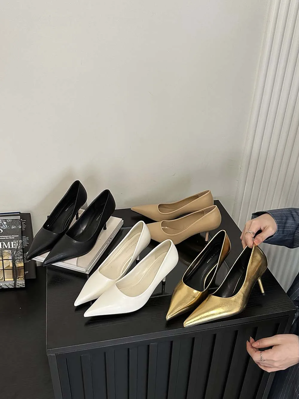 LBSFY - Office Pumps For Women Pointed Toe Shallow Slip On Thin High Heels Black White Gold Beige Stiletto Party Pumps Dress Shoes 39