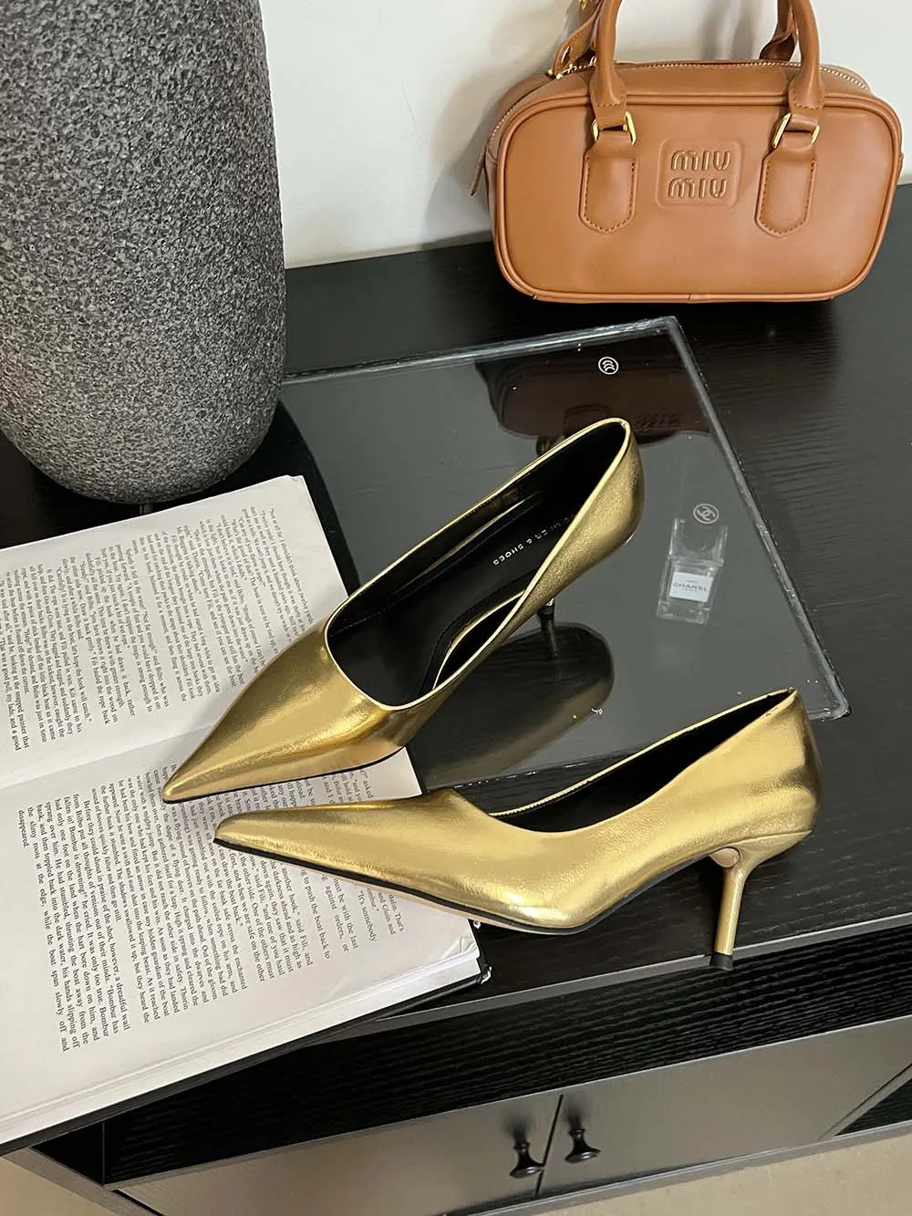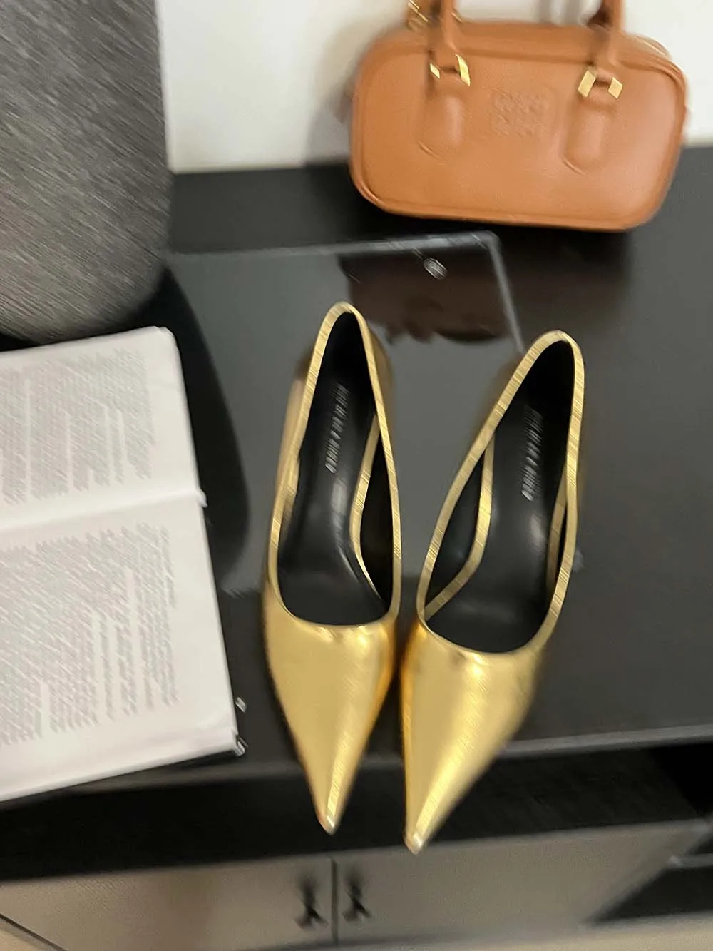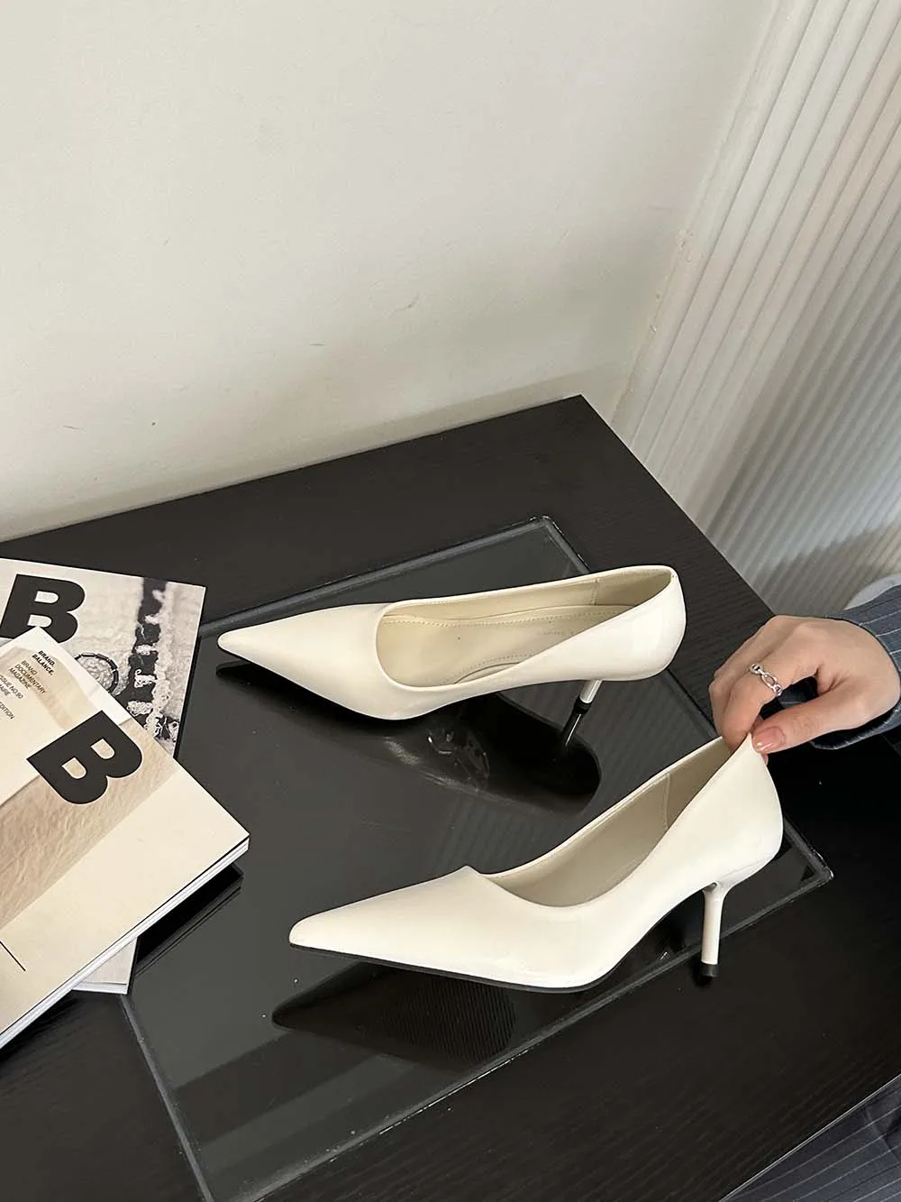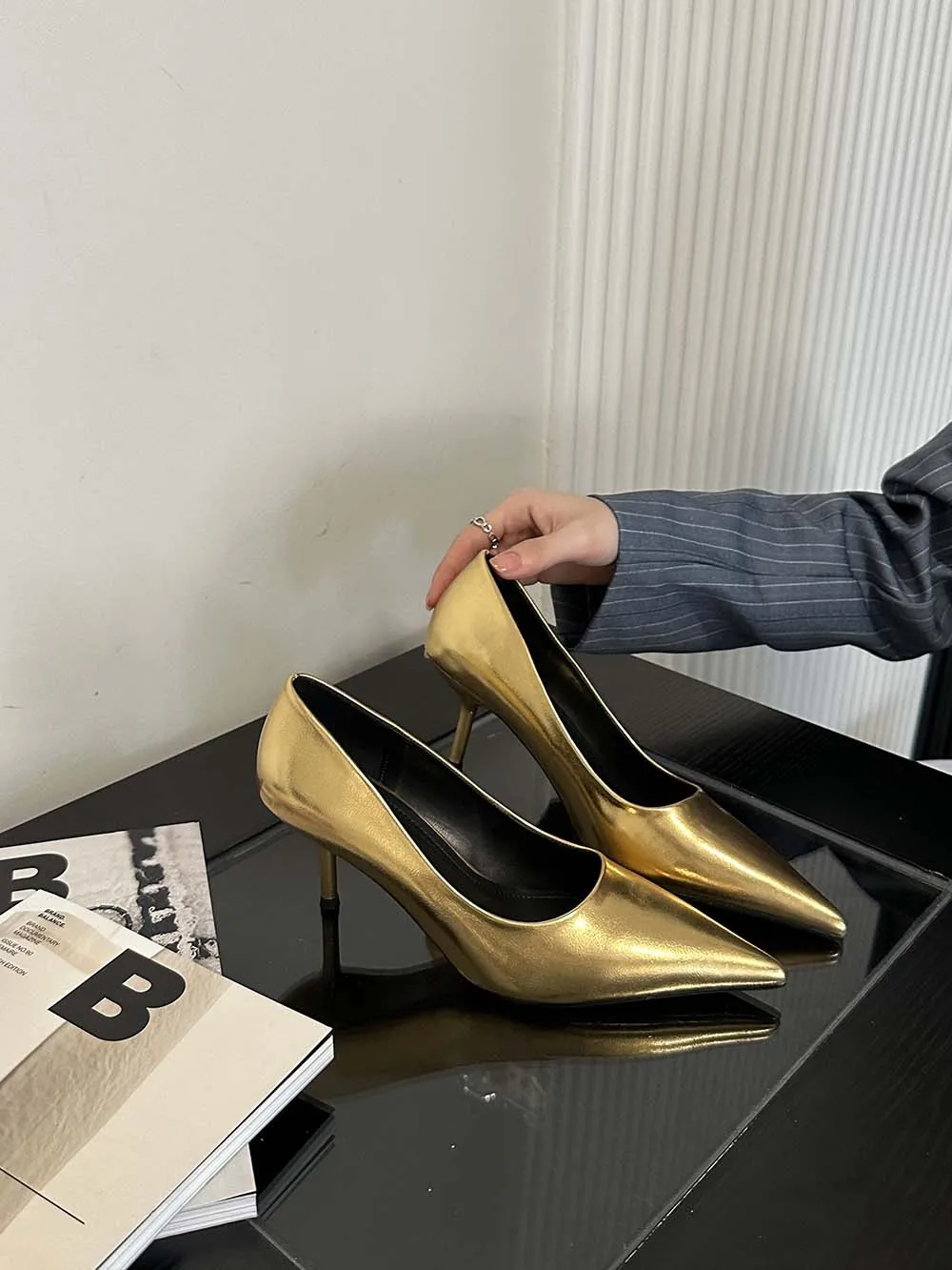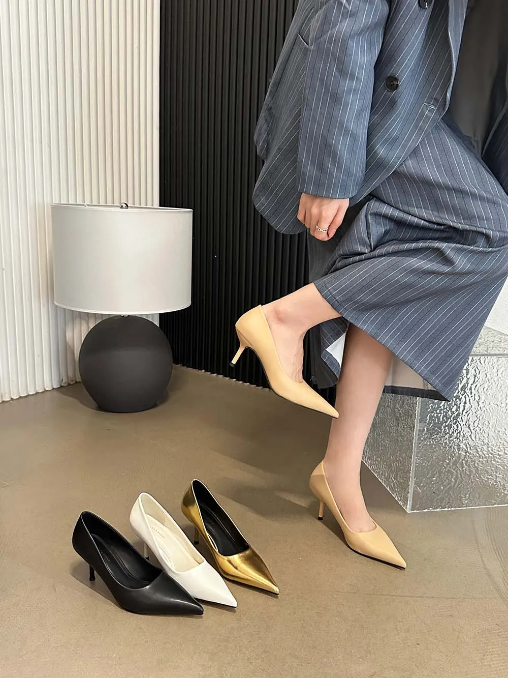 LBSFY - Office Pumps For Women Pointed Toe Shallow Slip On Thin High Heels Black White Gold Beige Stiletto Party Pumps Dress Shoes 39