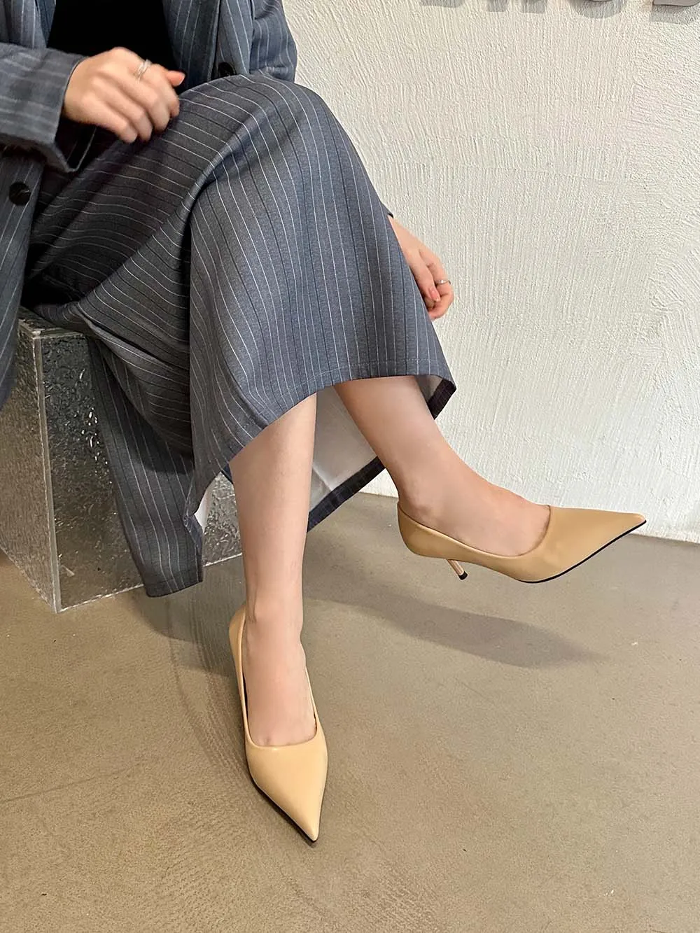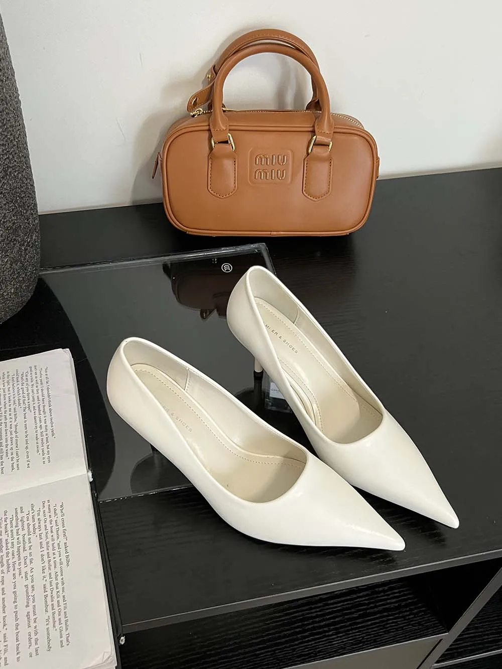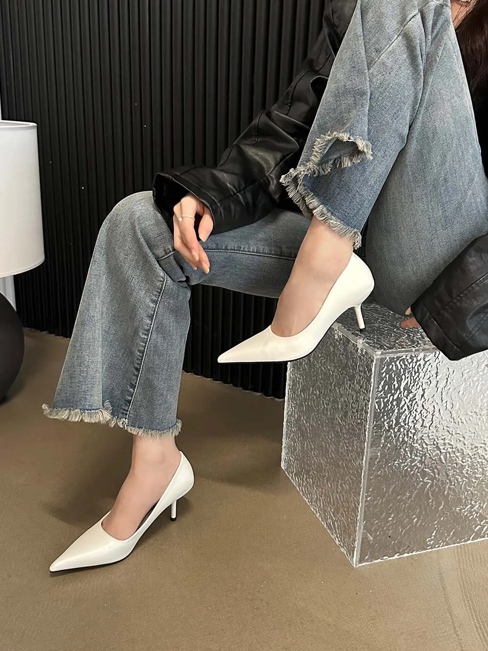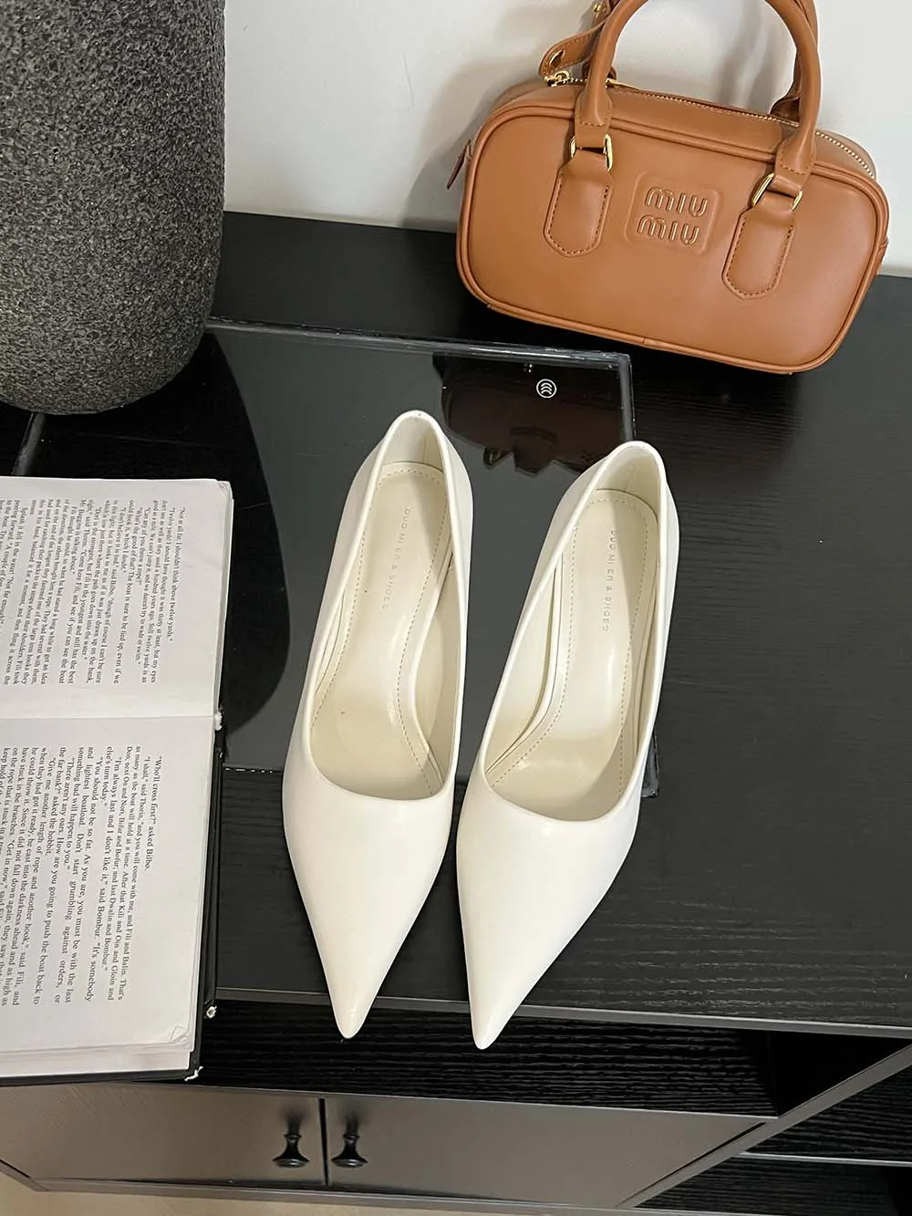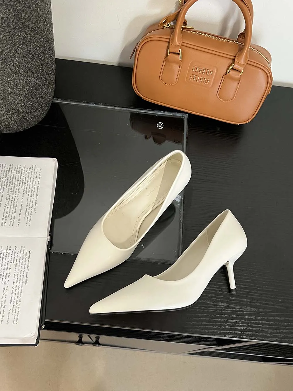 LBSFY - Office Pumps For Women Pointed Toe Shallow Slip On Thin High Heels Black White Gold Beige Stiletto Party Pumps Dress Shoes 39