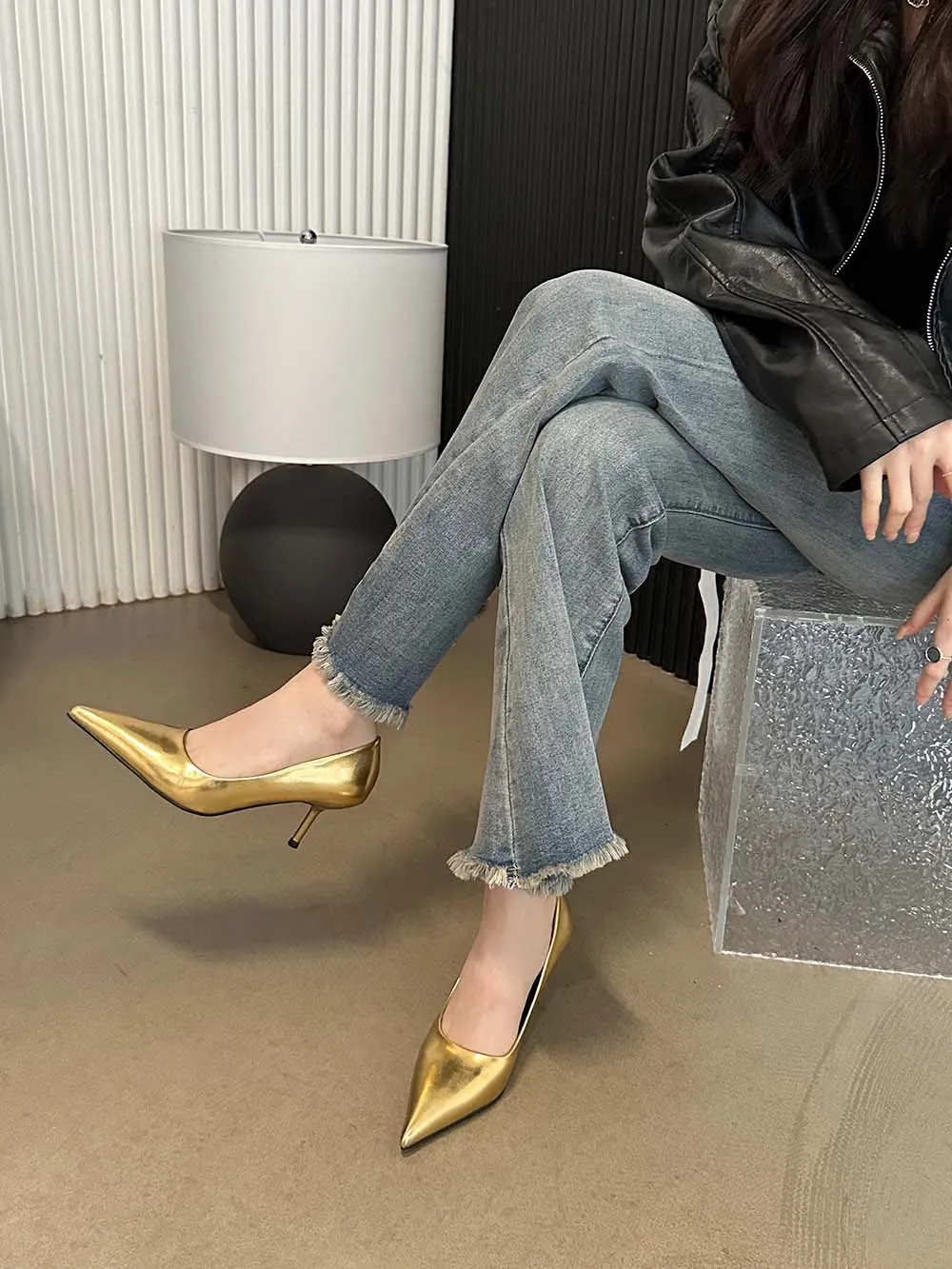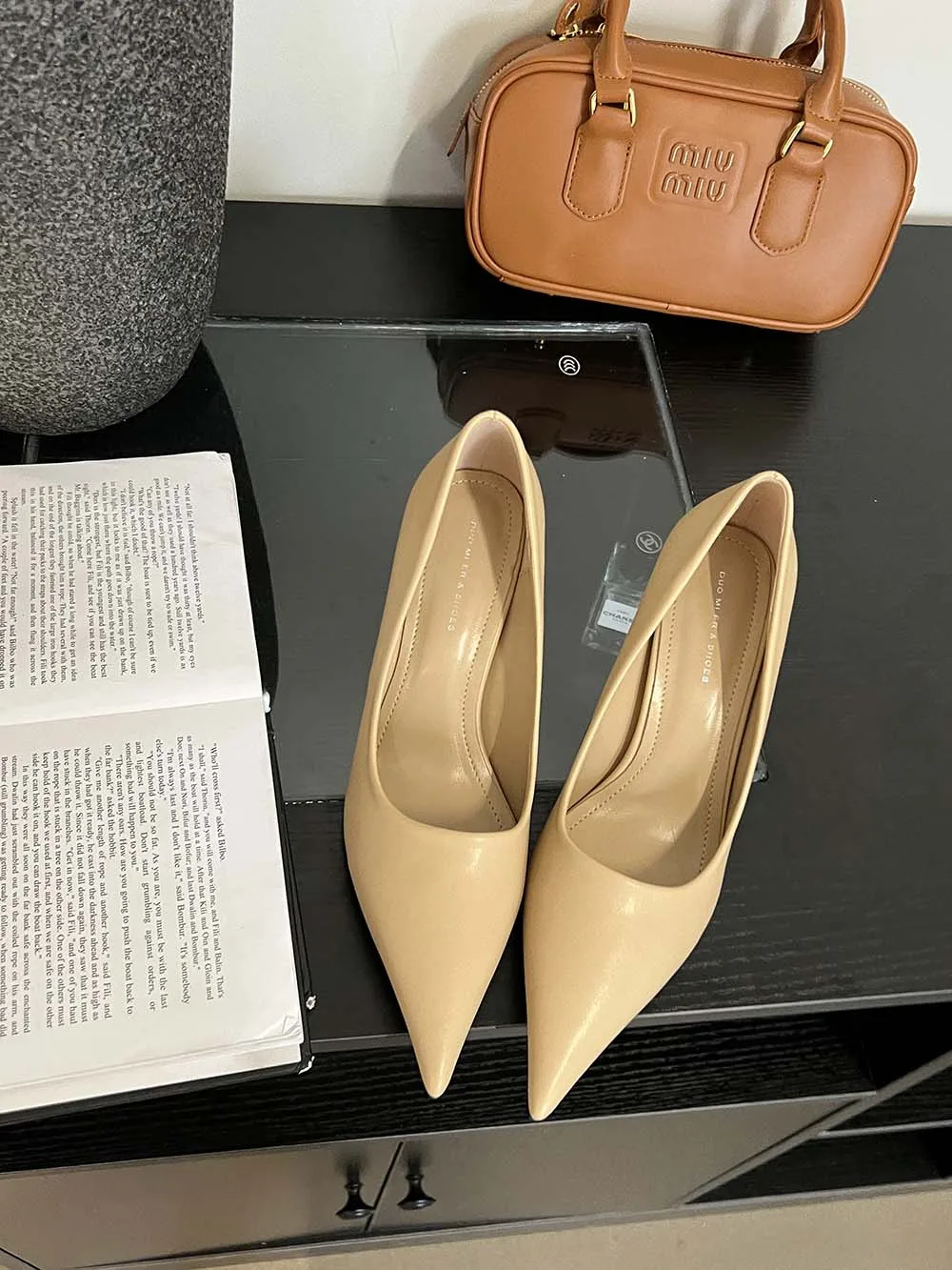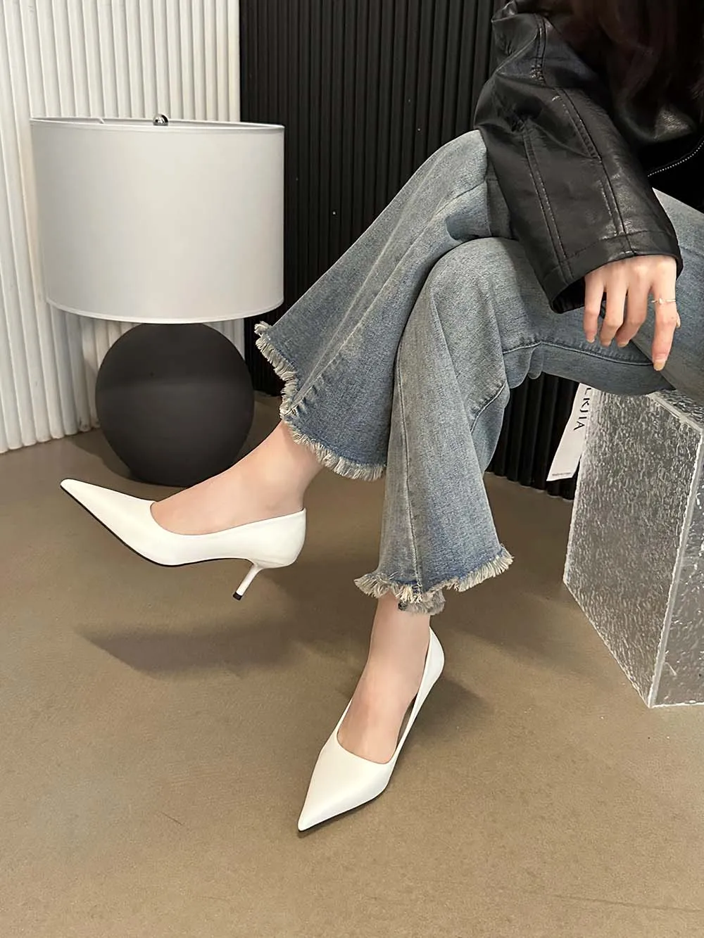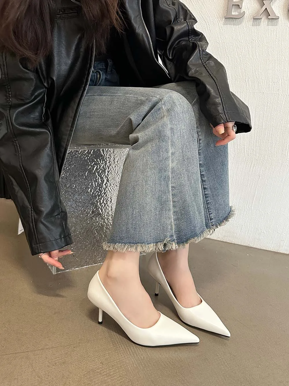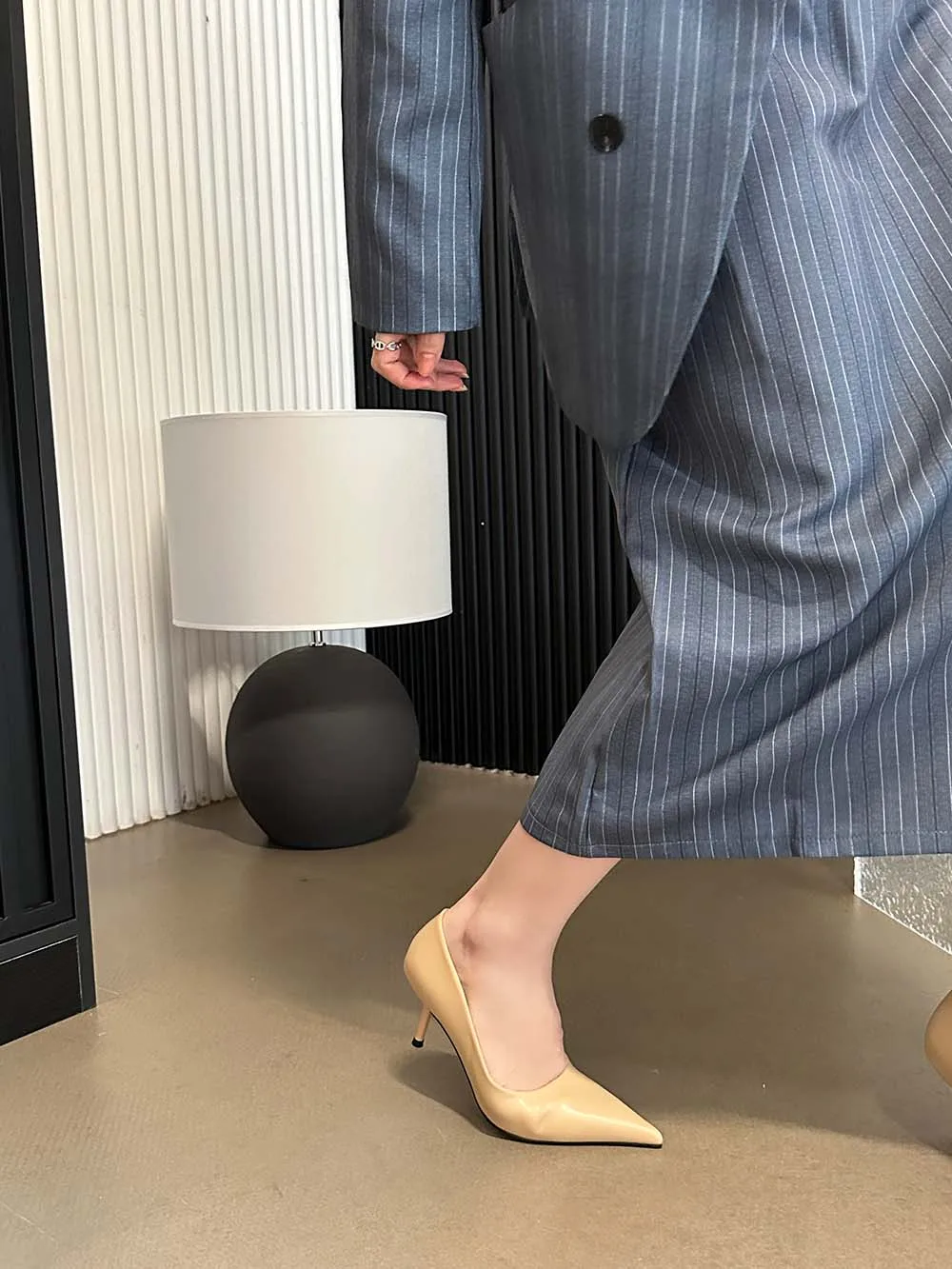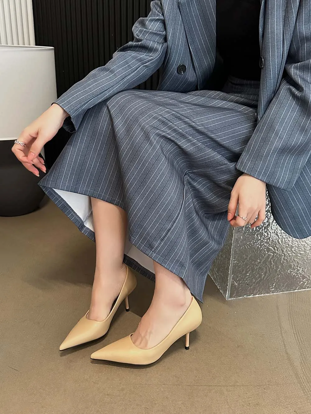 LBSFY - Office Pumps For Women Pointed Toe Shallow Slip On Thin High Heels Black White Gold Beige Stiletto Party Pumps Dress Shoes 39