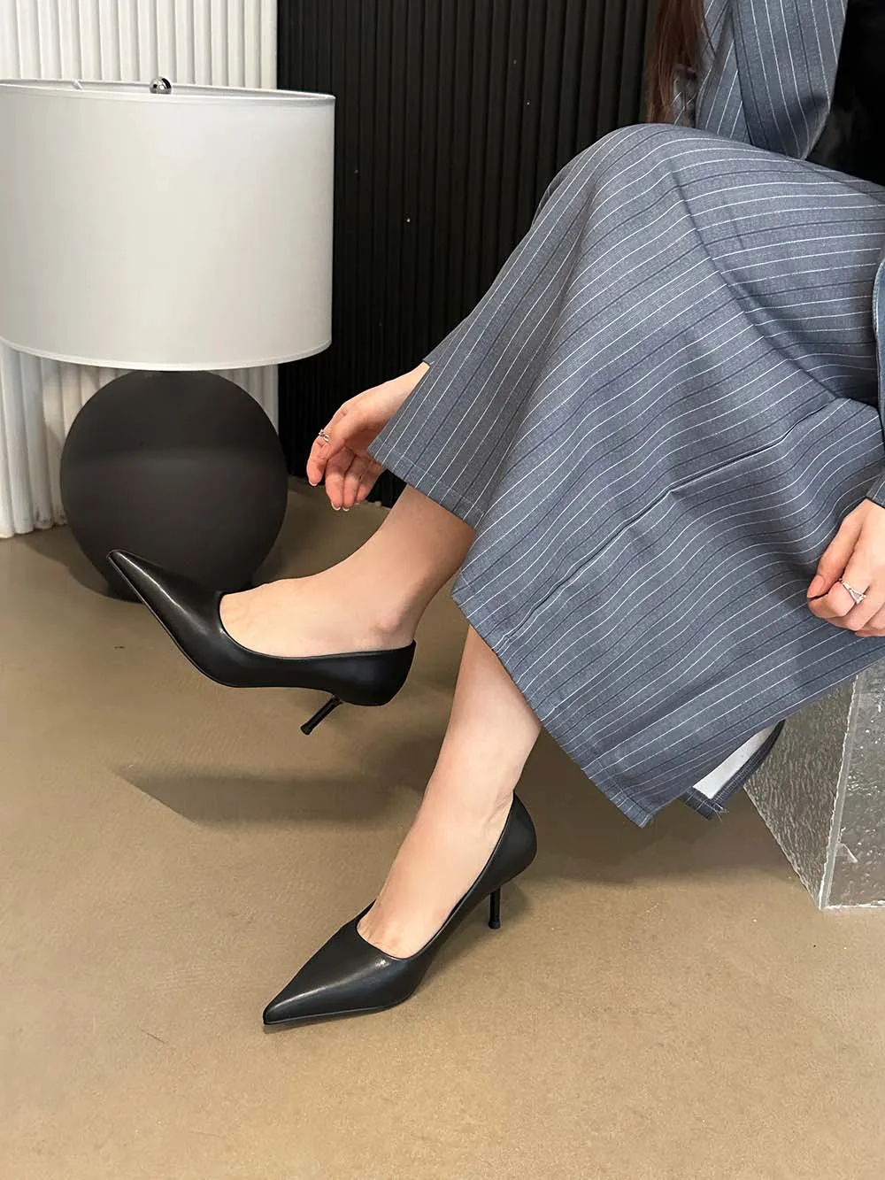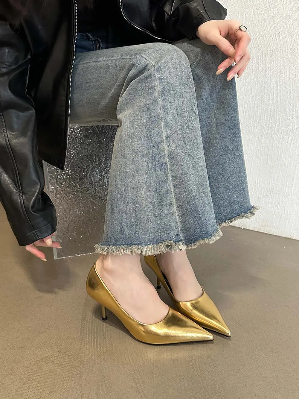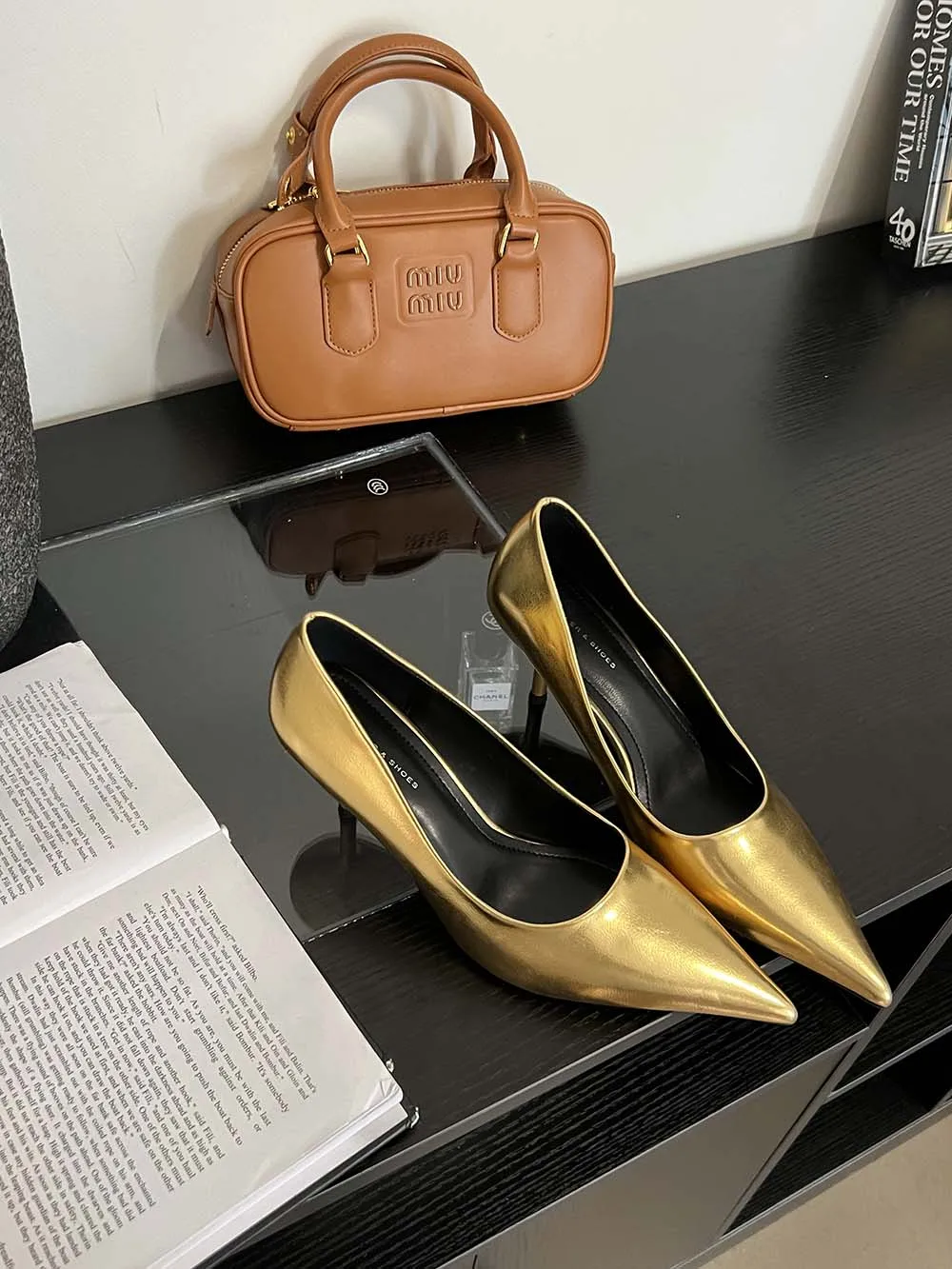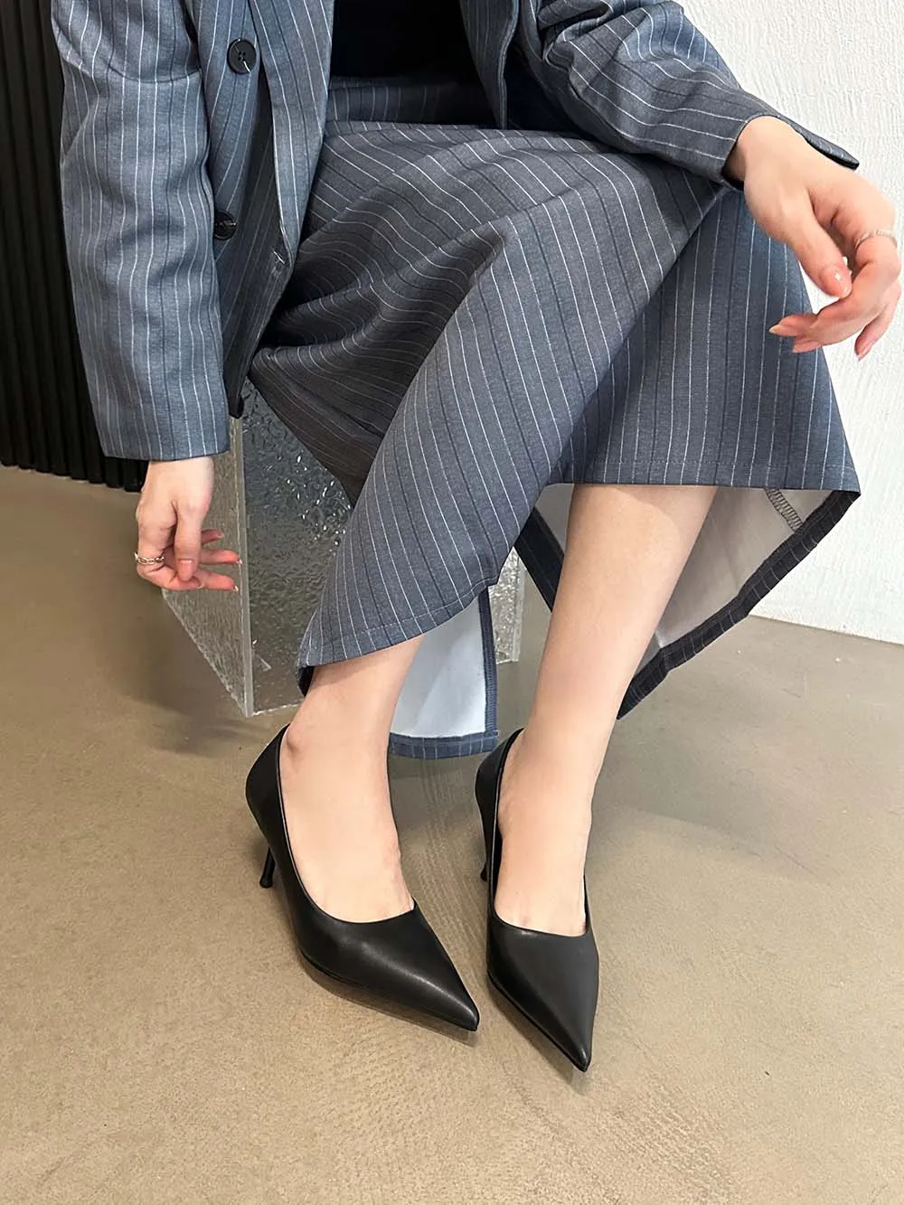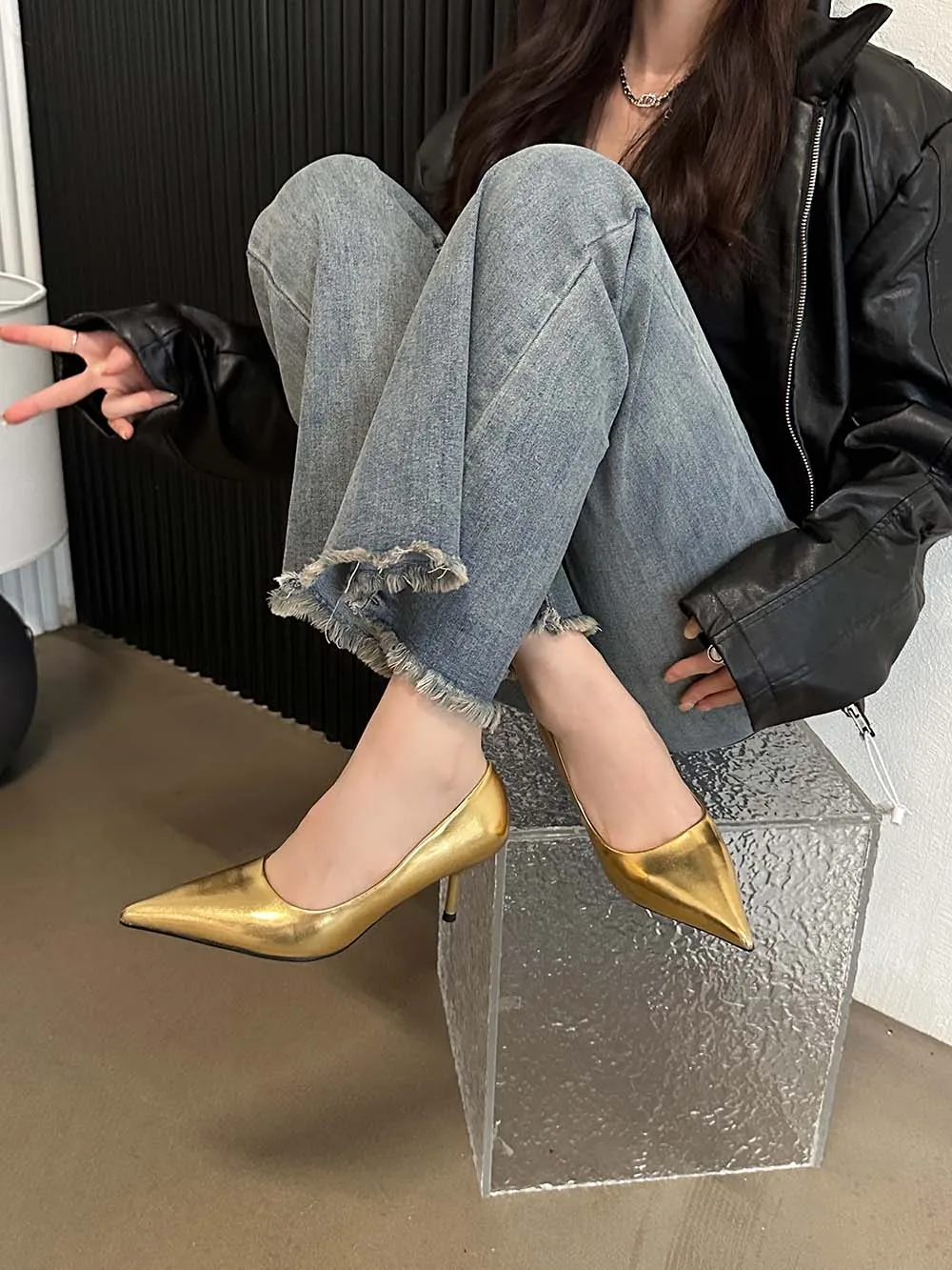 LBSFY - Office Pumps For Women Pointed Toe Shallow Slip On Thin High Heels Black White Gold Beige Stiletto Party Pumps Dress Shoes 39