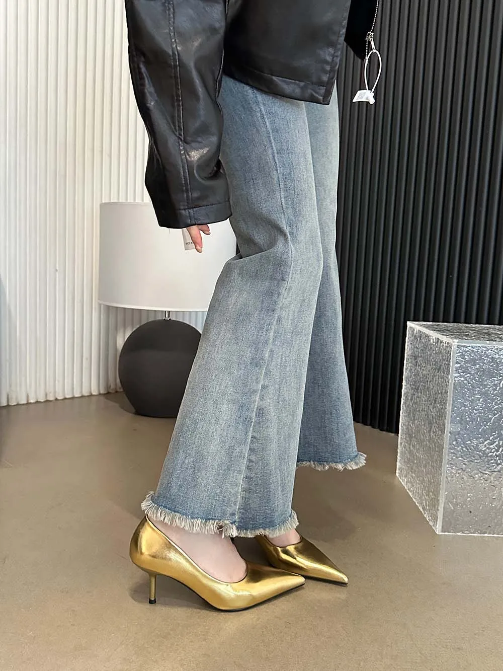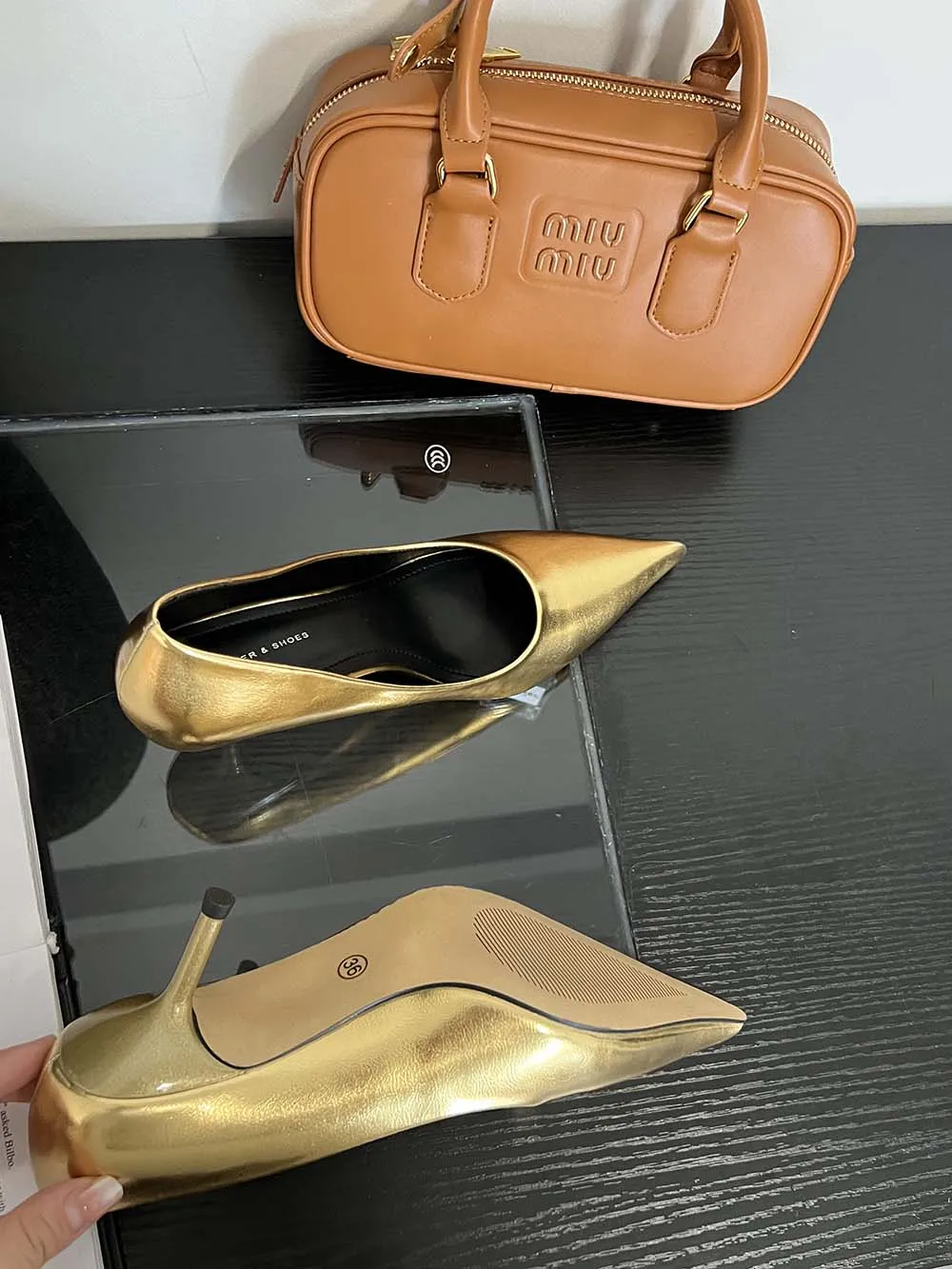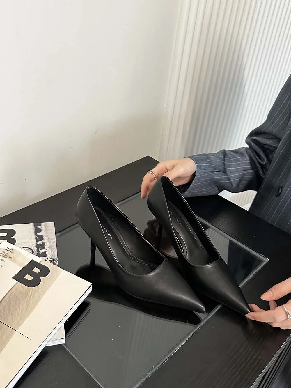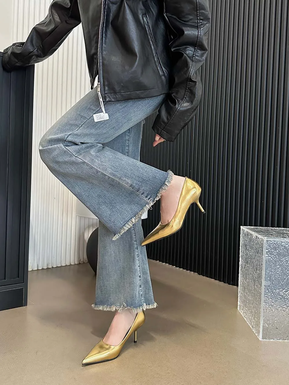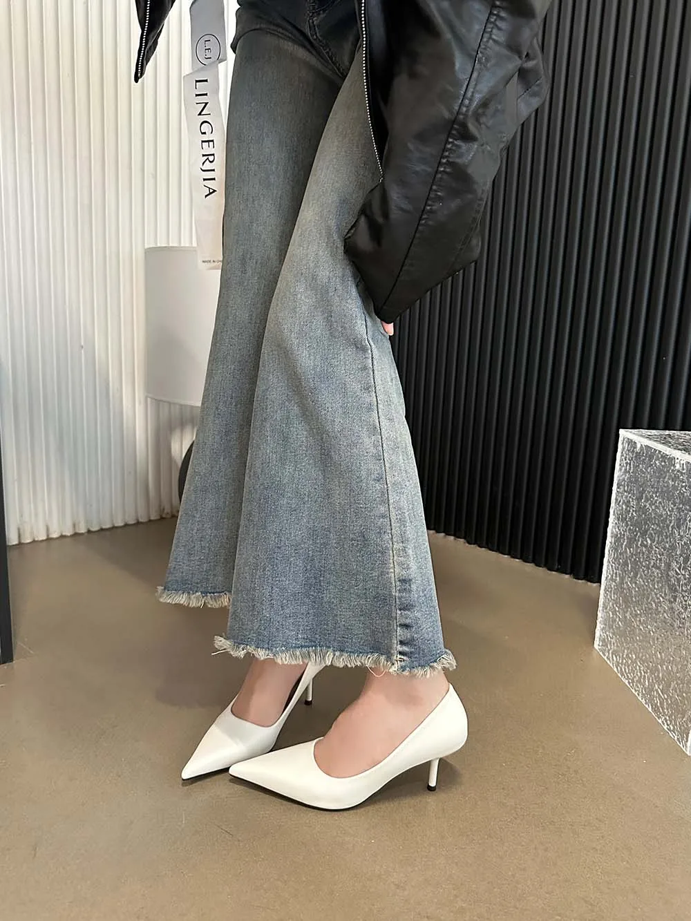 LBSFY - Office Pumps For Women Pointed Toe Shallow Slip On Thin High Heels Black White Gold Beige Stiletto Party Pumps Dress Shoes 39