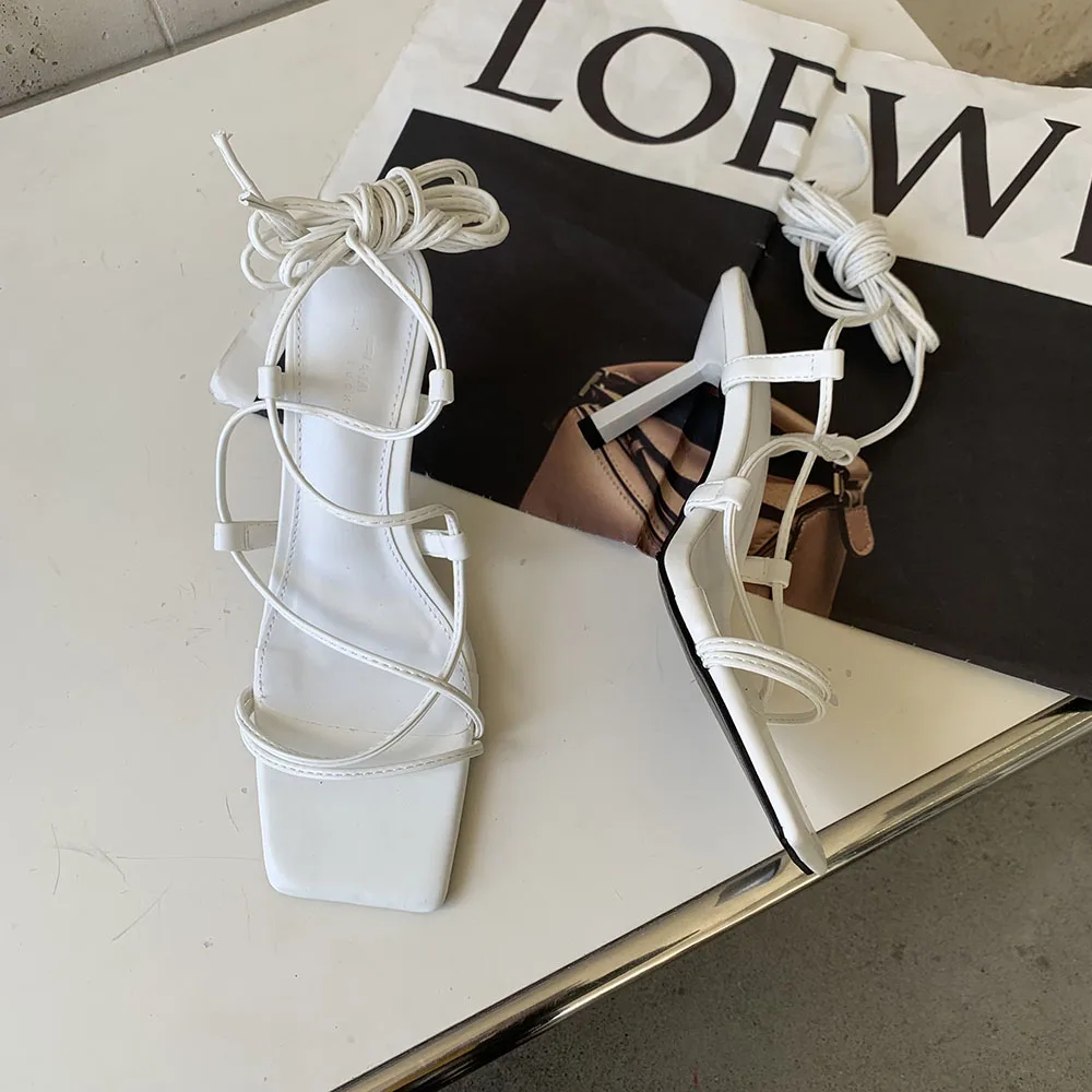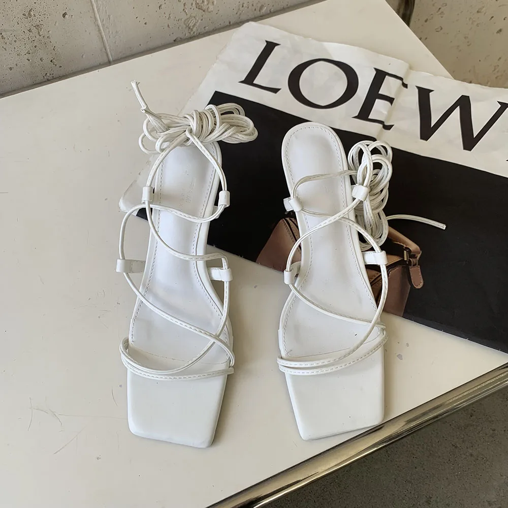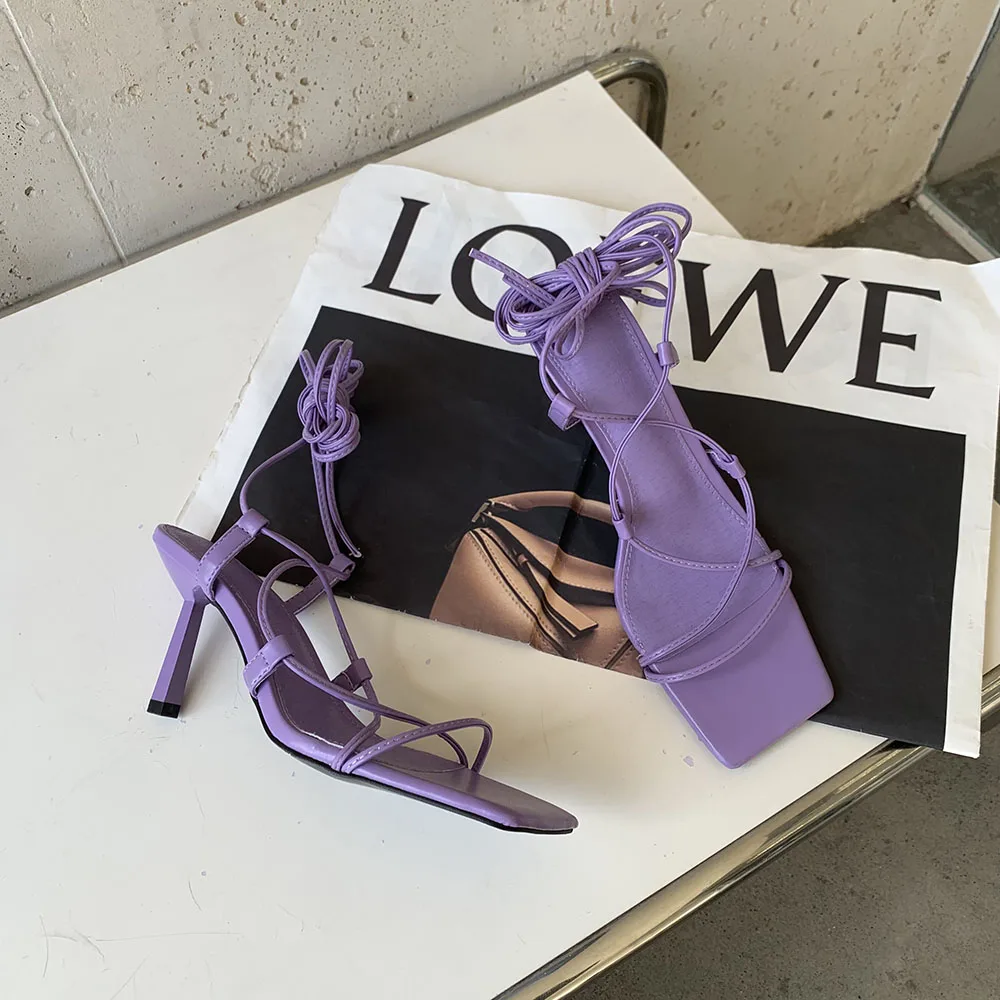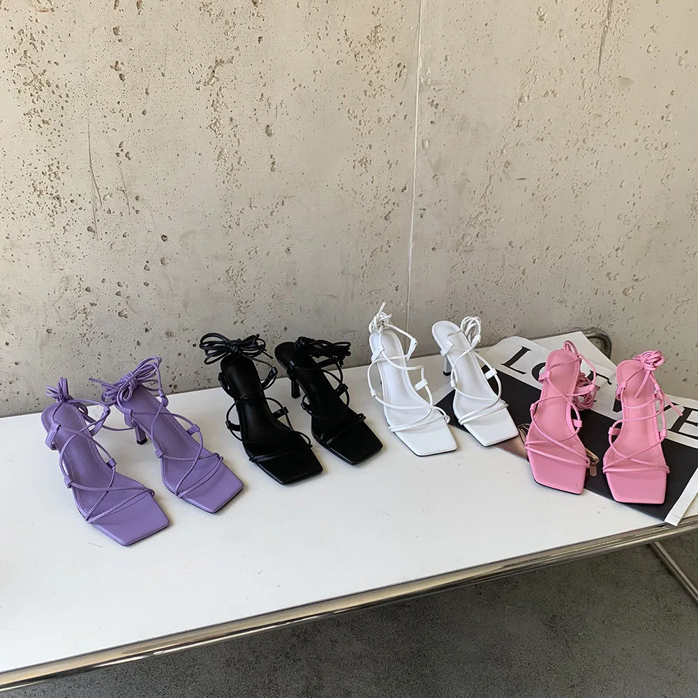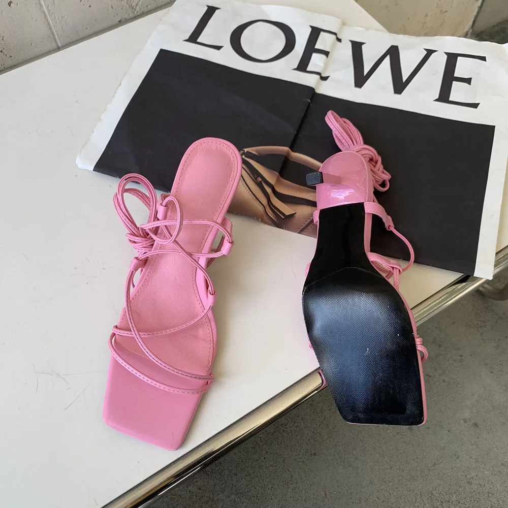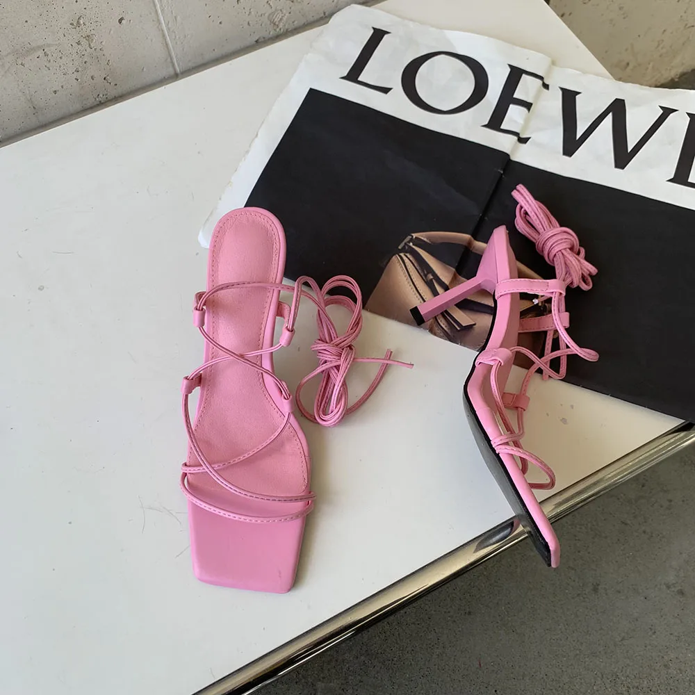 LBSFY - Open Toe Women Sandals 2024 New Arrivals Fashion Party Pumps Thin High Heels Cross Strap Lace Up Candy Color Sexy Slides Mules