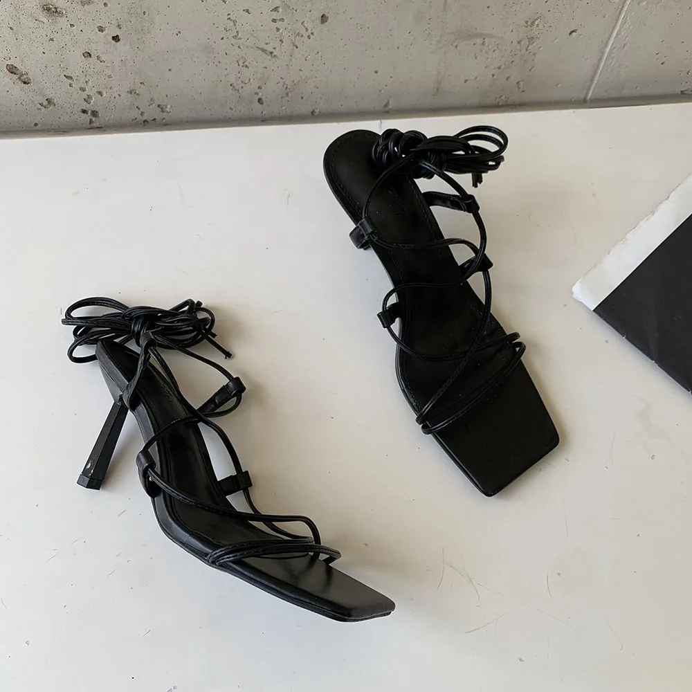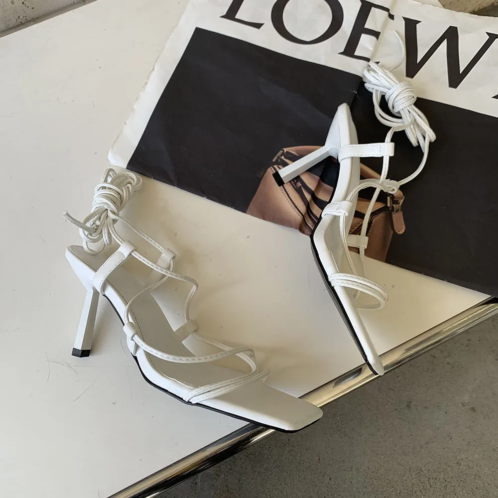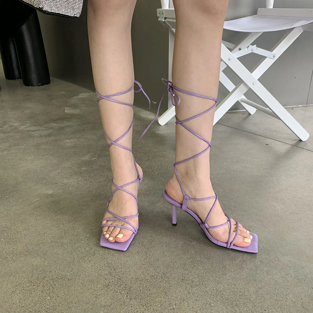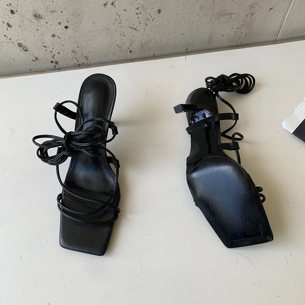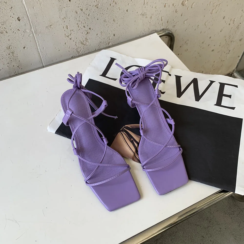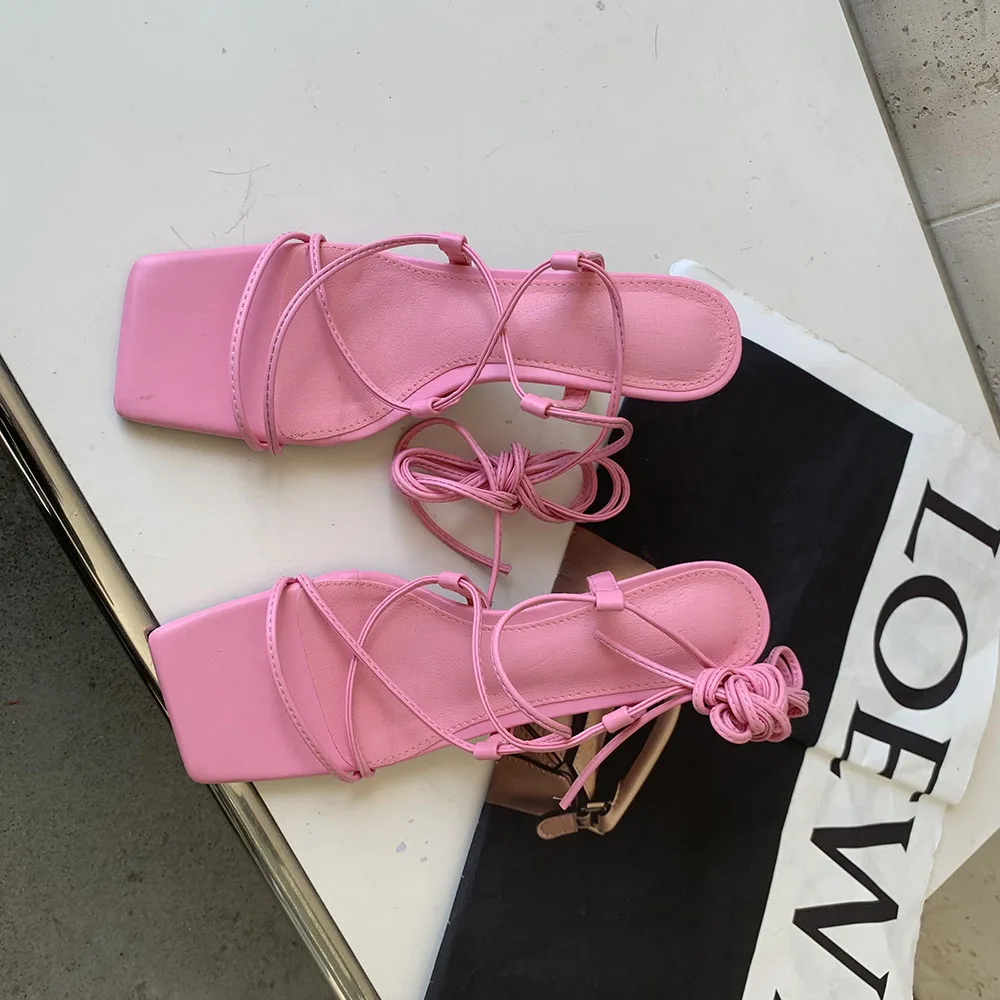 LBSFY - Open Toe Women Sandals 2024 New Arrivals Fashion Party Pumps Thin High Heels Cross Strap Lace Up Candy Color Sexy Slides Mules
