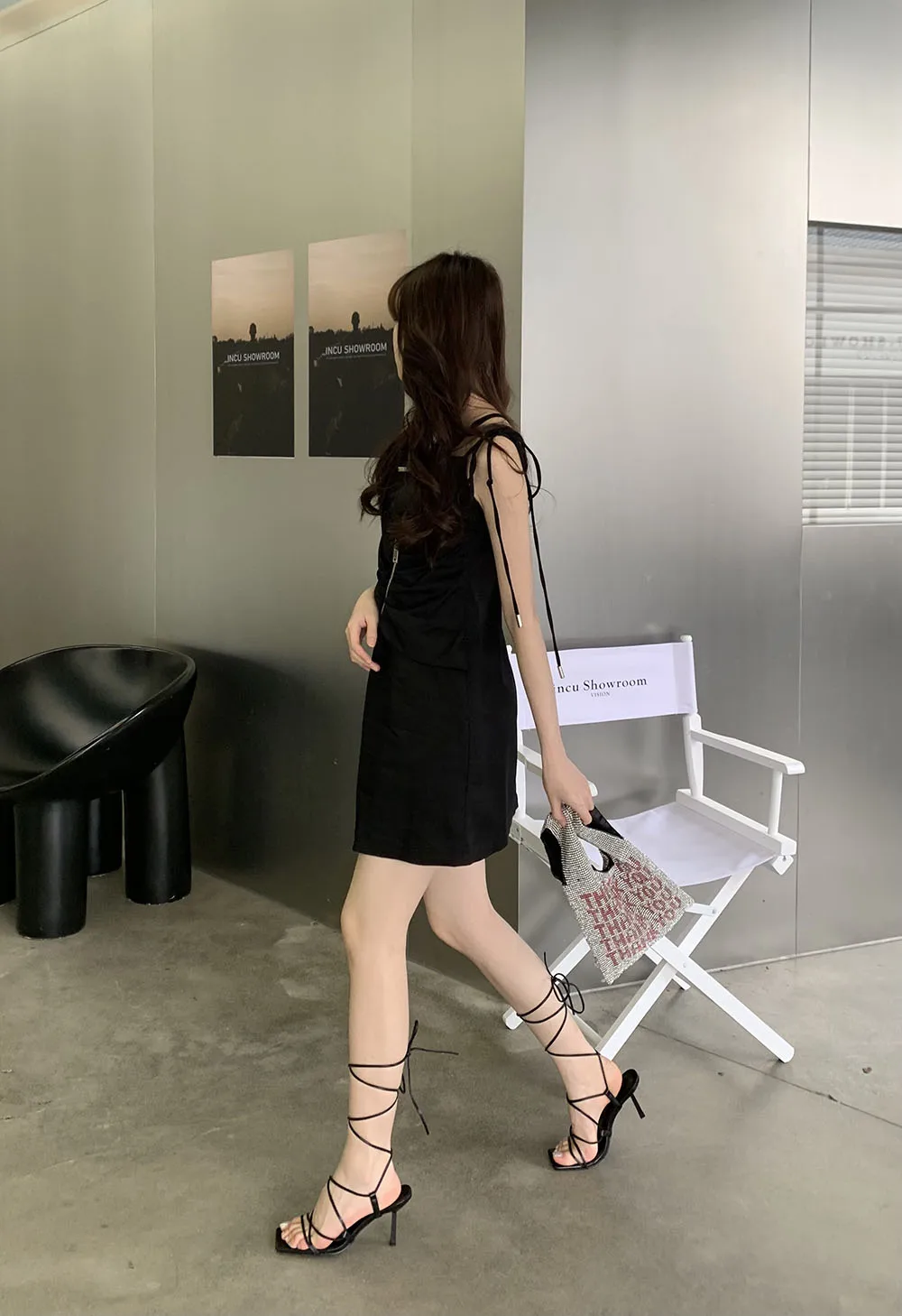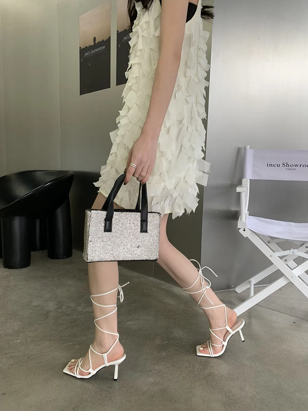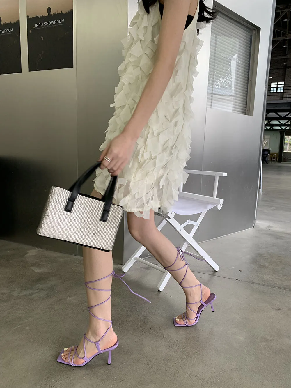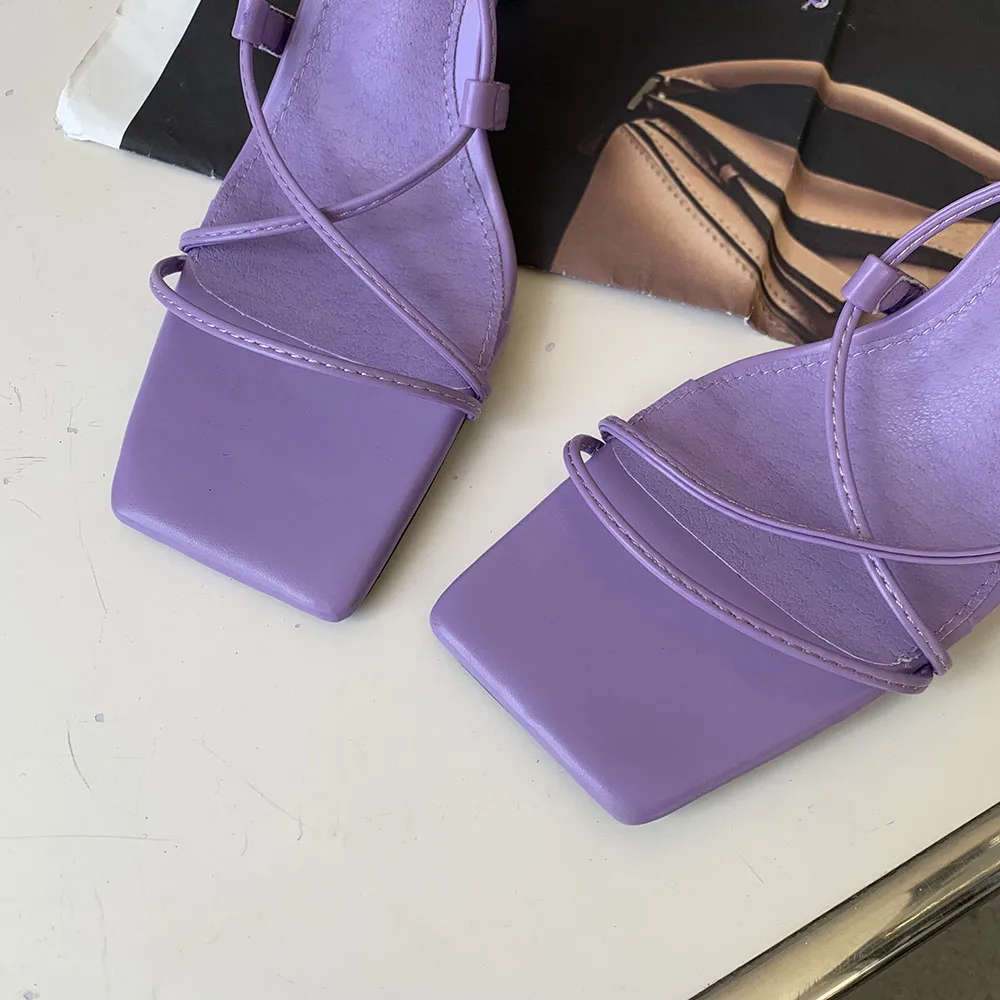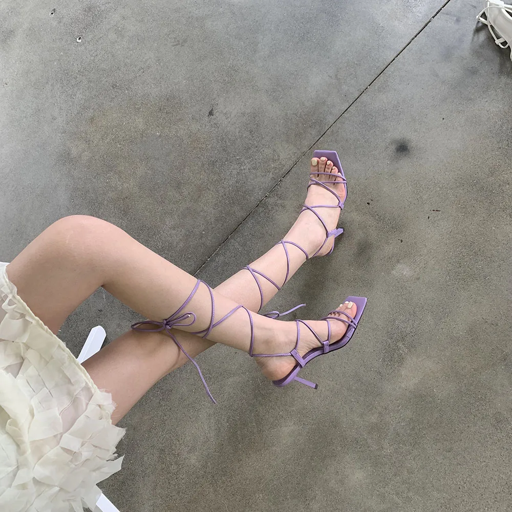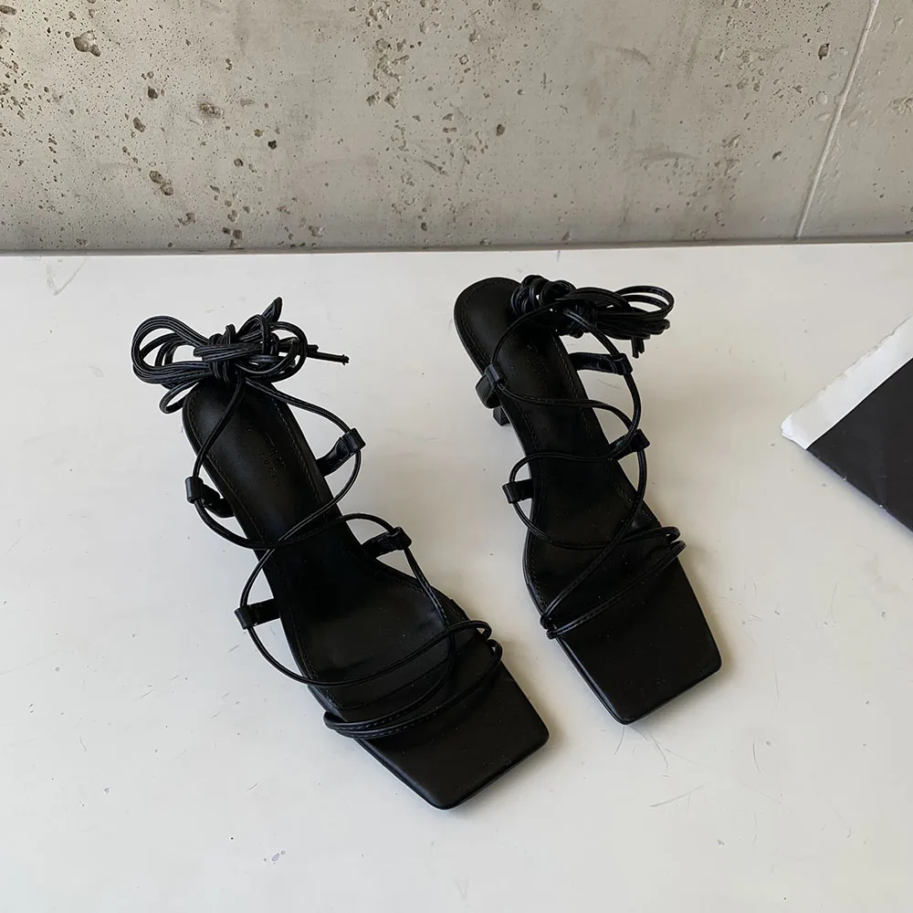 LBSFY - Open Toe Women Sandals 2024 New Arrivals Fashion Party Pumps Thin High Heels Cross Strap Lace Up Candy Color Sexy Slides Mules