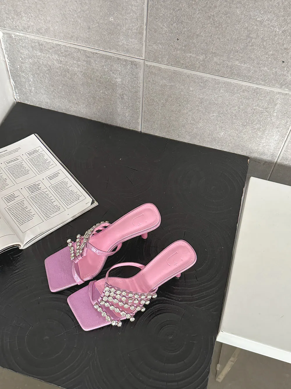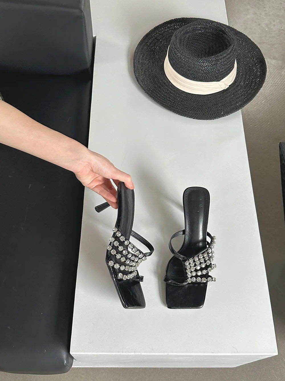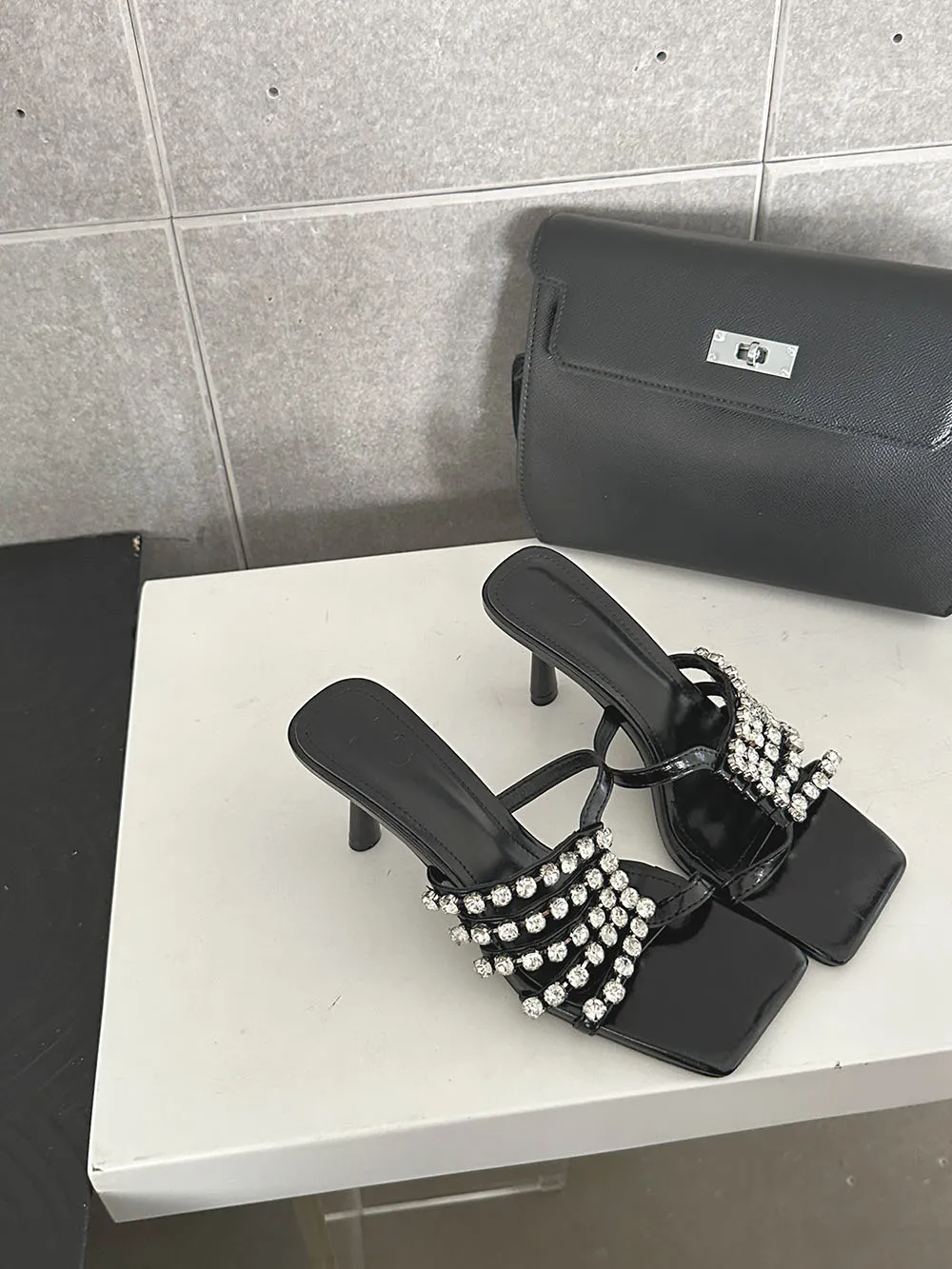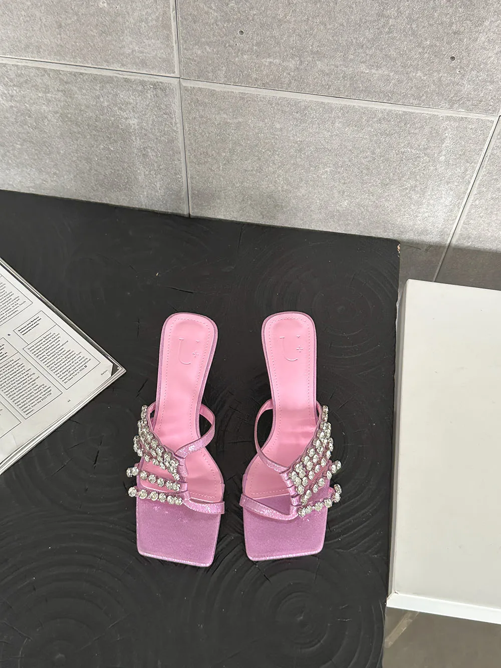 LBSFY - Open Toe Women Sandals Slides Slippers Summer Outside Mules Shoes Thin High Heels Party Pumps Dress Shoes Black Silver Pink 39