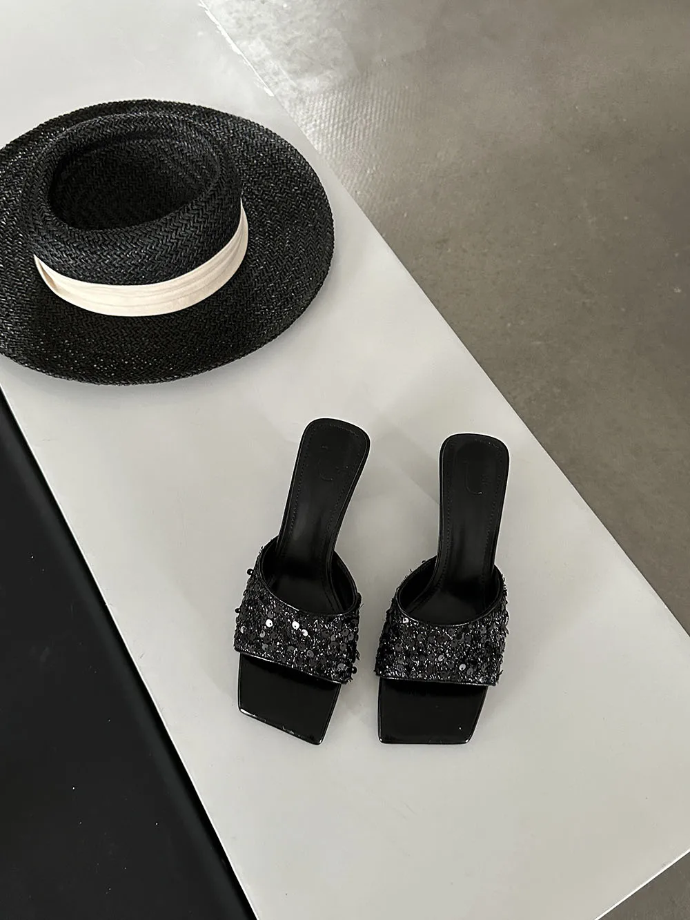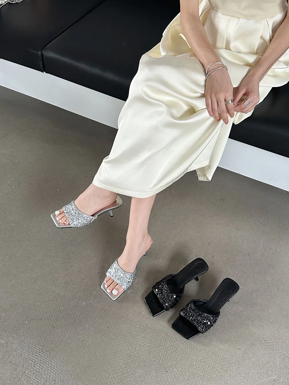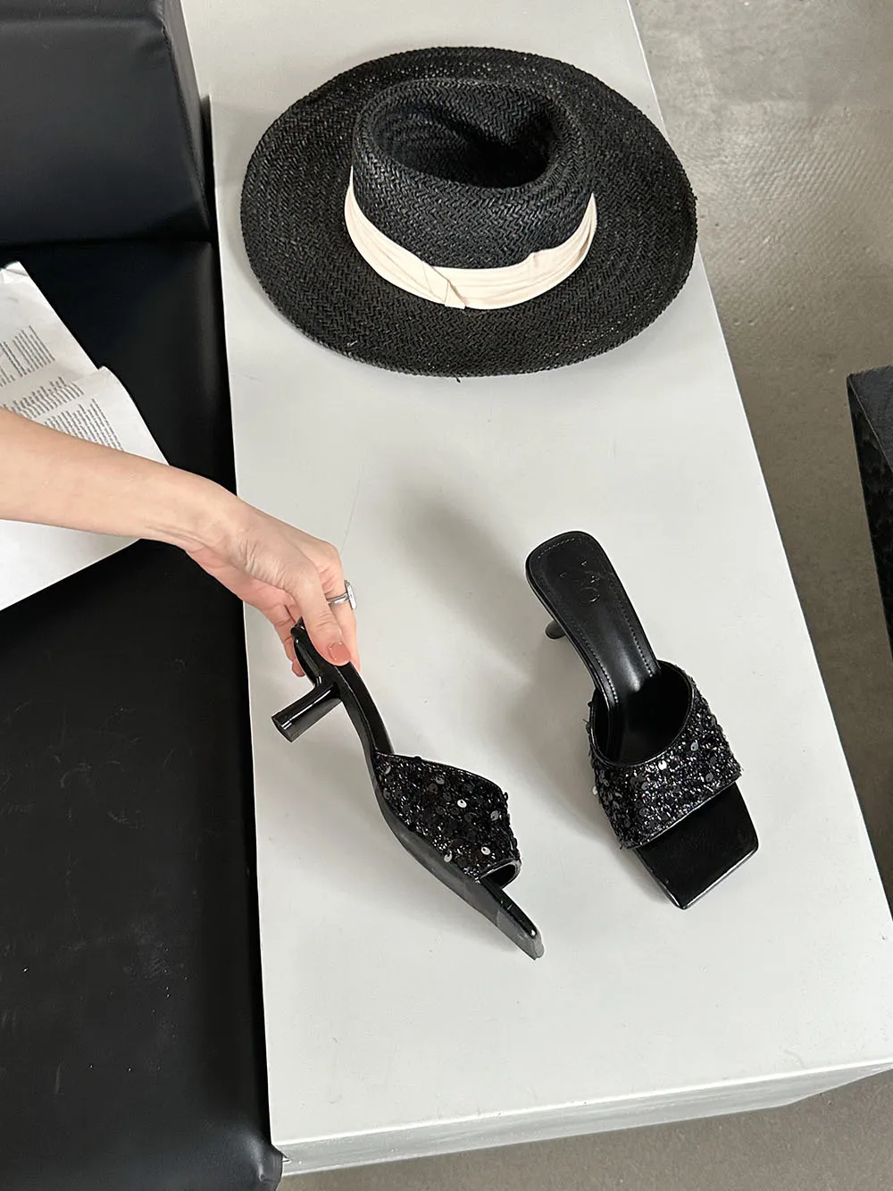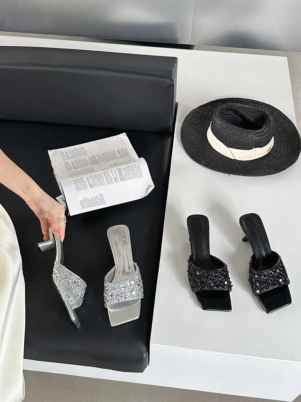 LBSFY - Open Toe Women Sandals Slides Summer Outside Mules Shoes Thin High Heels Party Pumps Size 35-39 Fashion Sexy Party Pumps 35-39