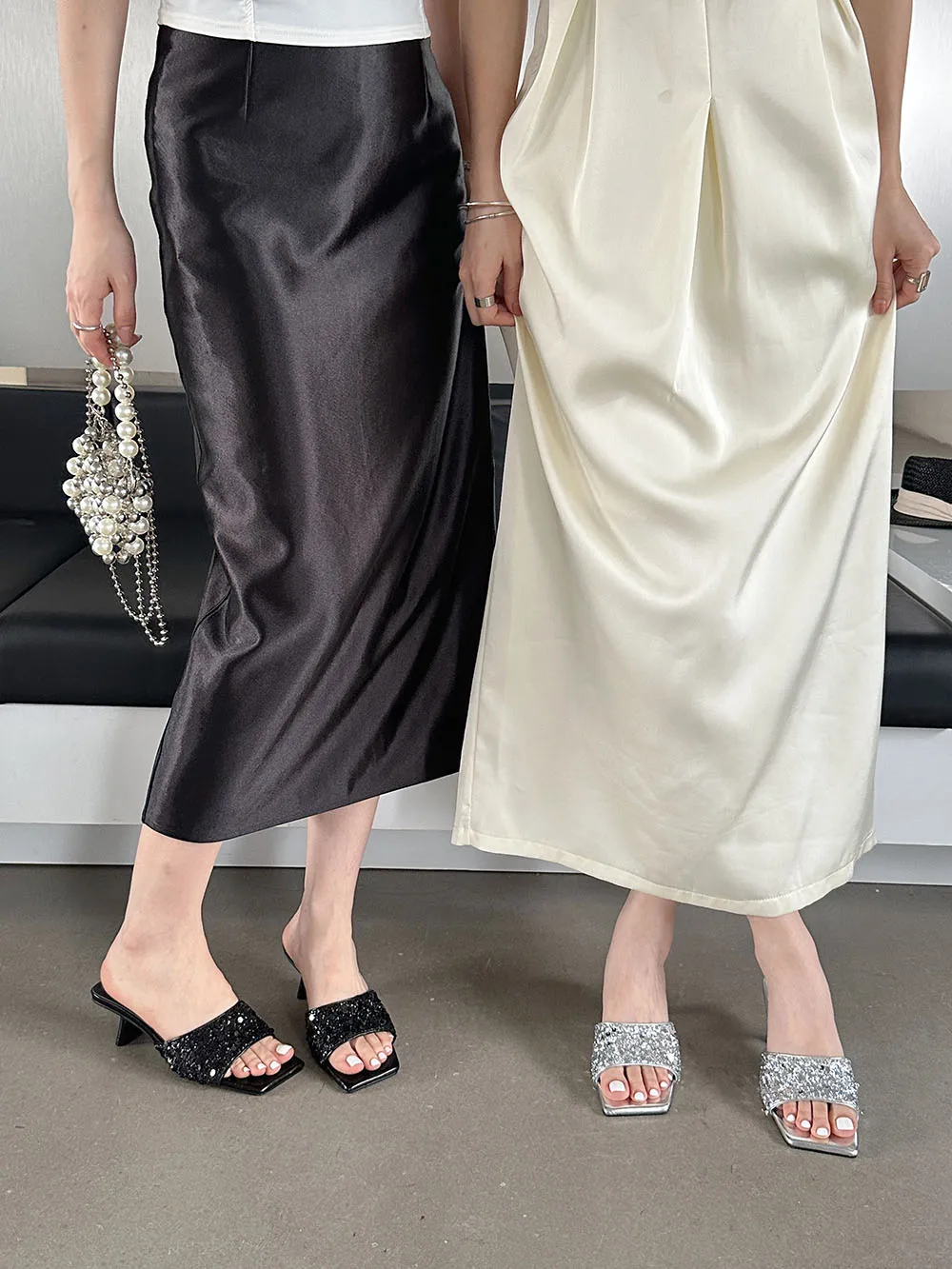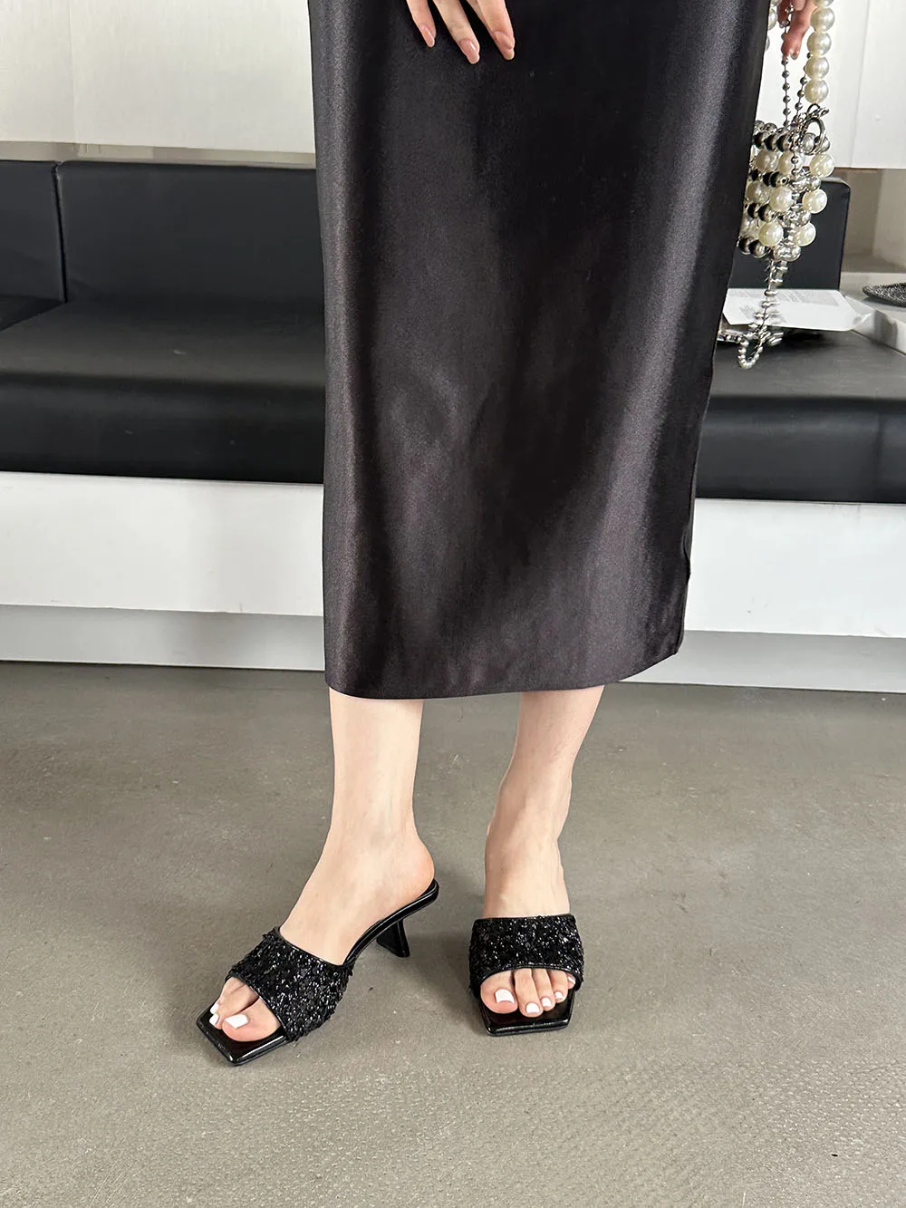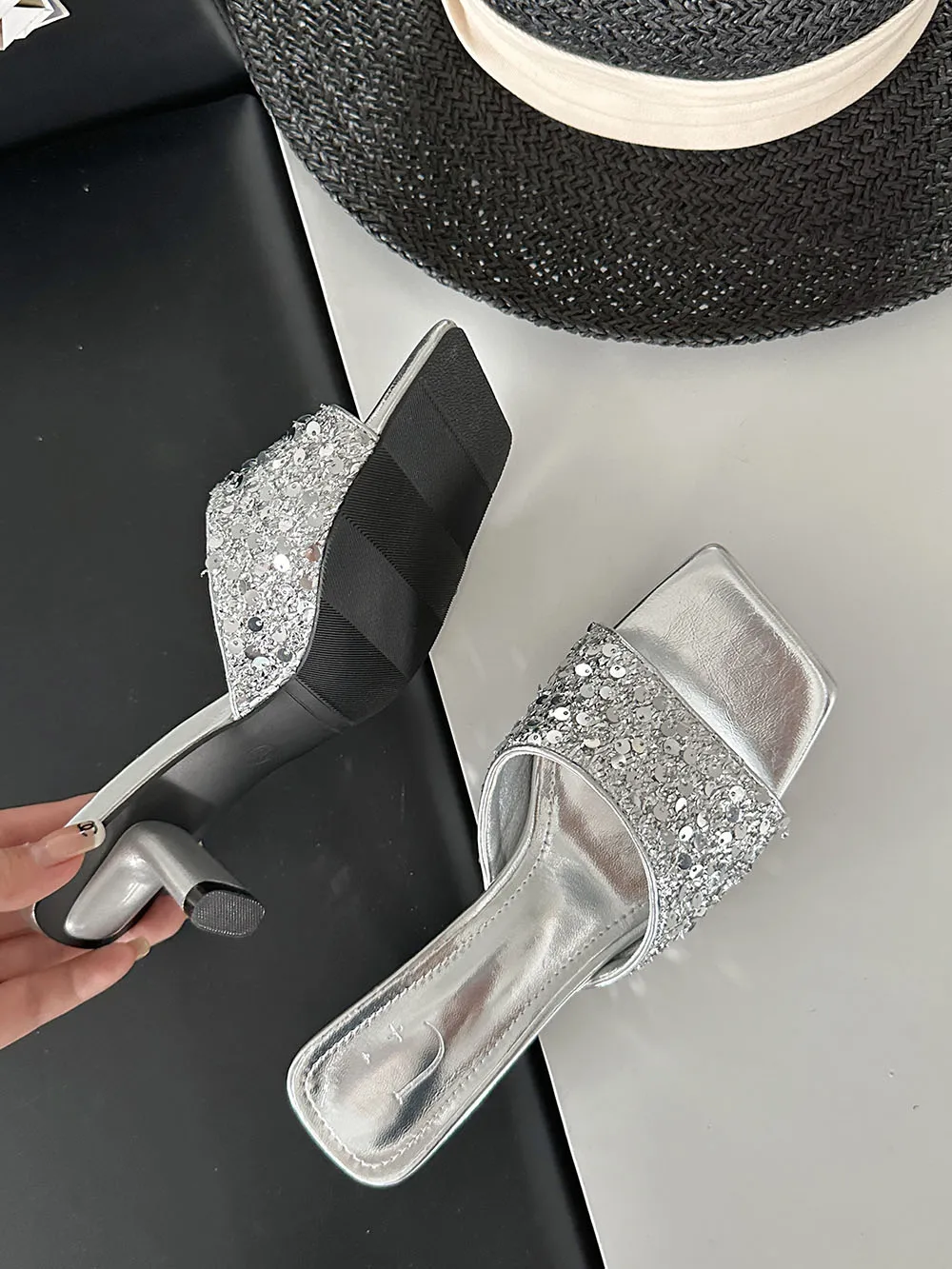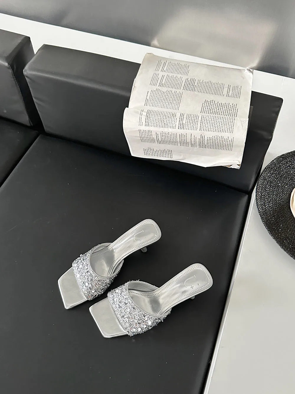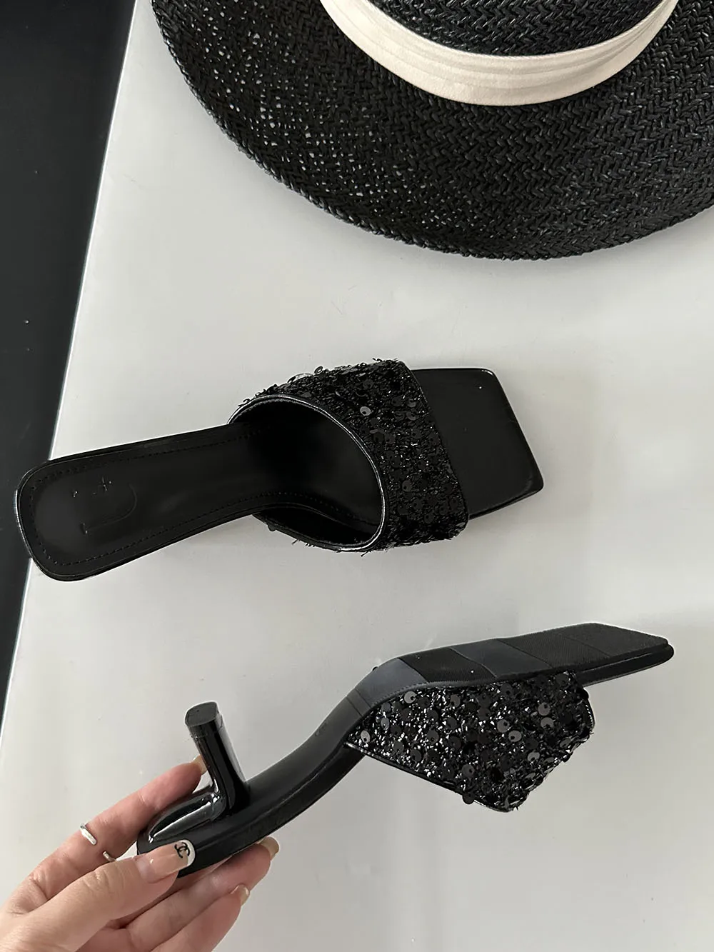 LBSFY - Open Toe Women Sandals Slides Summer Outside Mules Shoes Thin High Heels Party Pumps Size 35-39 Fashion Sexy Party Pumps 35-39