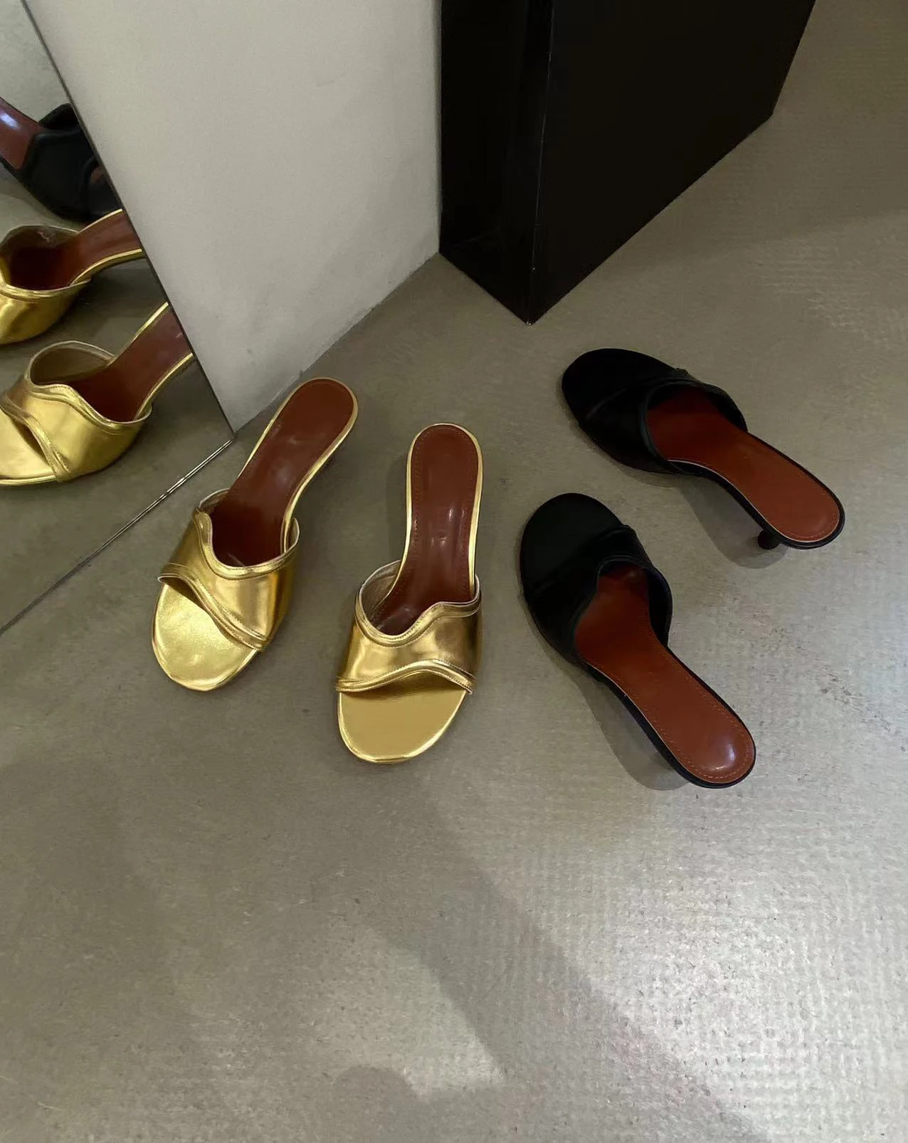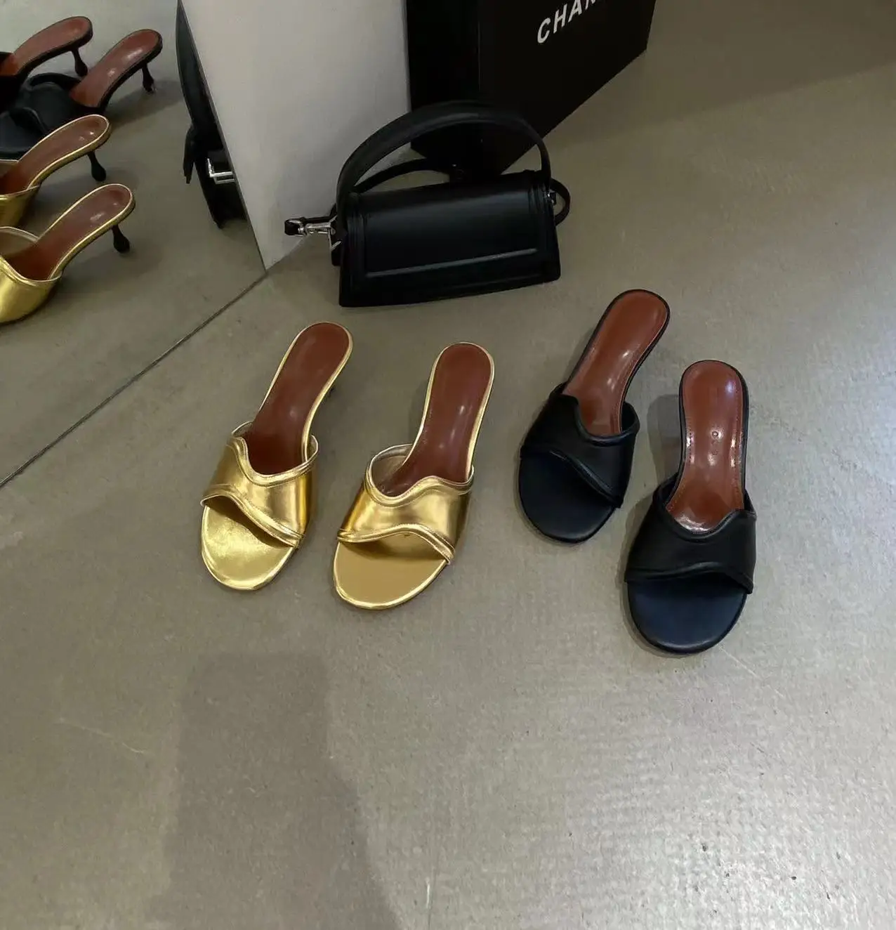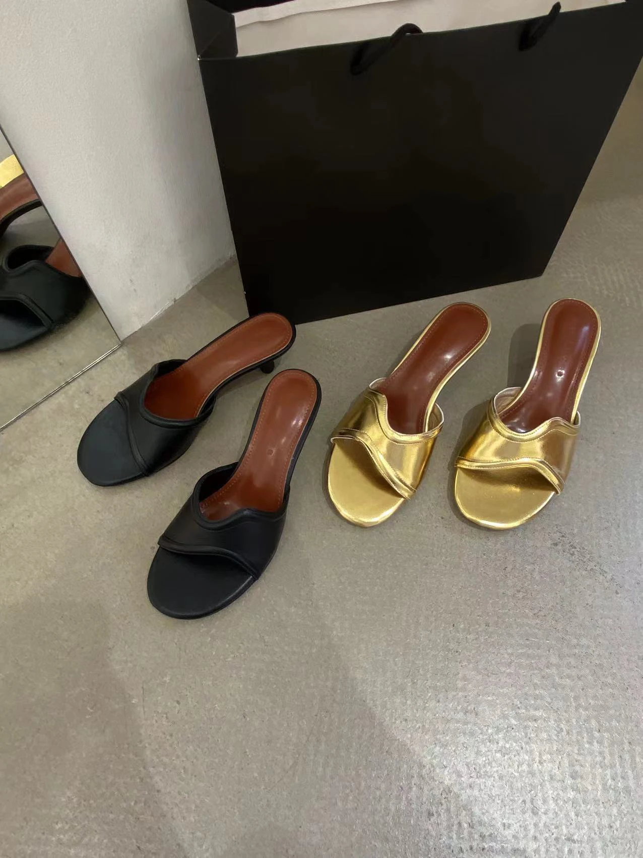 LBSFY - Open Toe Women Slippers Slides Mules Shoes Thin High Heels Black Gold Casual Mules Shoes Stiletto Party Pumps Fashion Office 39