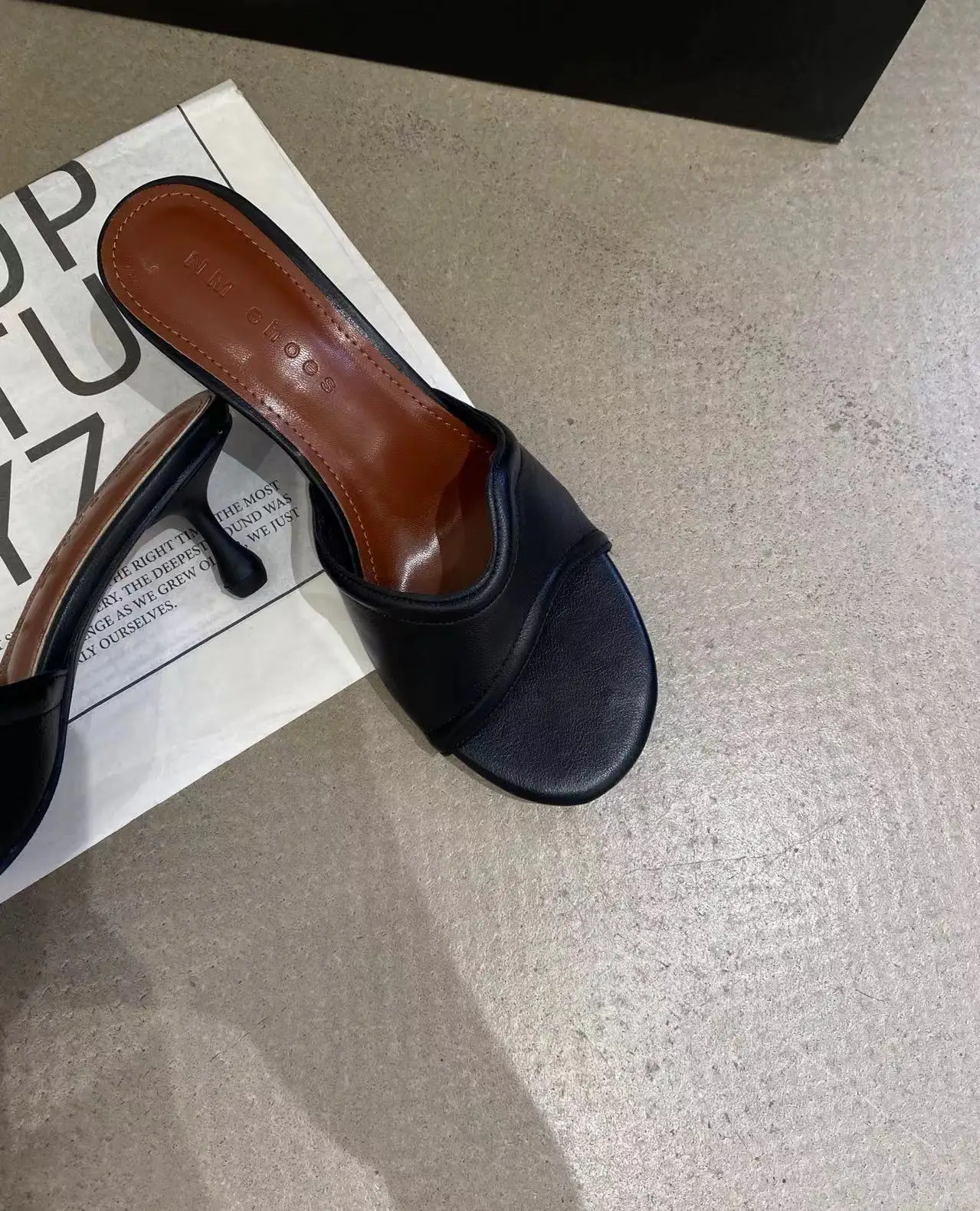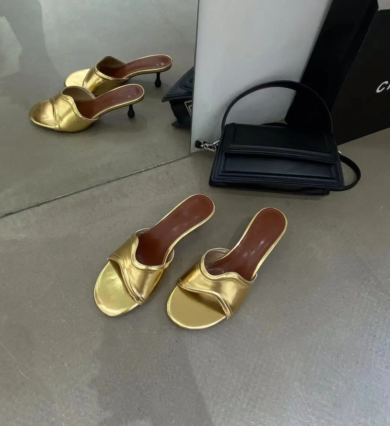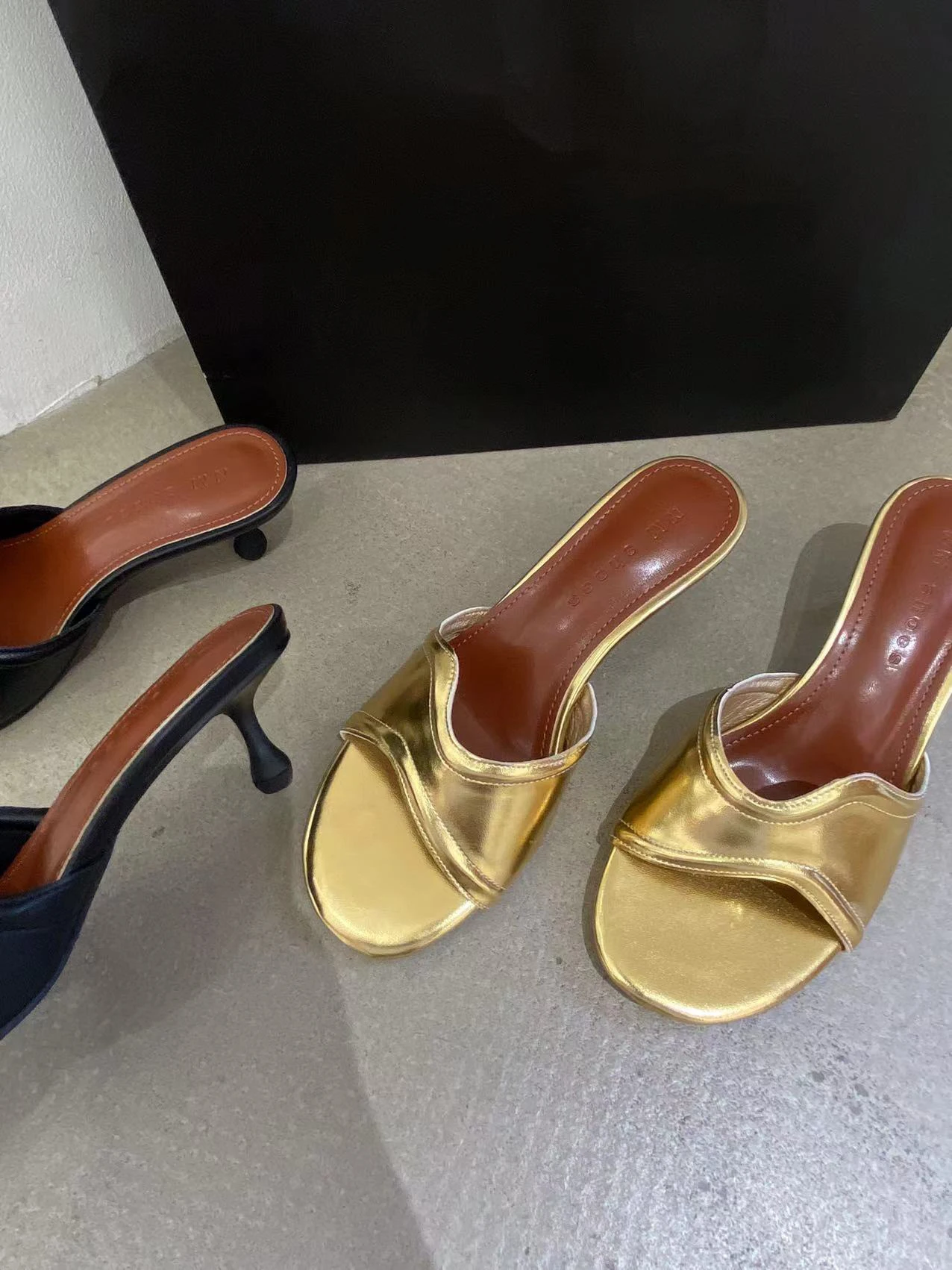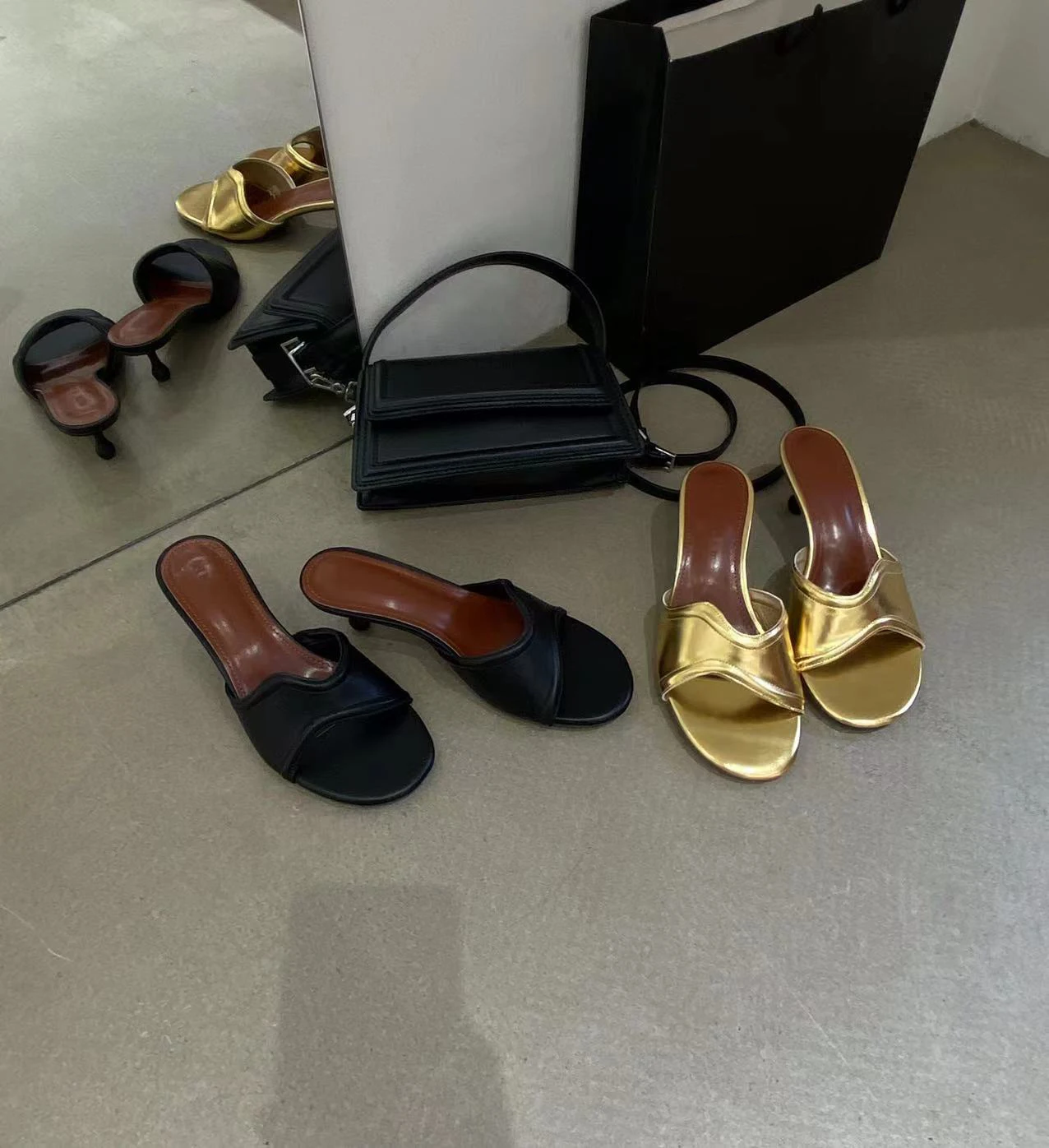 LBSFY - Open Toe Women Slippers Slides Mules Shoes Thin High Heels Black Gold Casual Mules Shoes Stiletto Party Pumps Fashion Office 39