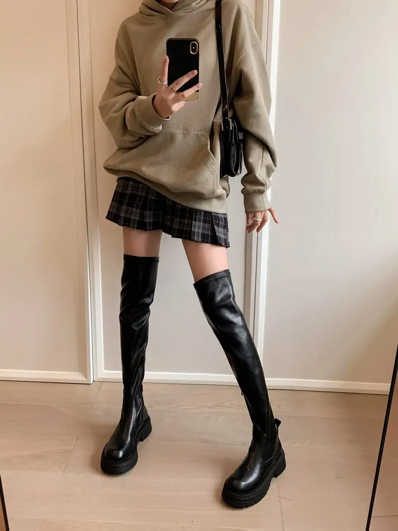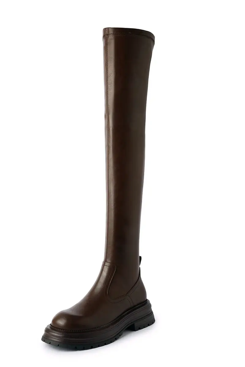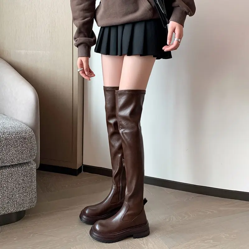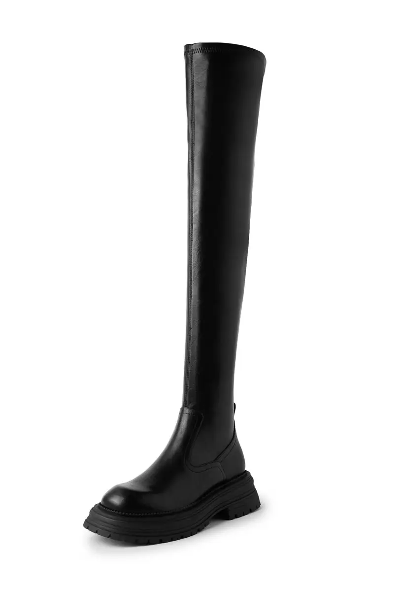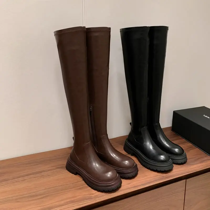 LBSFY - Over The Knee Boots Women Cow Leather Platform Stretch Boots Fashion Ladies Thigh High Boots Long Shoes