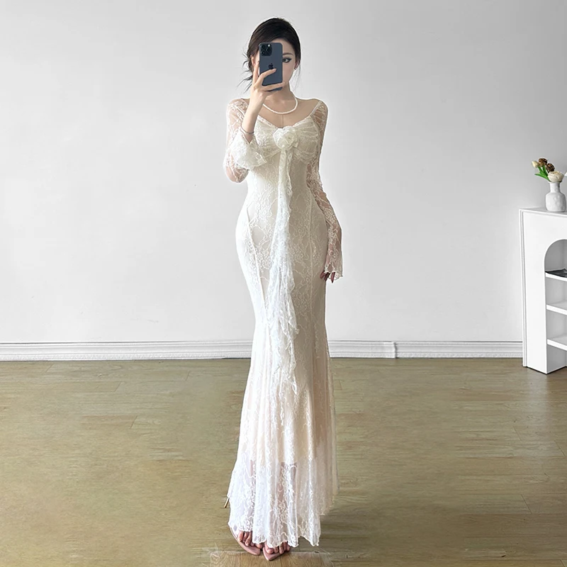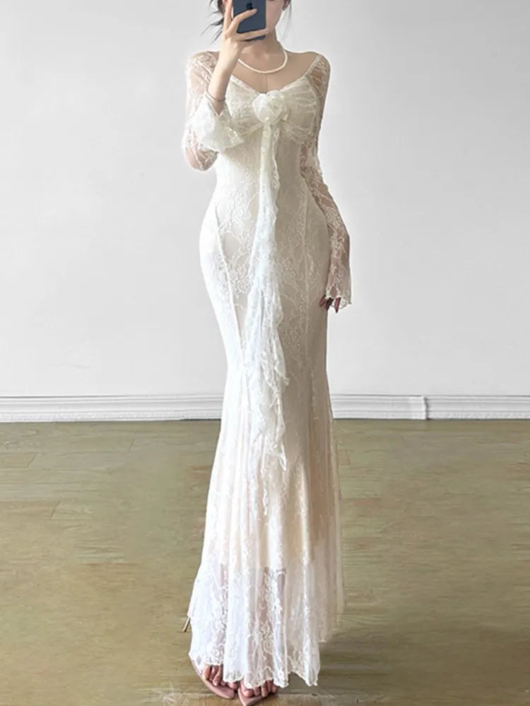 LBSFY -Party Mesh Elegant Women's Mermaid Dresses French Sexy Slim Fit Long Sleeveless Floral Tassel Dress 2025 New Chic Evening Robe