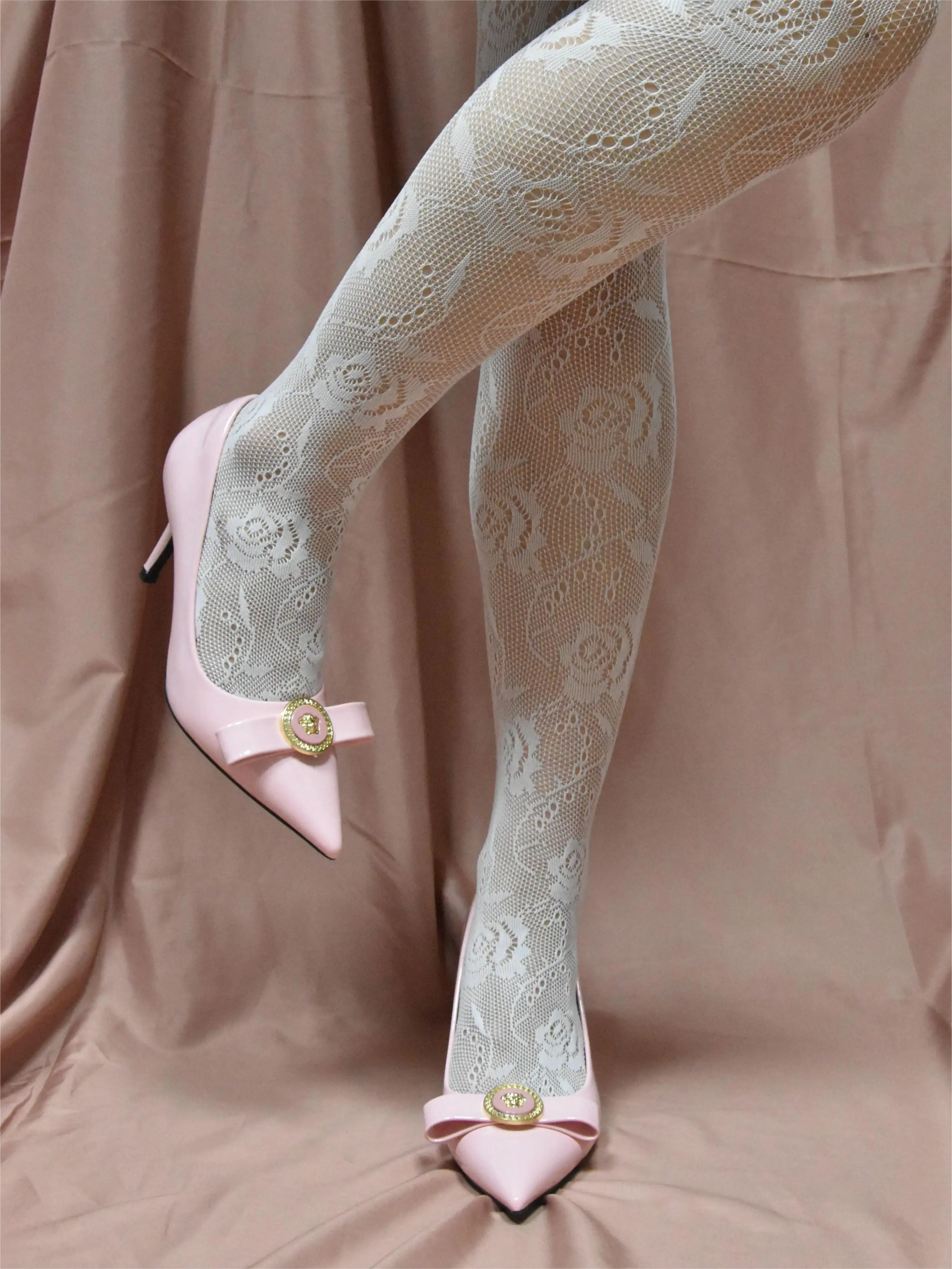 LBSFY - Pink Pointed Toe Peach High Heels Pumps Shoes Dress for Women Wedding and Party Designer Luxury with Bow
