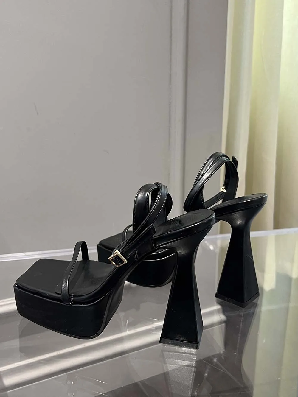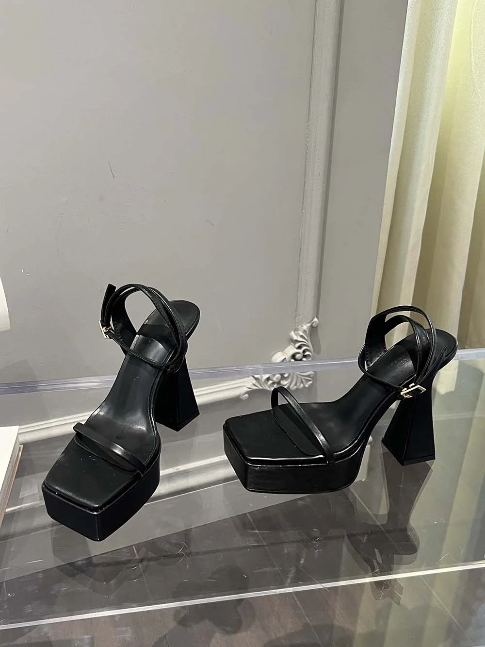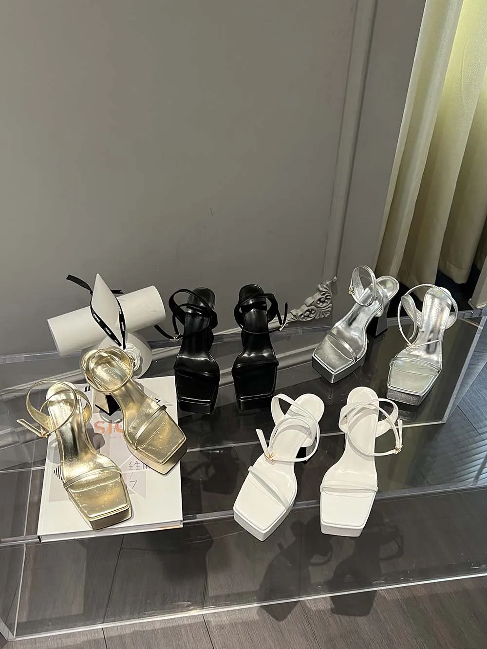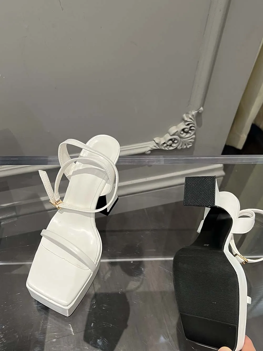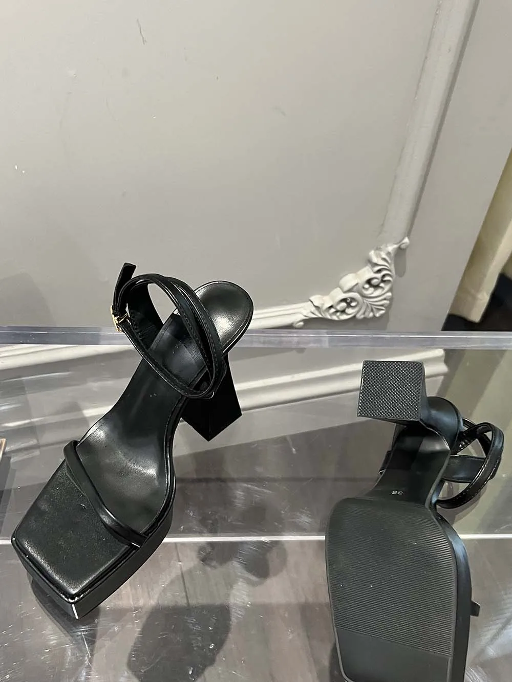 LBSFY - Platform Shoes For Women Sandals Square Open Toe Summer Dress Shoes Thick High Heels Party Wedding Sandals Slides Mules Shoes 39