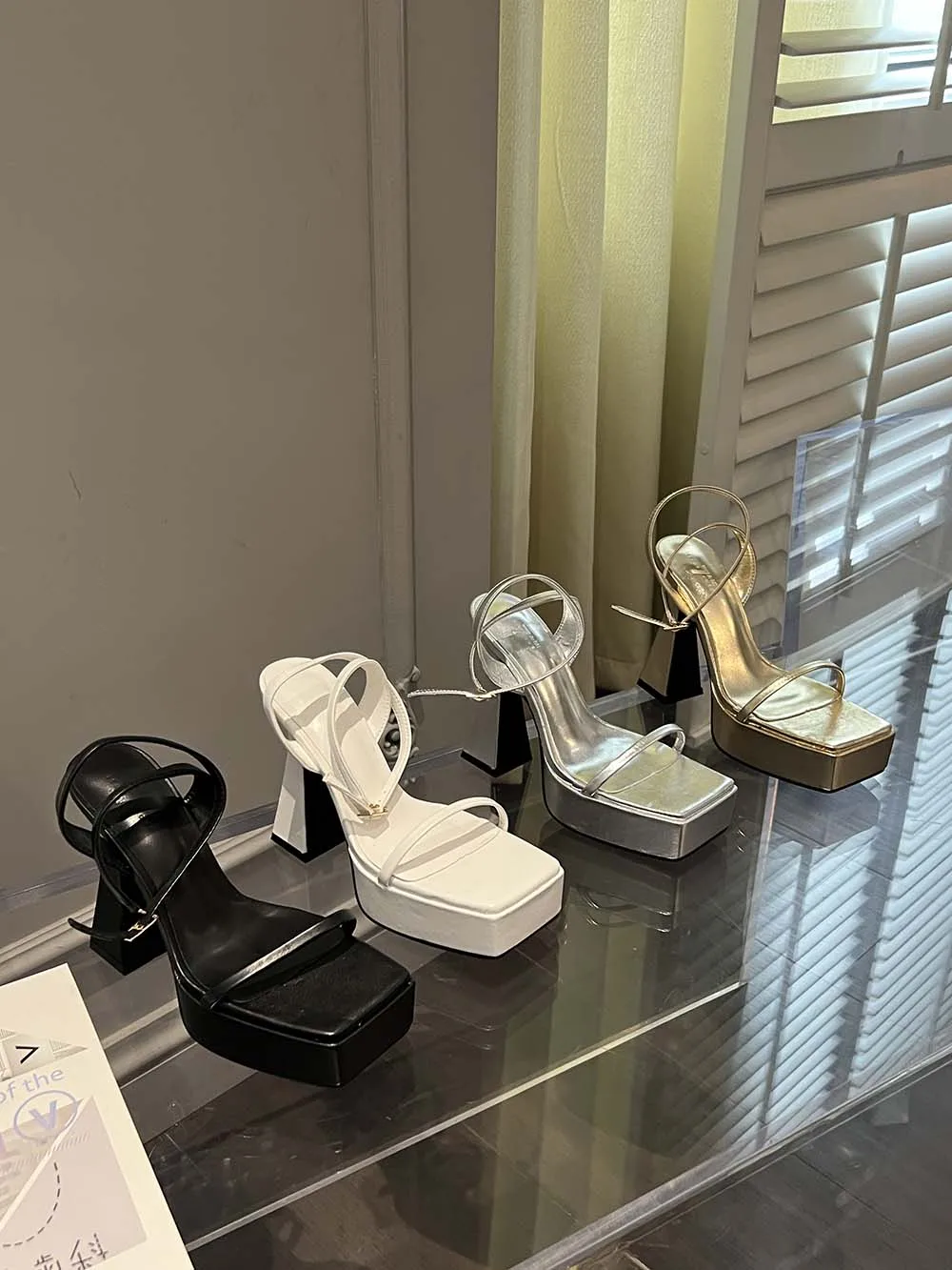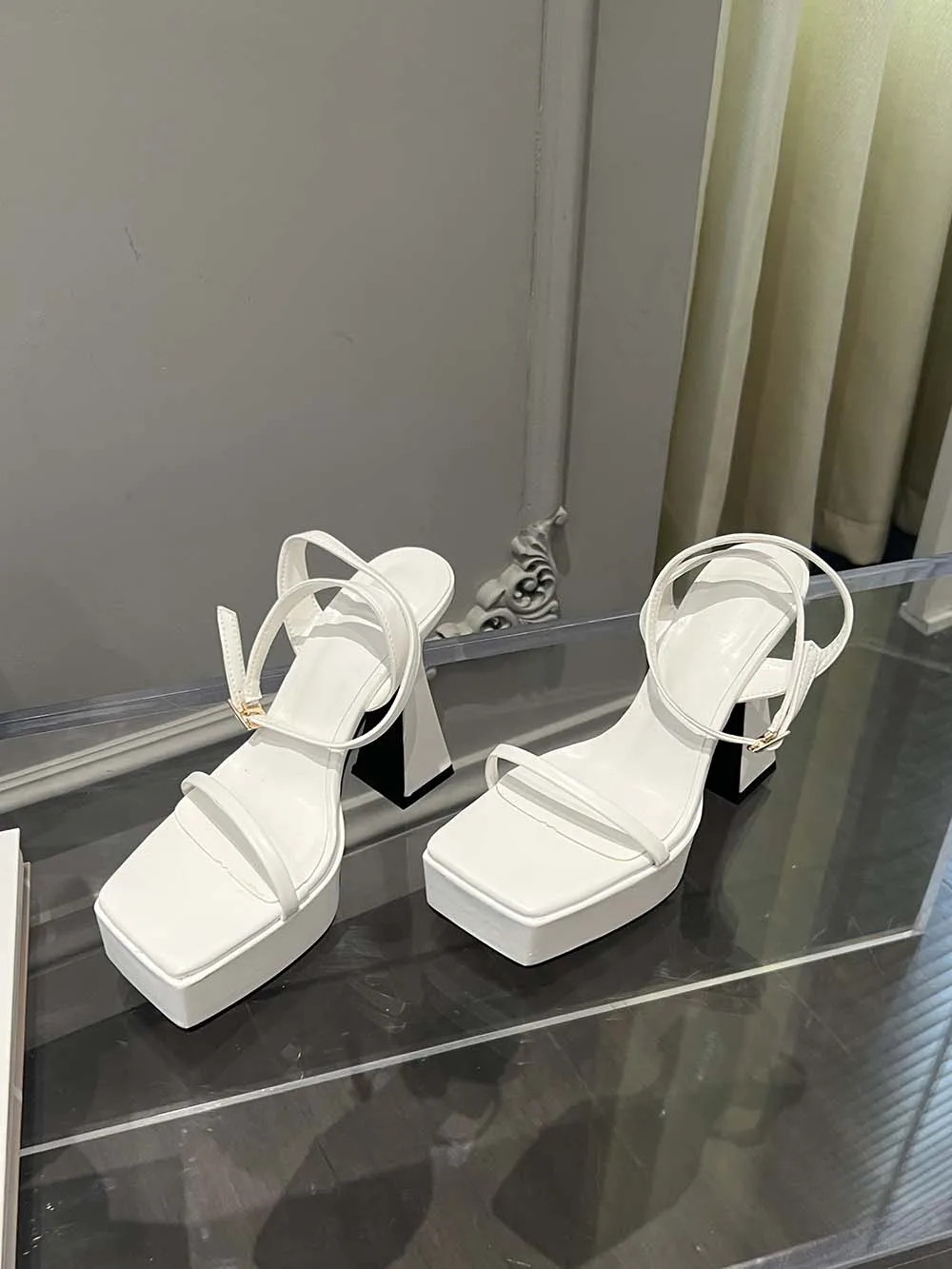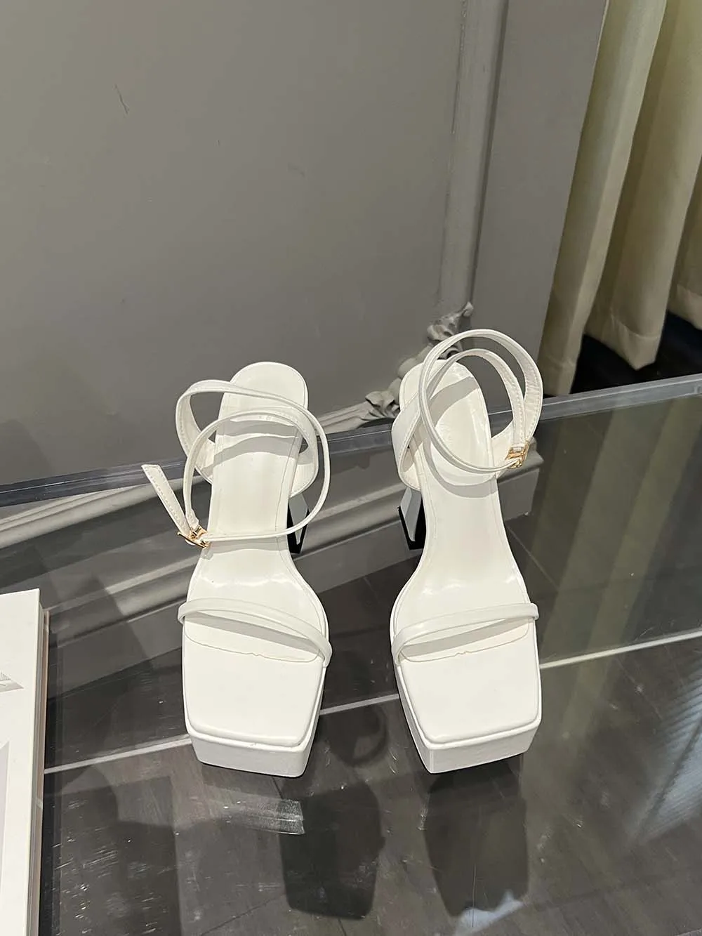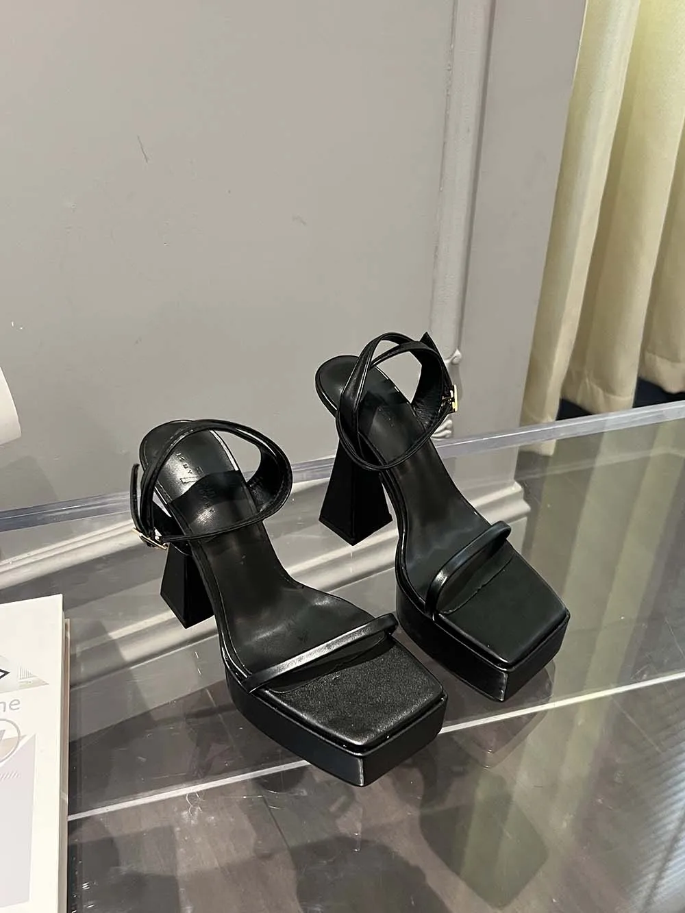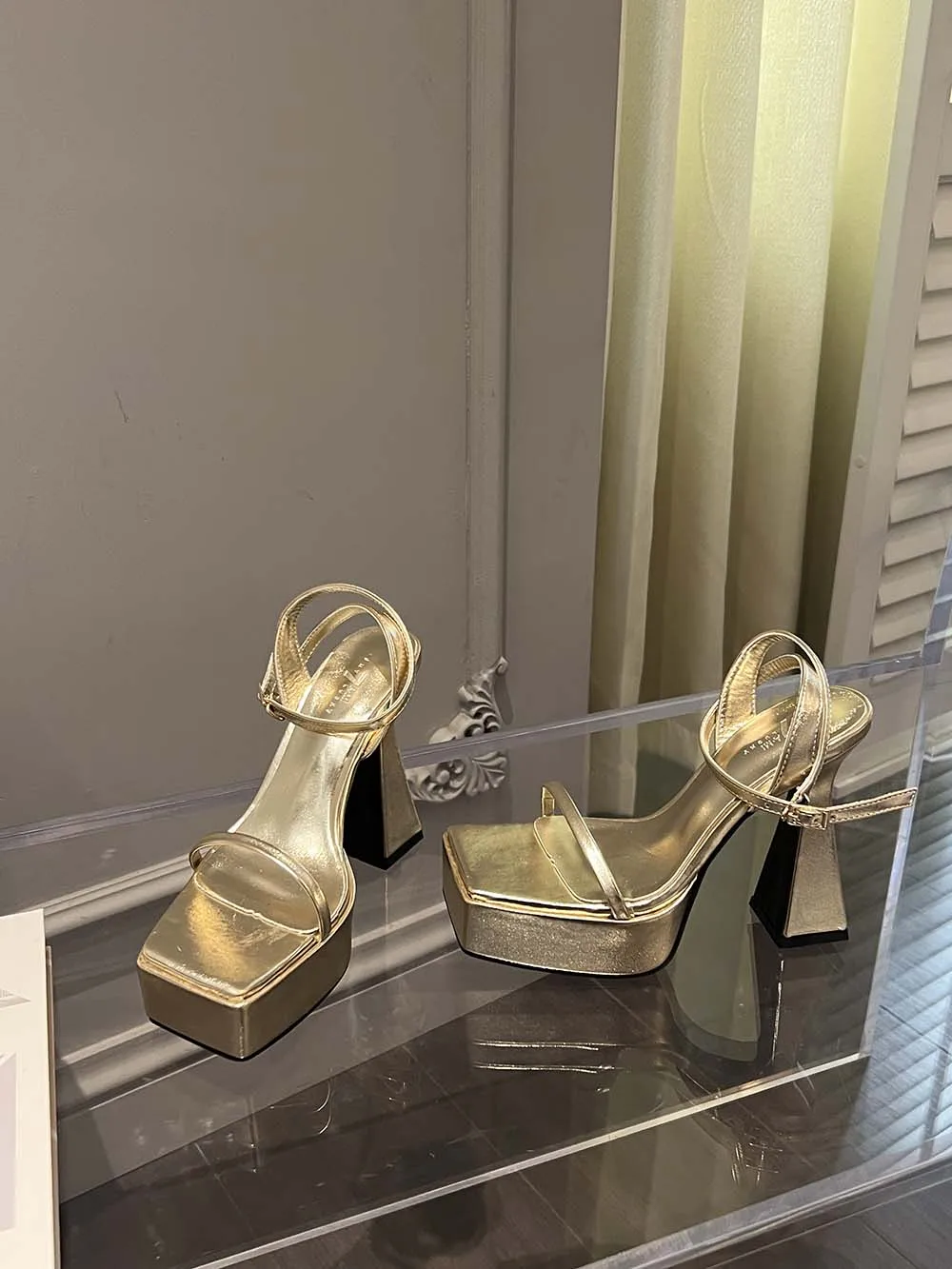 LBSFY - Platform Shoes For Women Sandals Square Open Toe Summer Dress Shoes Thick High Heels Party Wedding Sandals Slides Mules Shoes 39