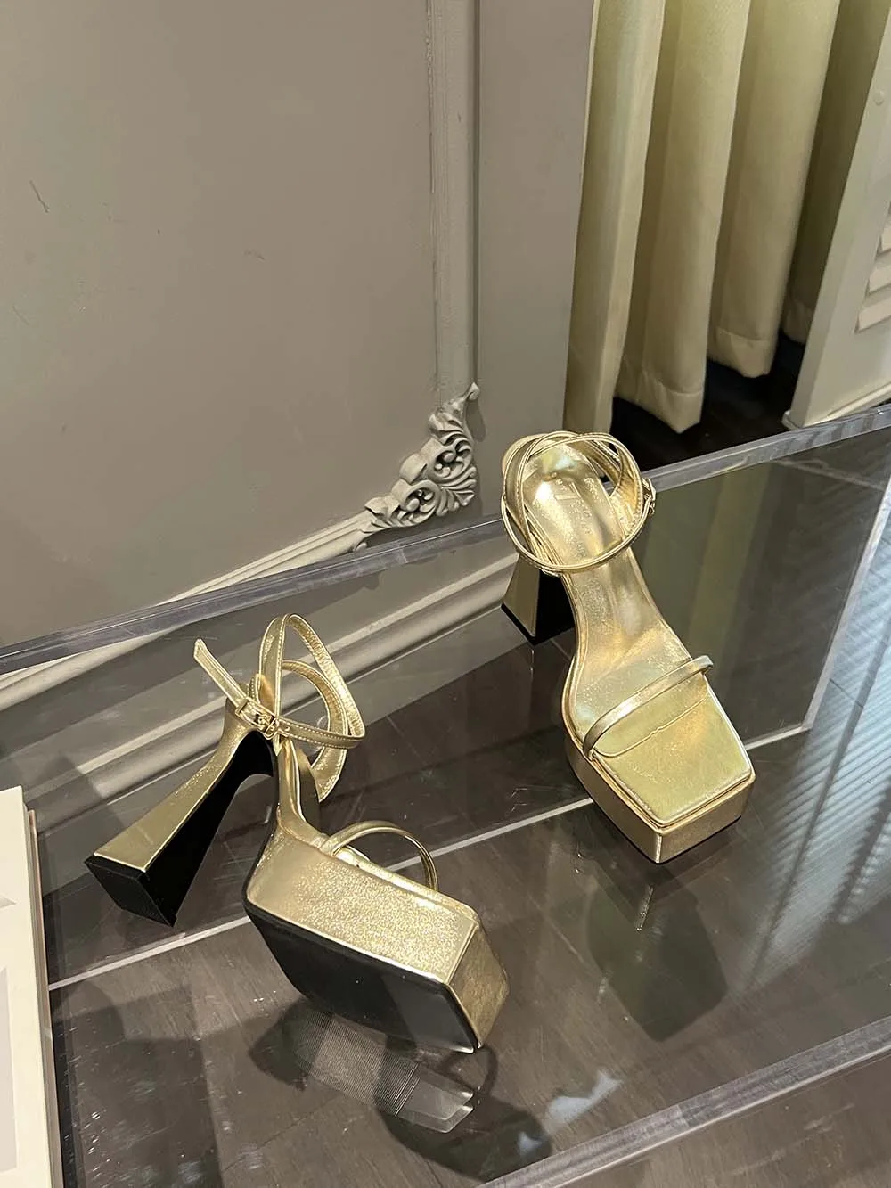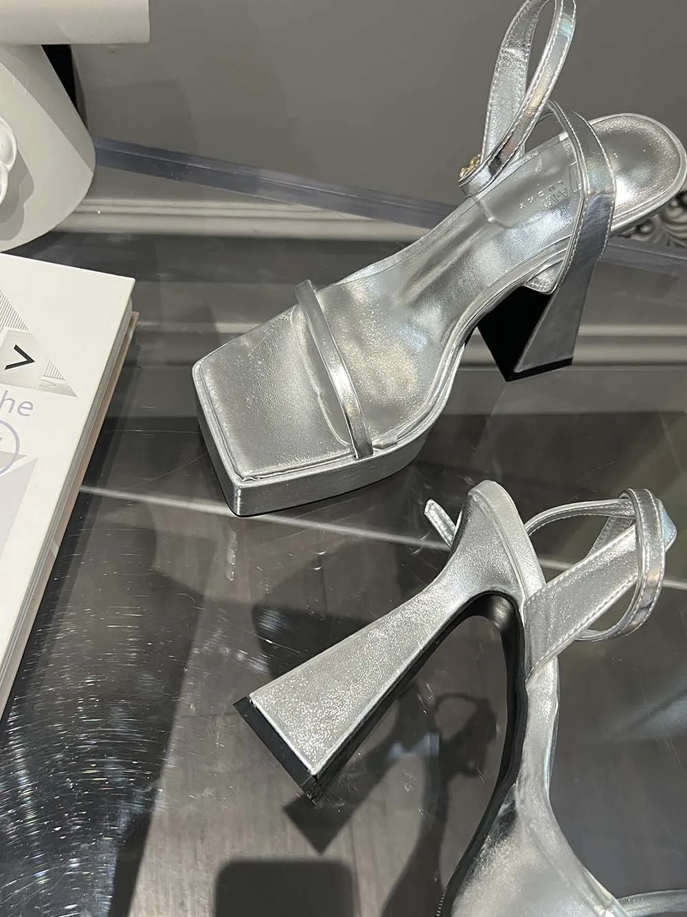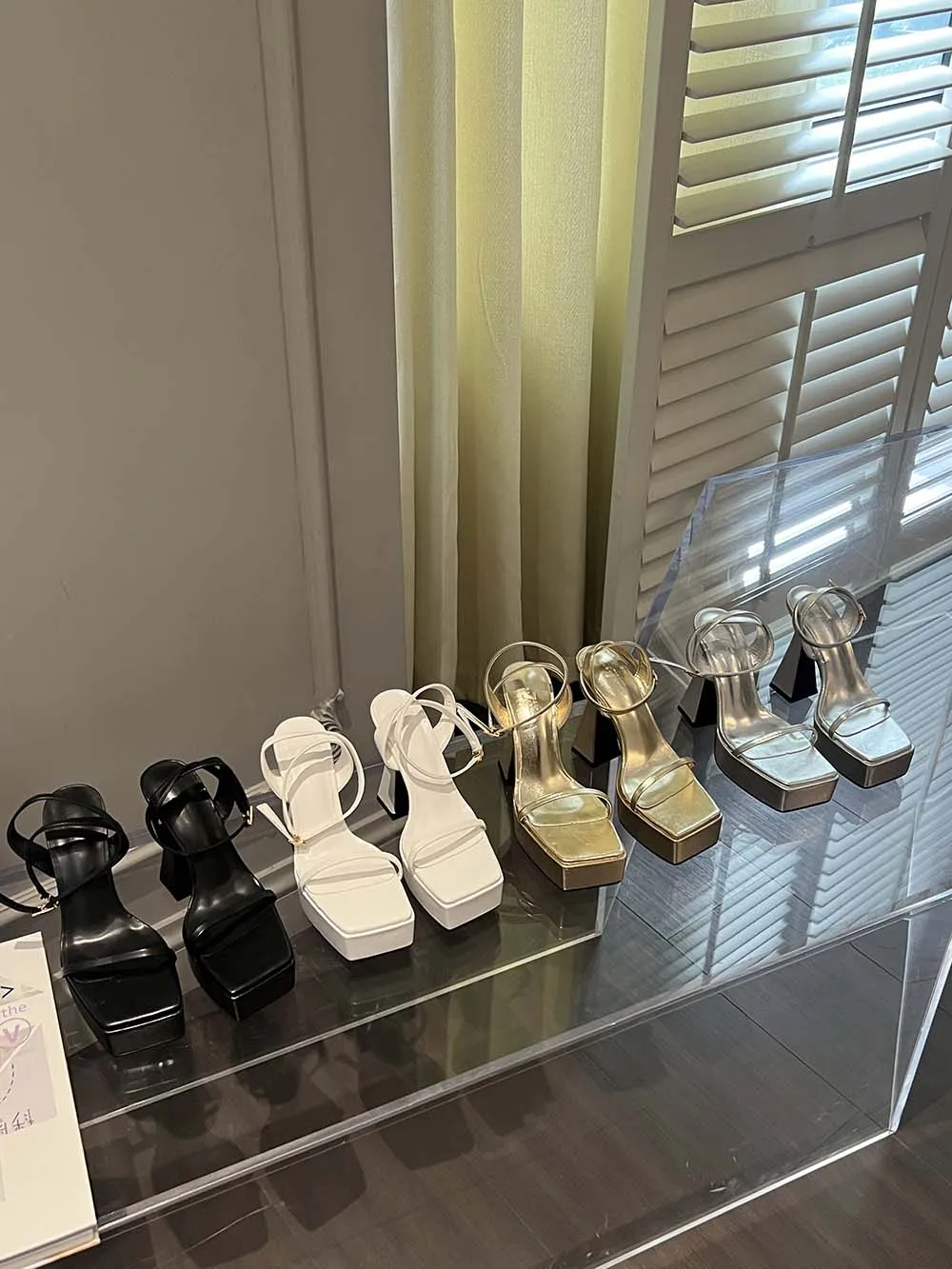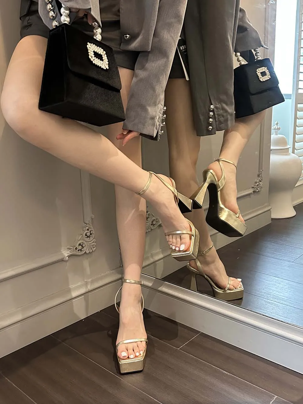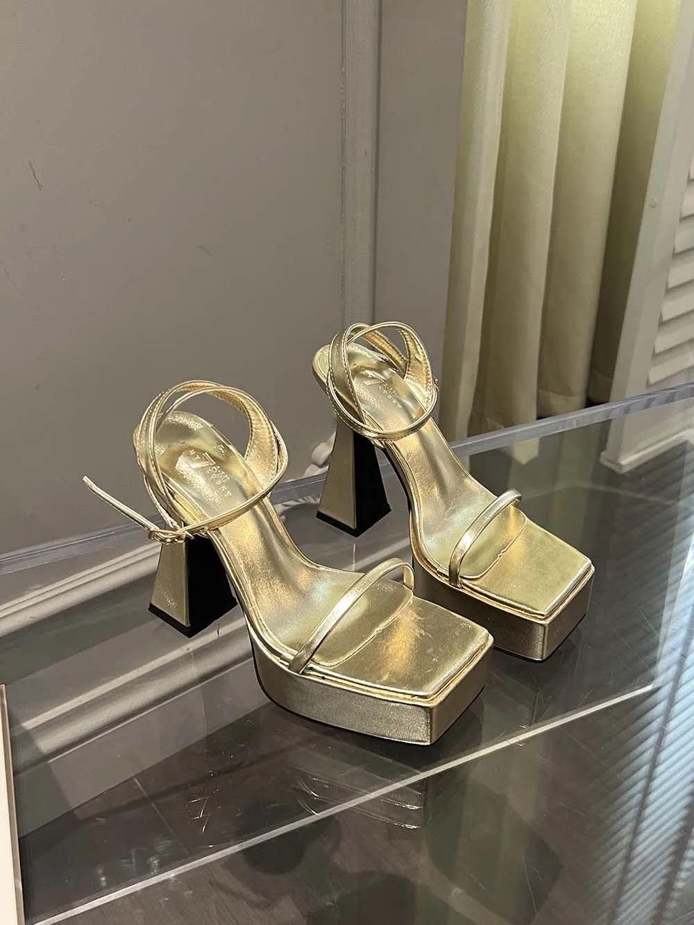 LBSFY - Platform Shoes For Women Sandals Square Open Toe Summer Dress Shoes Thick High Heels Party Wedding Sandals Slides Mules Shoes 39