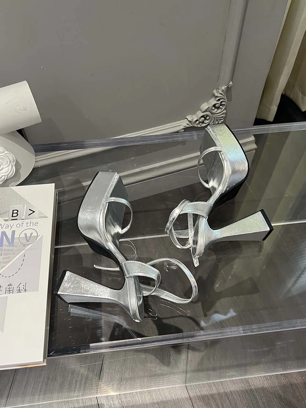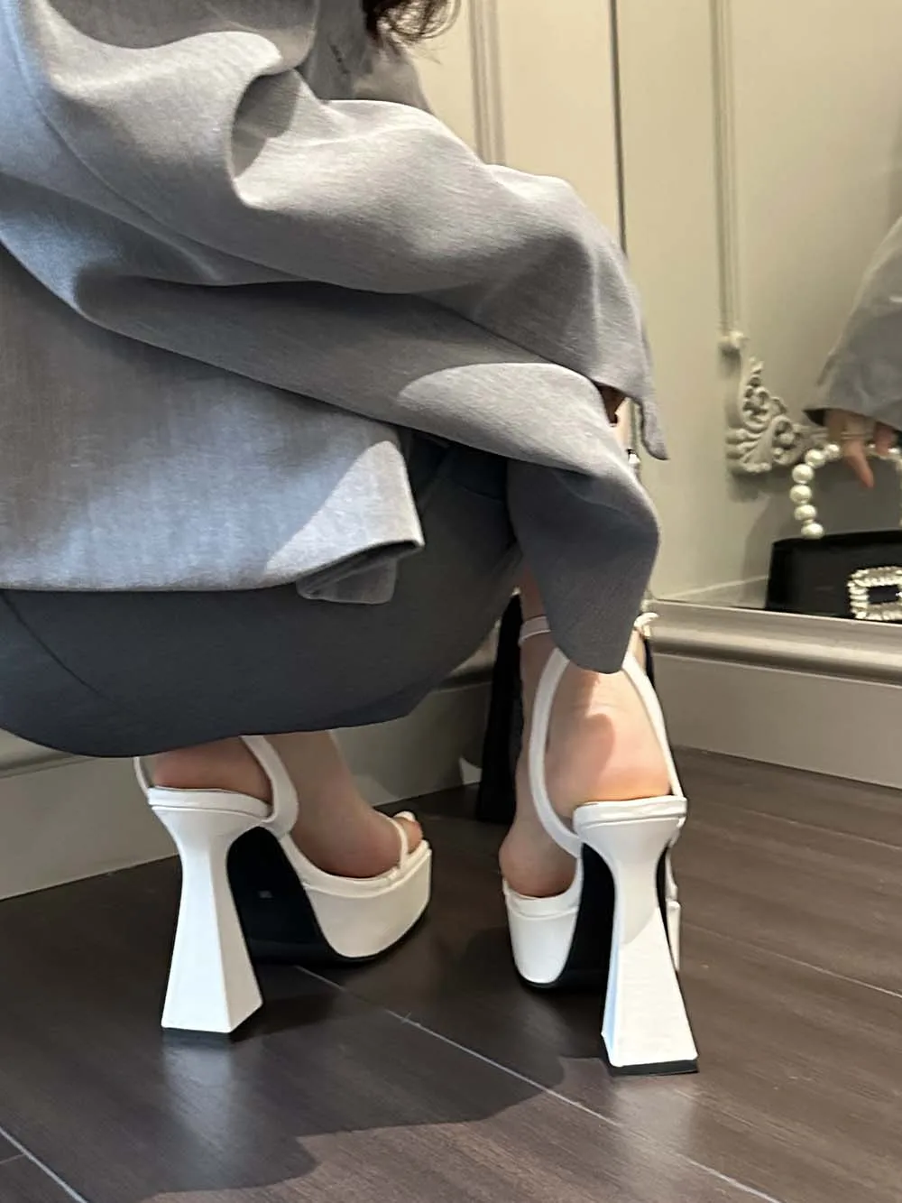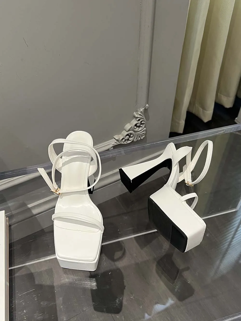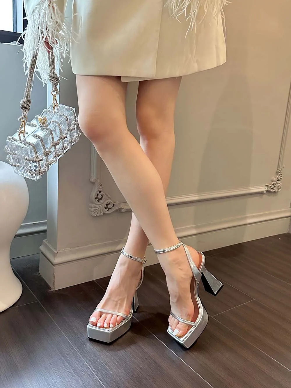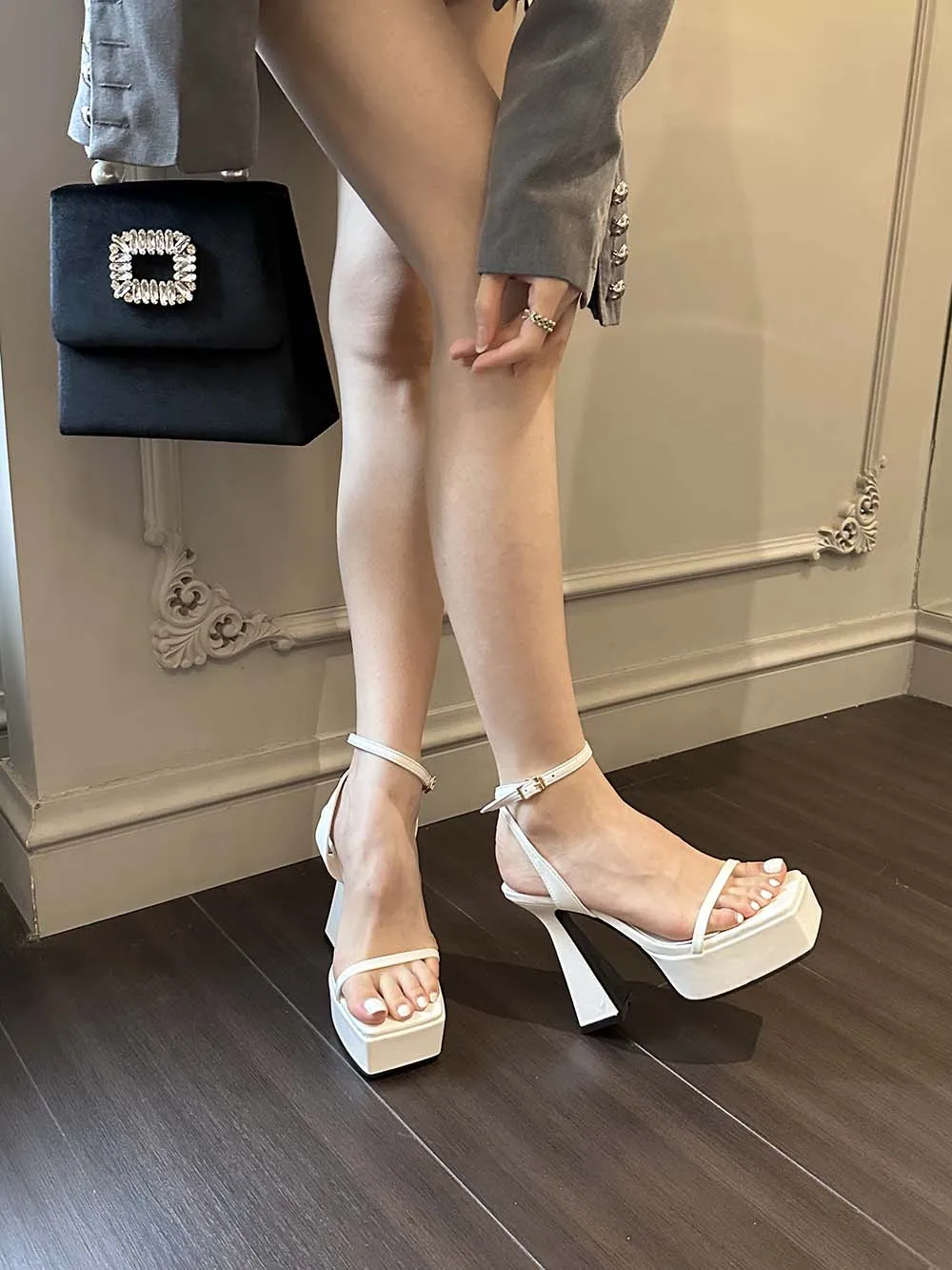 LBSFY - Platform Shoes For Women Sandals Square Open Toe Summer Dress Shoes Thick High Heels Party Wedding Sandals Slides Mules Shoes 39