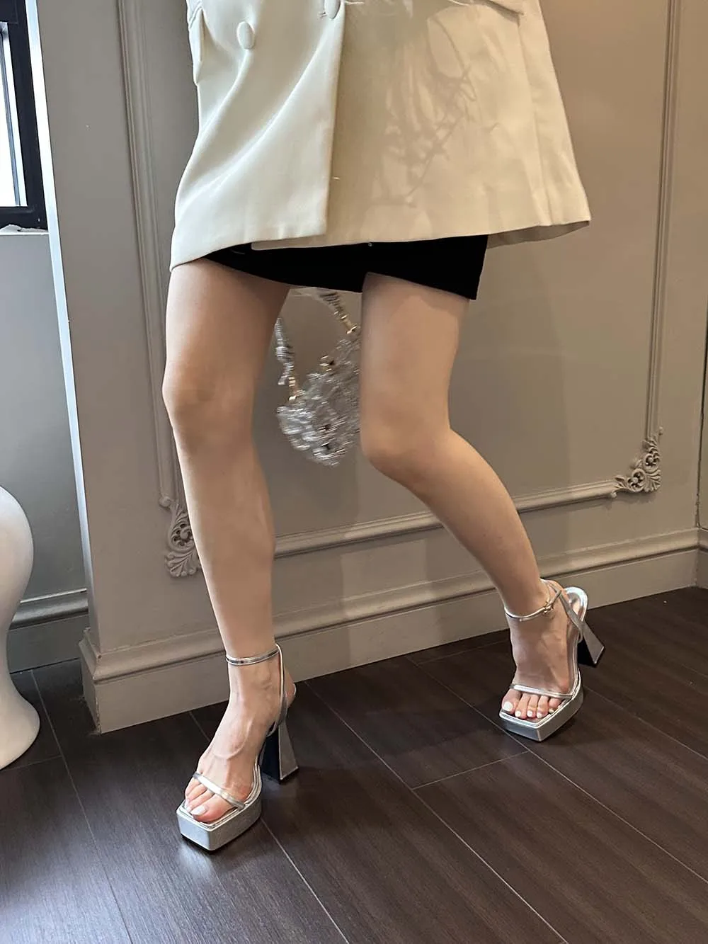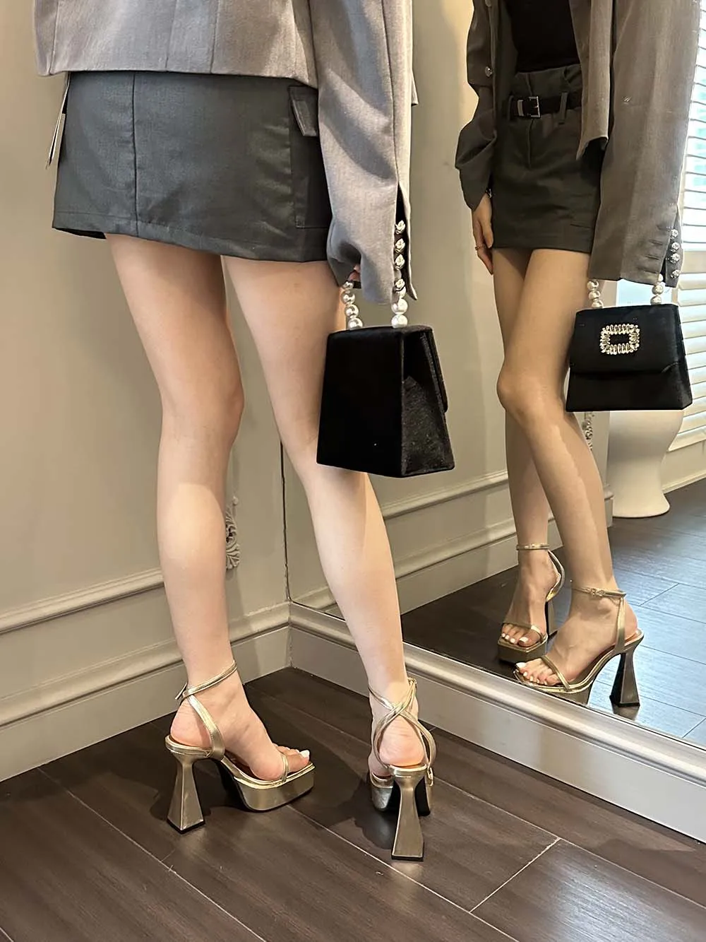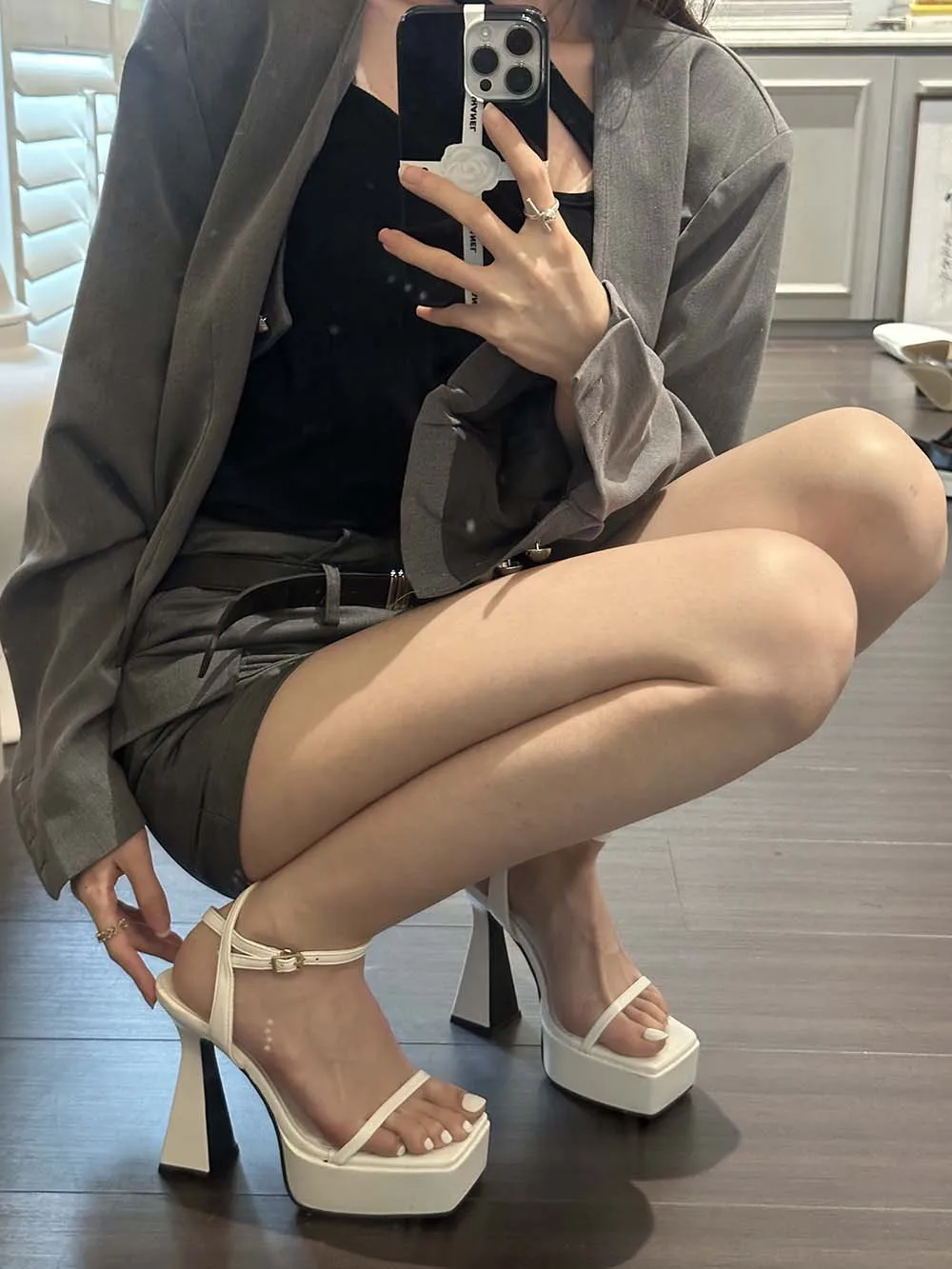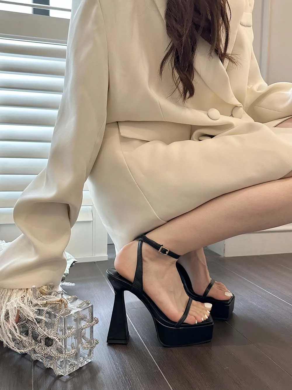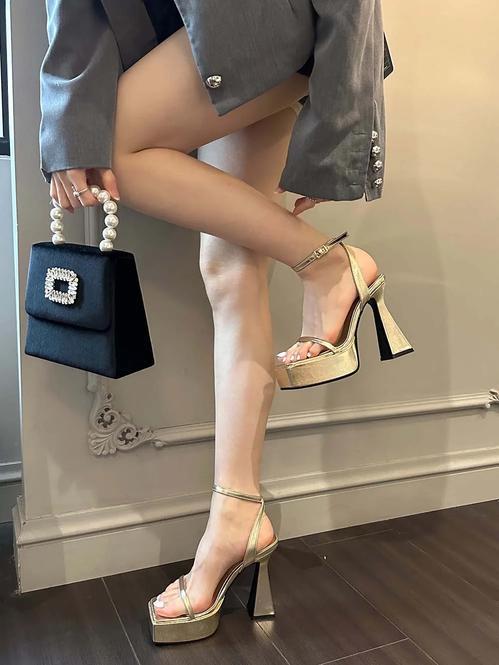 LBSFY - Platform Shoes For Women Sandals Square Open Toe Summer Dress Shoes Thick High Heels Party Wedding Sandals Slides Mules Shoes 39