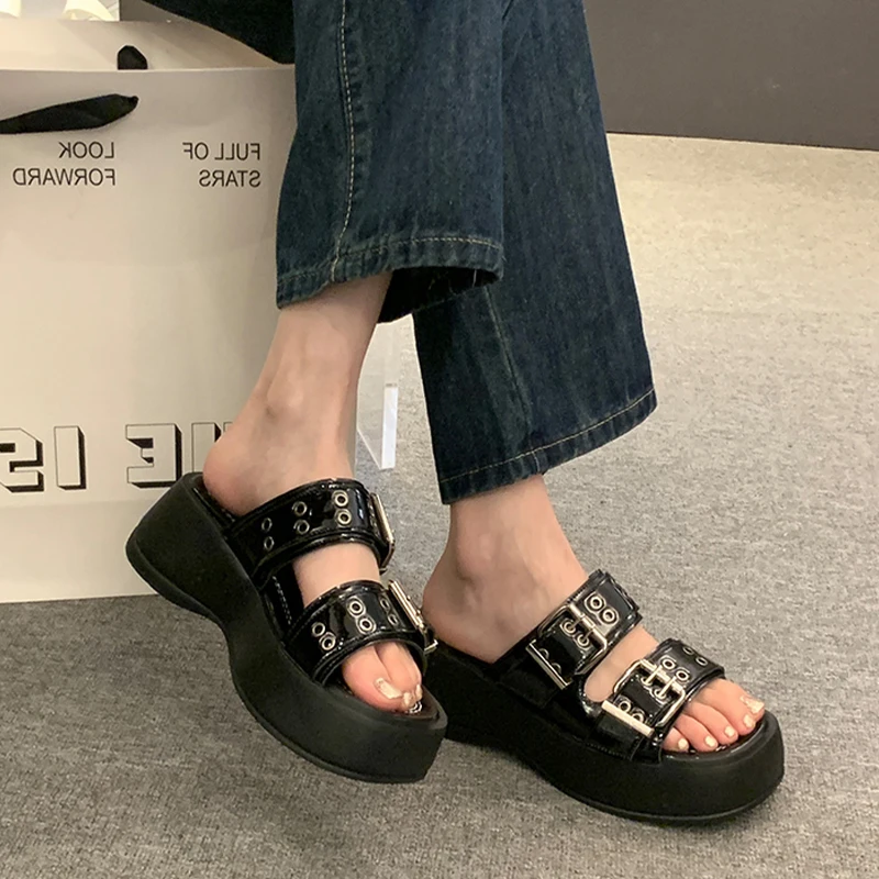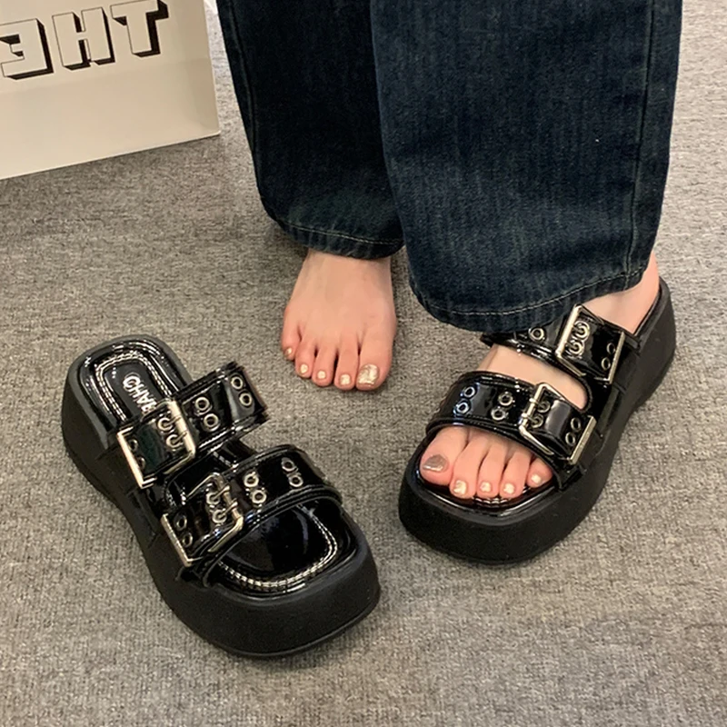 LBSFY - Platform Slippers Women Square Toe Dress Mid Heels Sandal Shoes Summer 2024 New Fashion Slingback Beach Slides Femme Flip Flops
