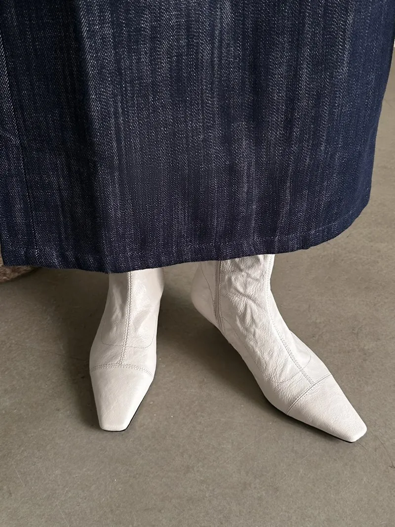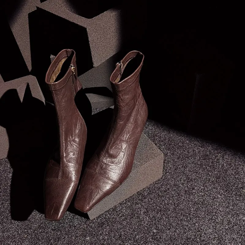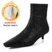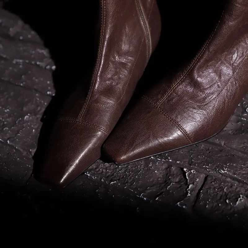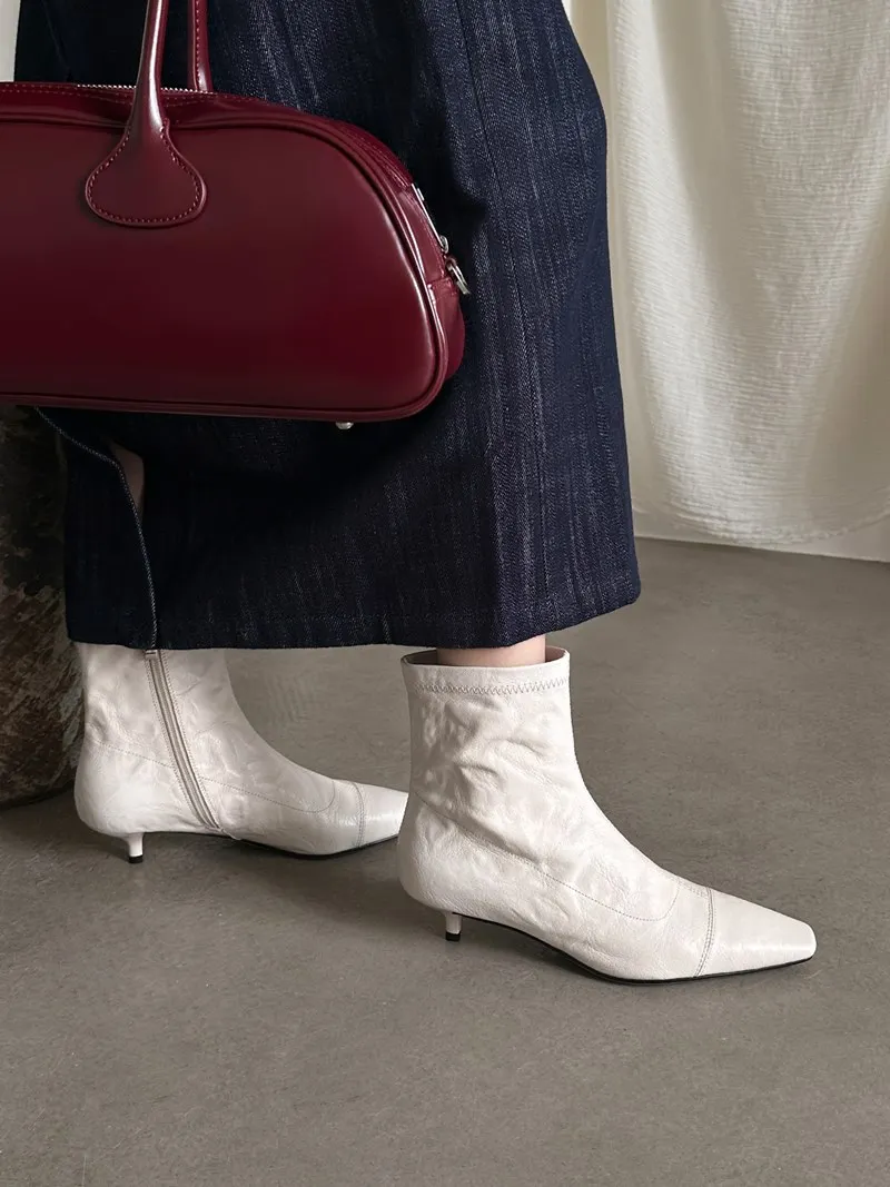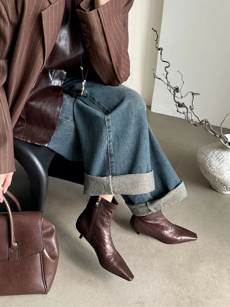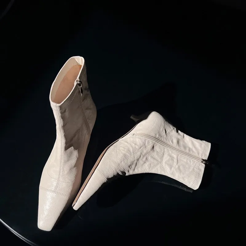 LBSFY - Plus Size 34-41 New Genuine Leather Boots Women Zipper Pointed Toe Mid Heels Autumn Winter Ankle Boos Wool Snow Boots