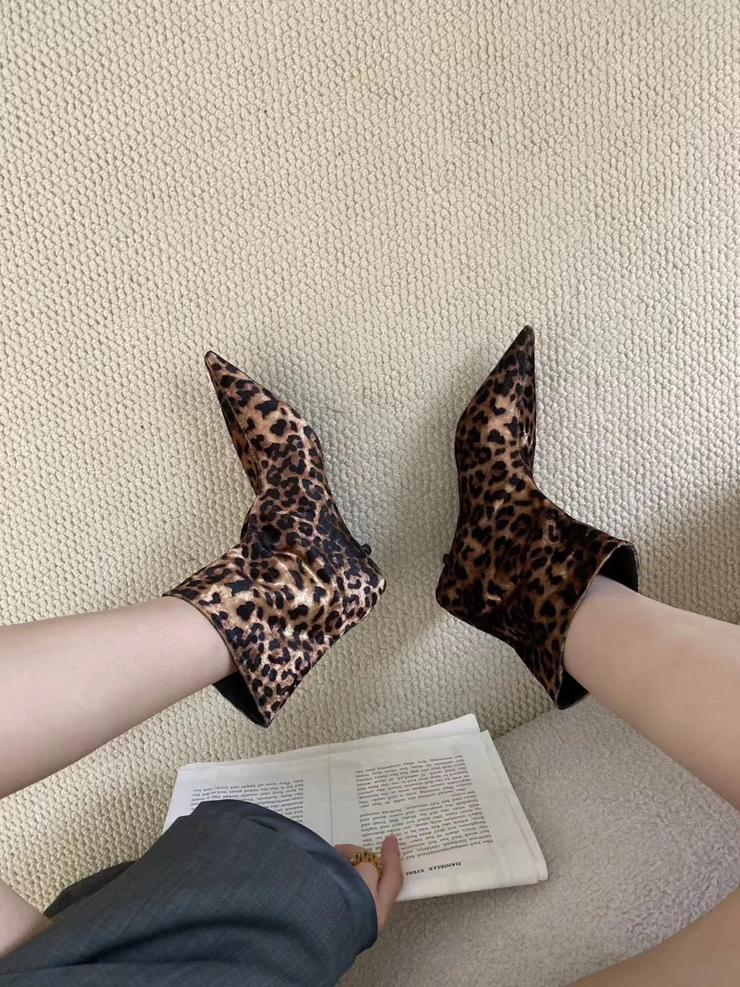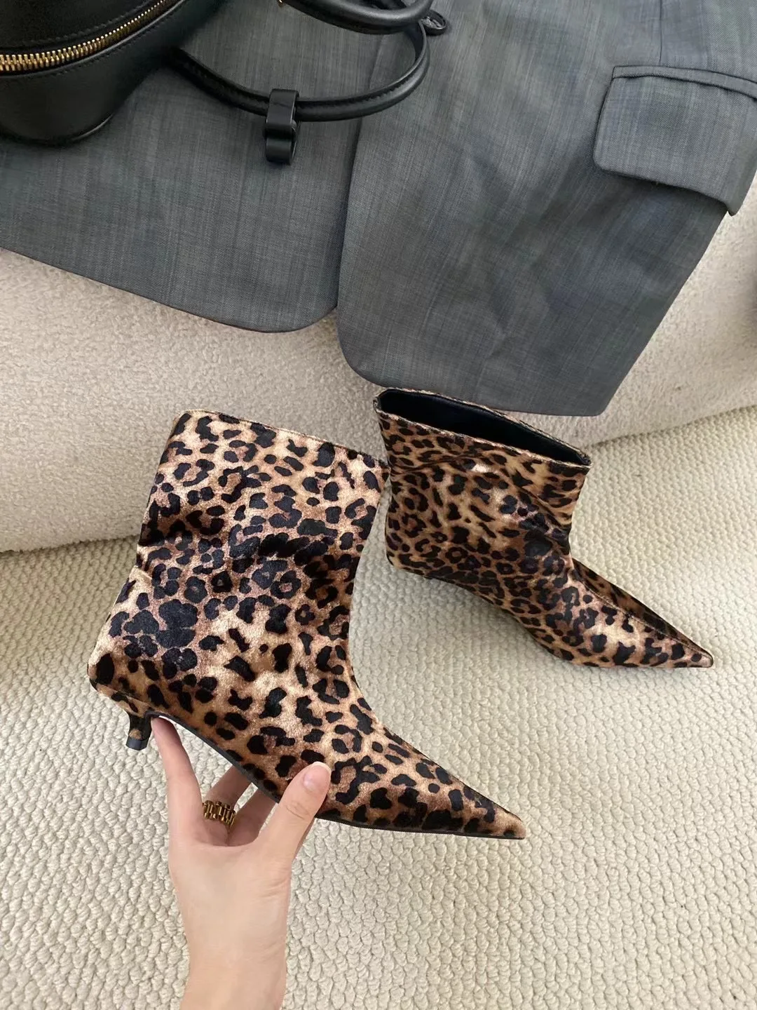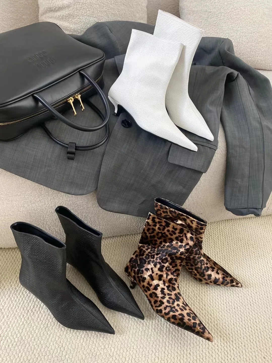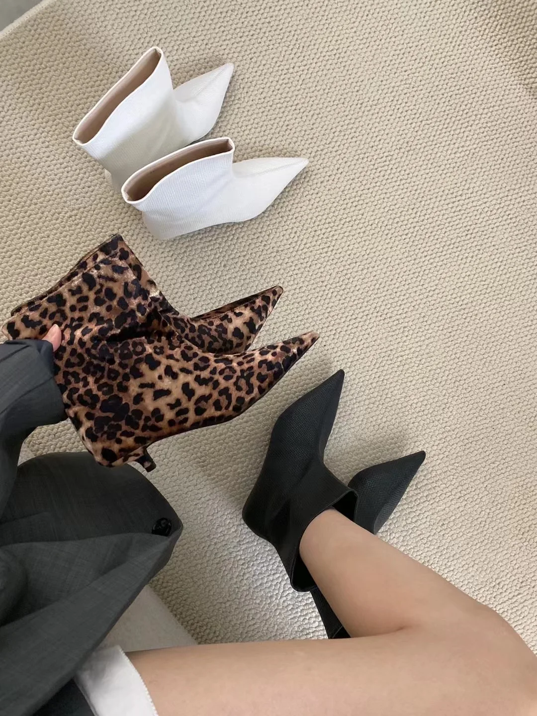 LBSFY - Pointed Toe Women Ankle Boots Black White Leopard Chelsea Botas Thin Mid Heels Autumn Winter Boots Woman Slip On Fashion Pumps