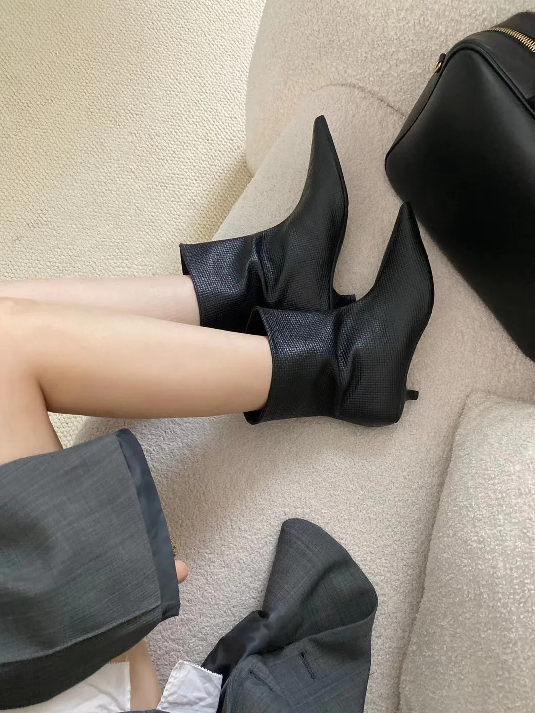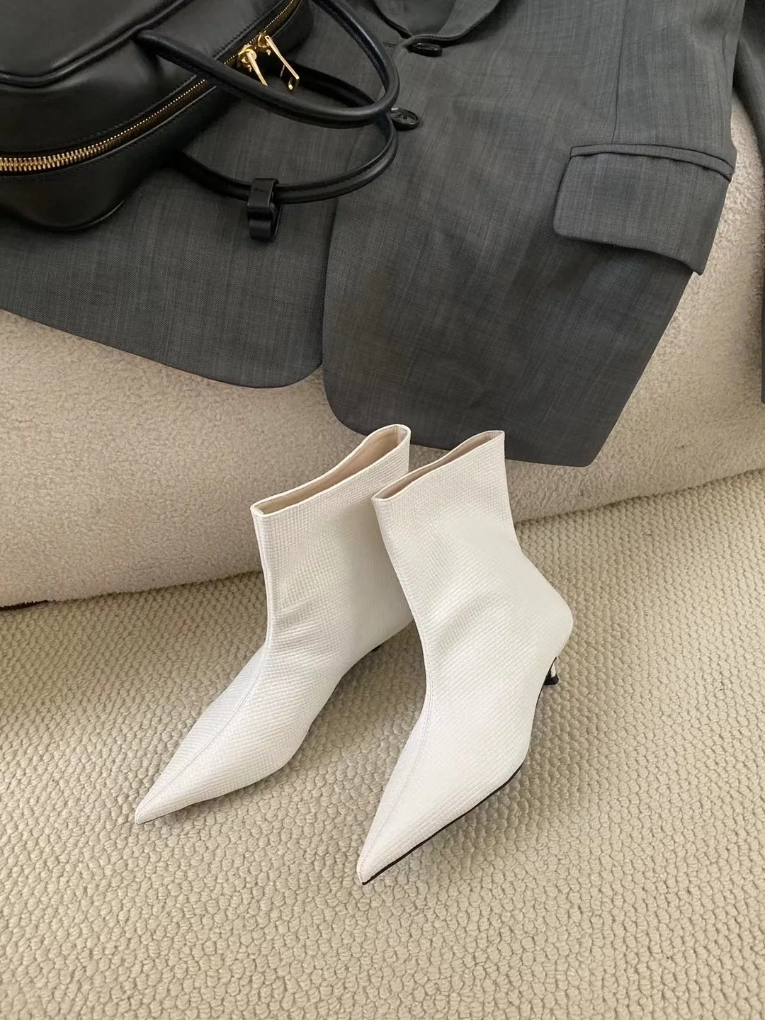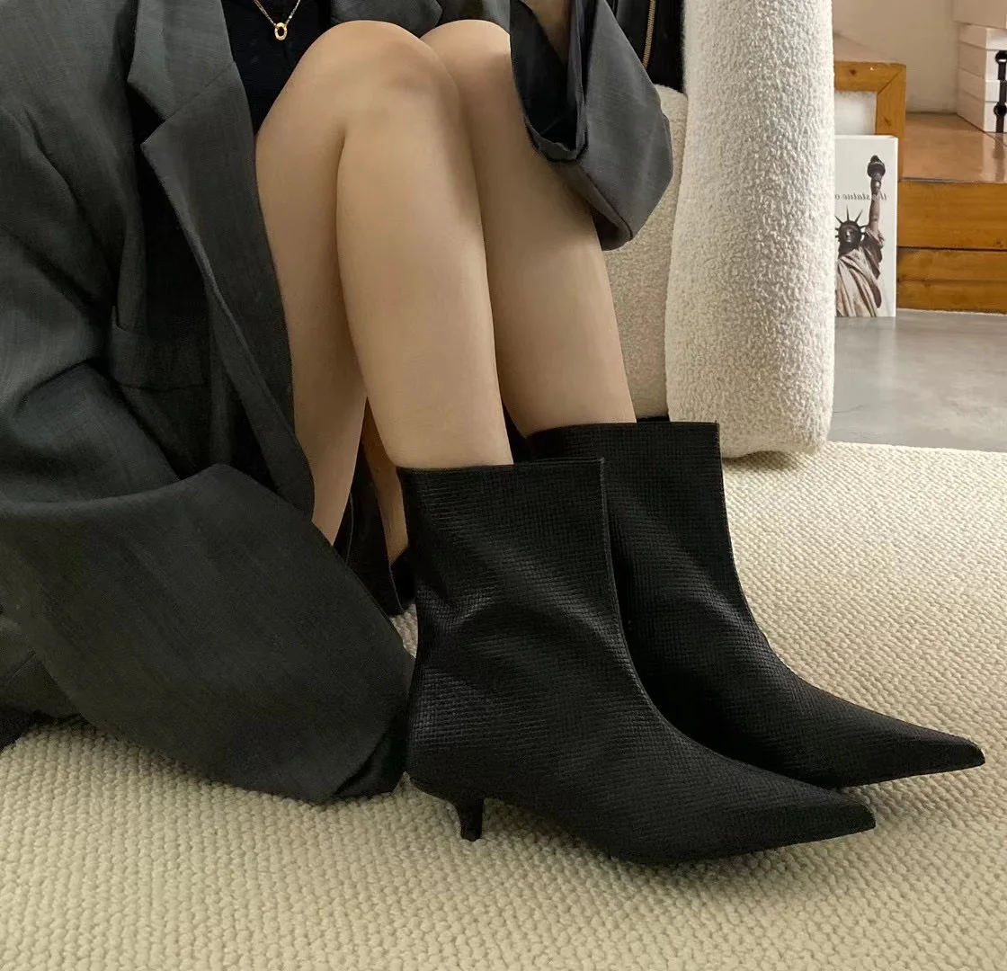 LBSFY - Pointed Toe Women Ankle Boots Black White Leopard Chelsea Botas Thin Mid Heels Autumn Winter Boots Woman Slip On Fashion Pumps