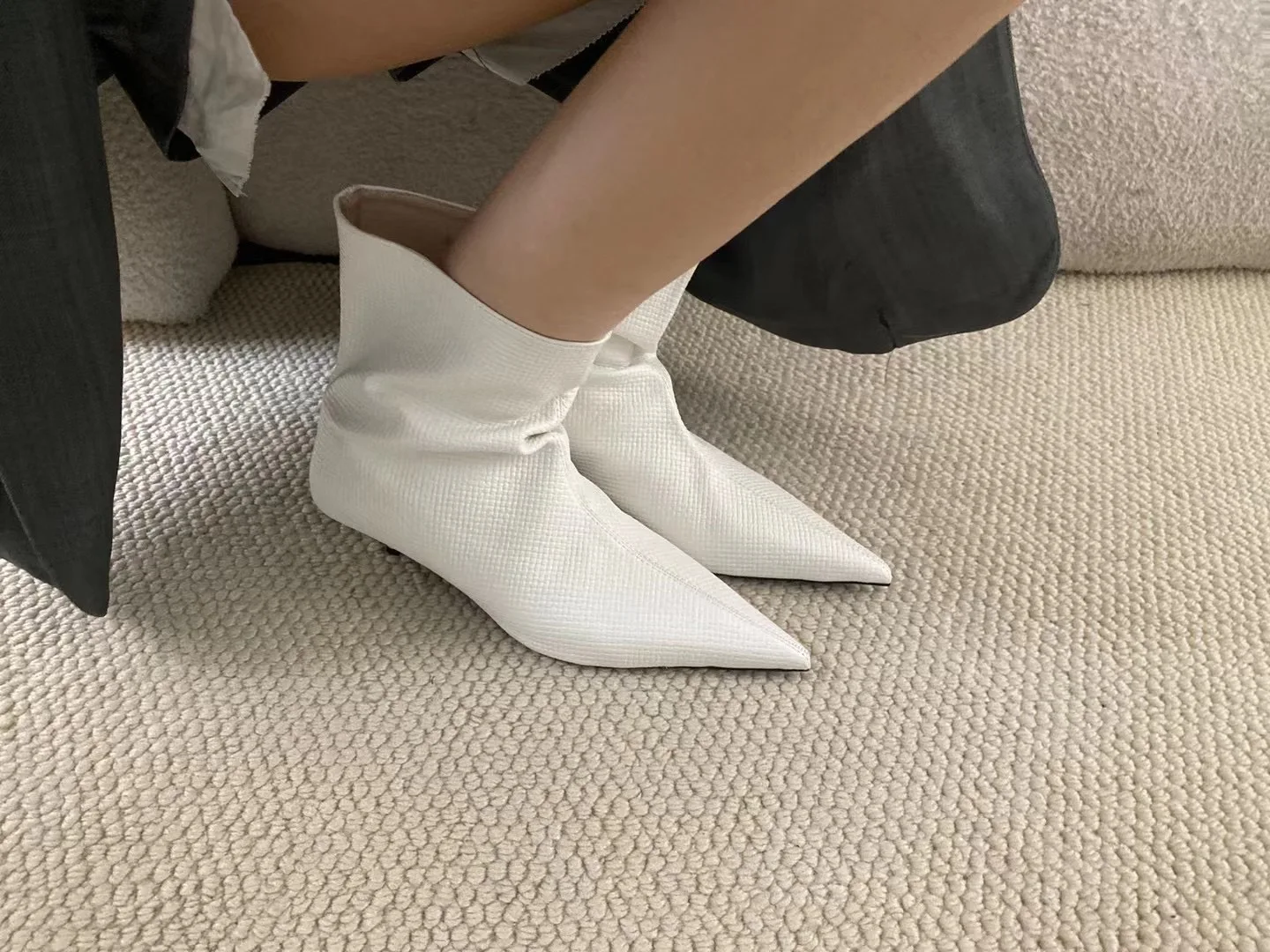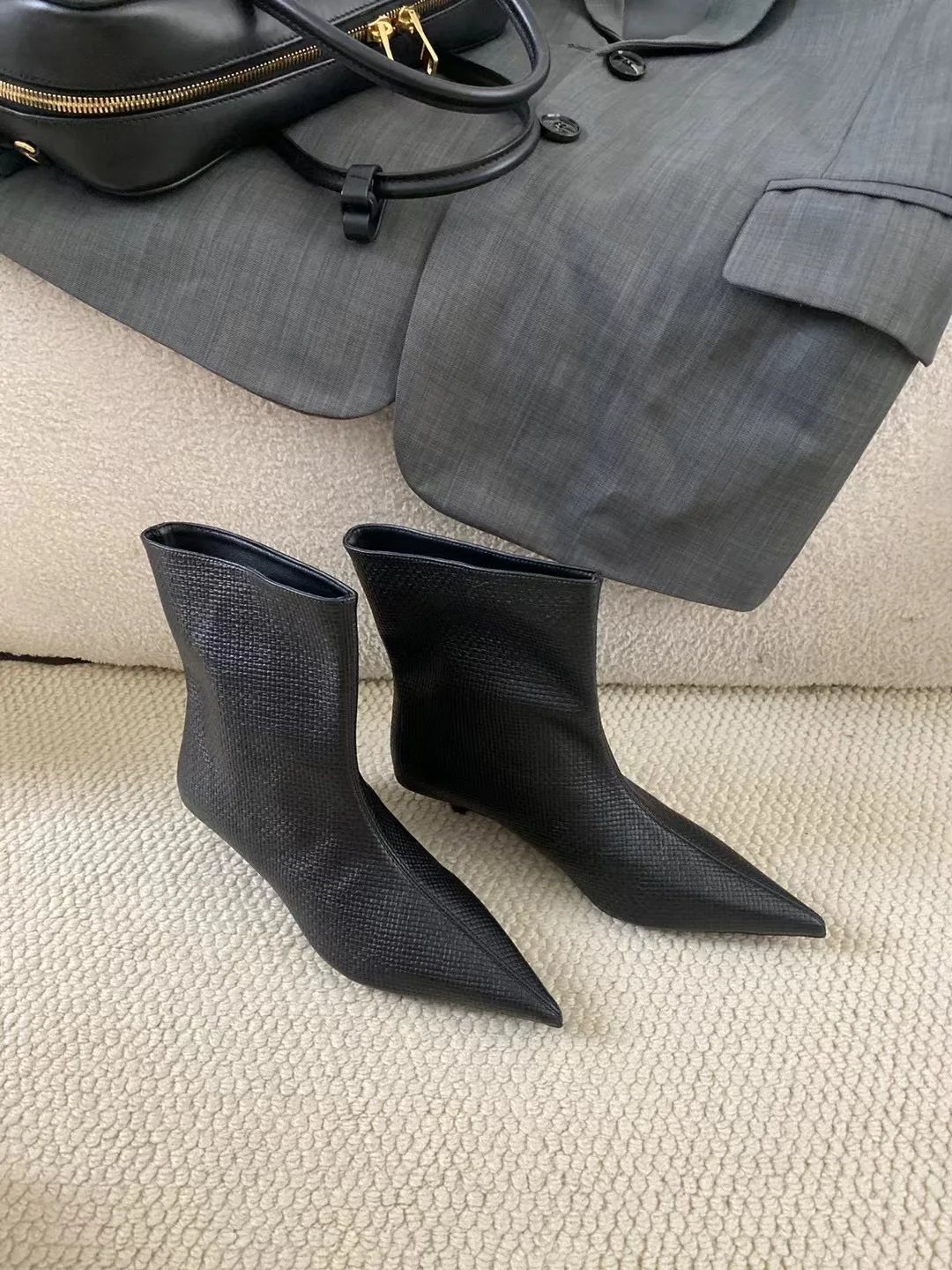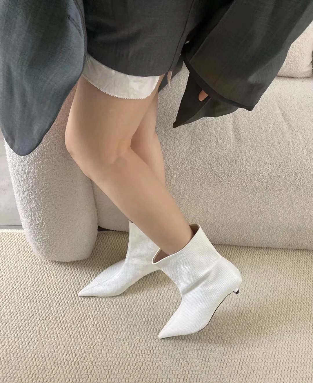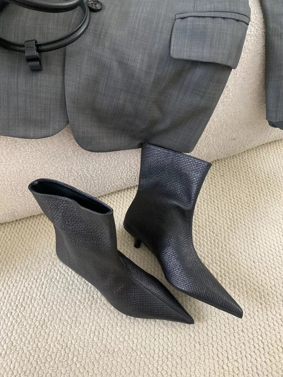 LBSFY - Pointed Toe Women Ankle Boots Black White Leopard Chelsea Botas Thin Mid Heels Autumn Winter Boots Woman Slip On Fashion Pumps