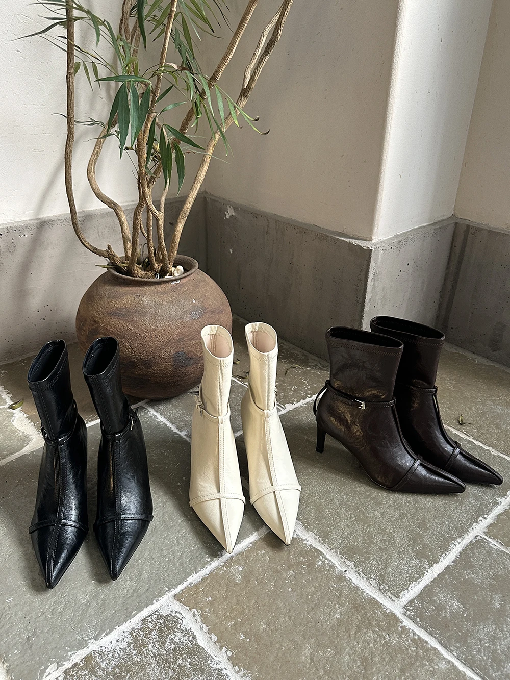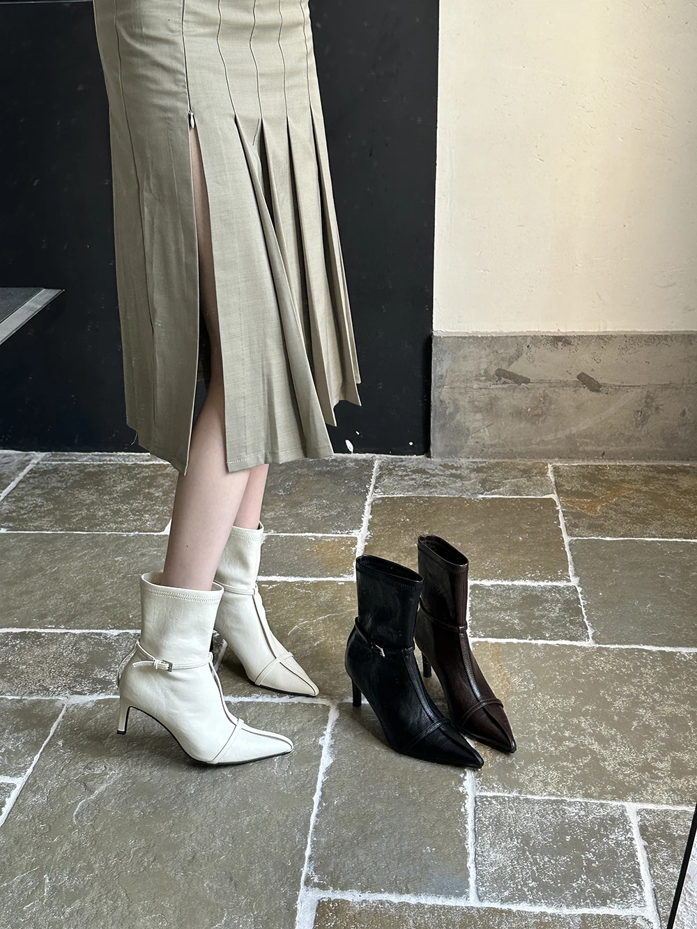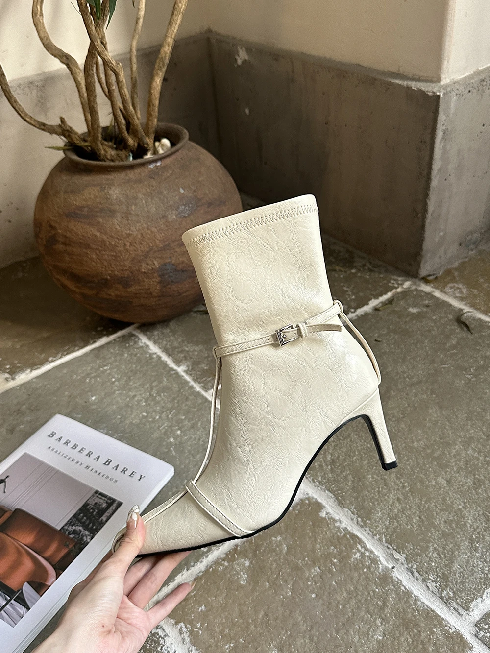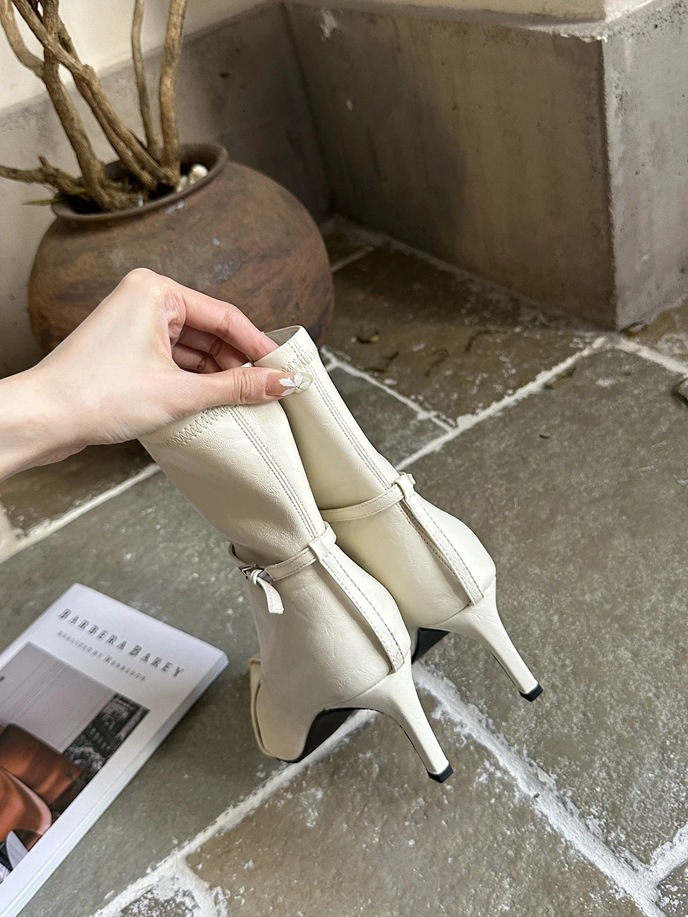 LBSFY - Pointed Toe Women Ankle Boots Chelsea Botas Thin High Heels Black Beige Brown Side Zipper Party Pumps Shoes Woman Size 35-39
