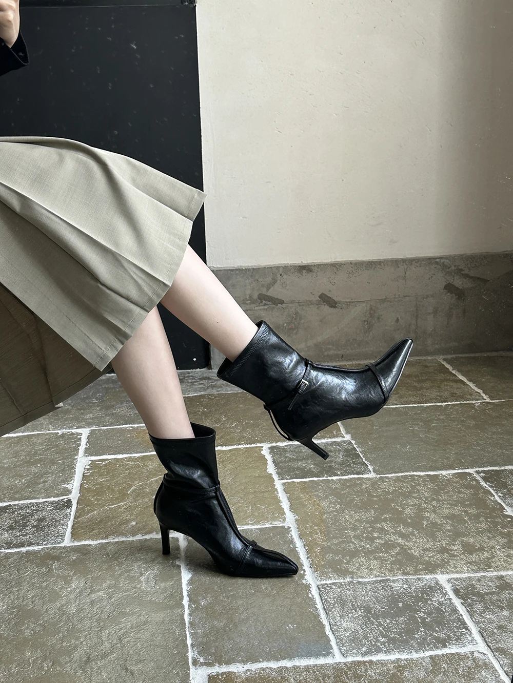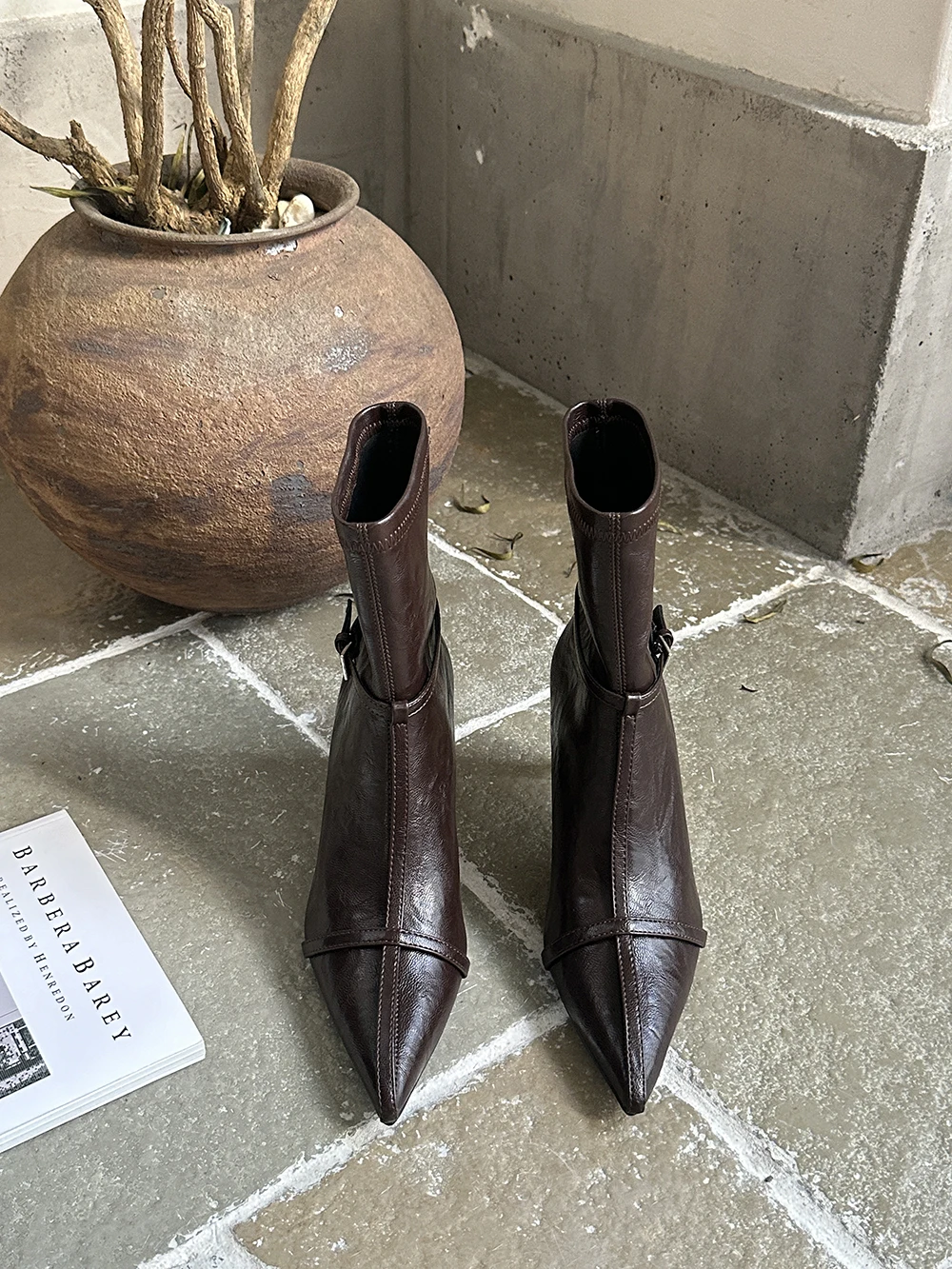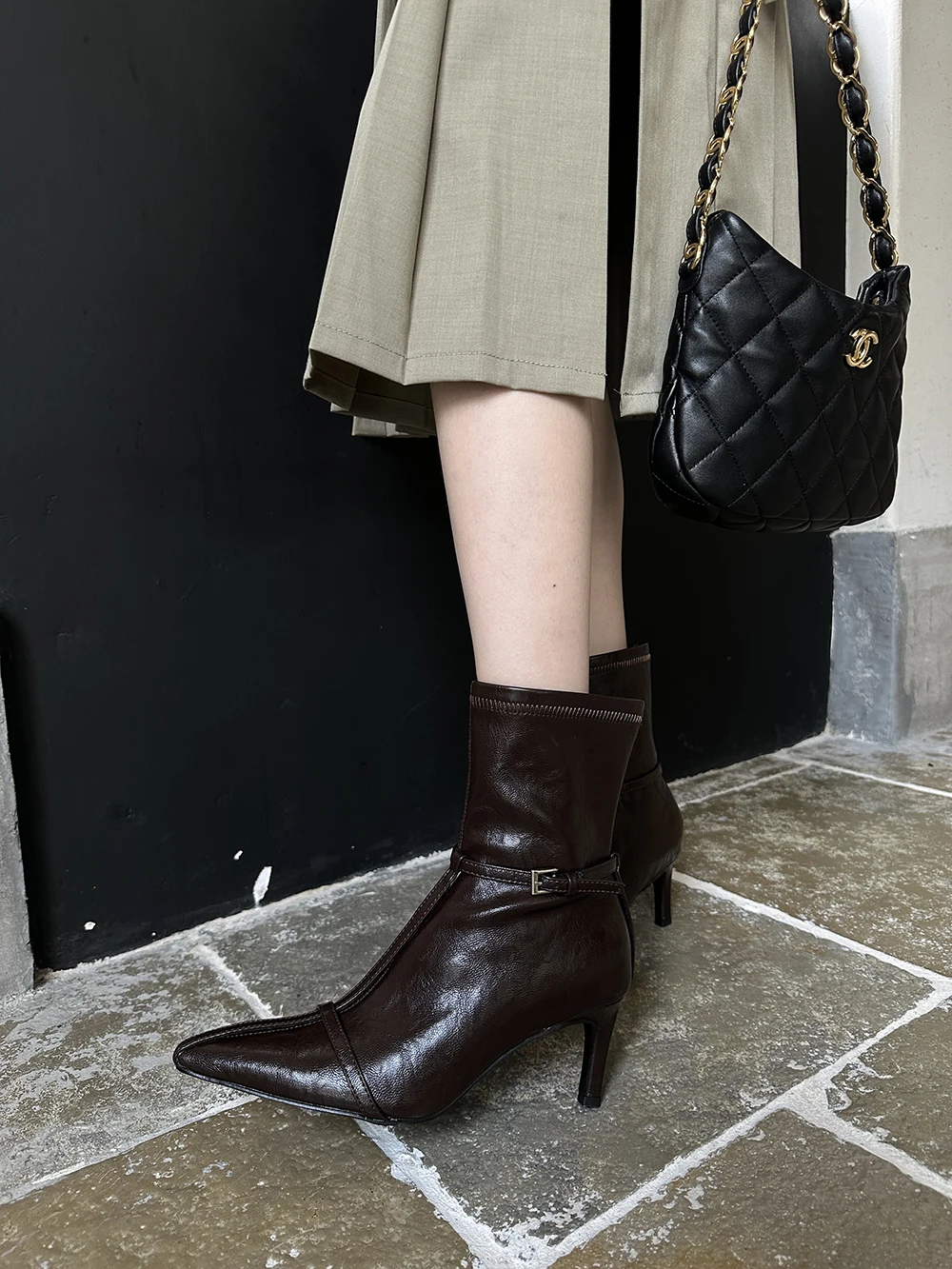 LBSFY - Pointed Toe Women Ankle Boots Chelsea Botas Thin High Heels Black Beige Brown Side Zipper Party Pumps Shoes Woman Size 35-39